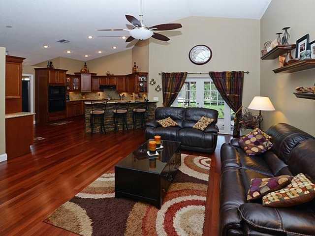 Stunning and rarely available 4/2 Executive Home on a corner lot in sought after Forest Ridge! Enjoy the real cherry wood floors through the main living areas, impact French doors, a fabulous remodeled kitchen with granite & custom features galore, SS ap pliances, wall oven, flat cook top, custom master bathroom, upgraded guest bathroom with granite & dual sinks, upgraded 8" moldings, newer roof in '06, newer a/c in '08, & exterior painted in '10! Fenced in yard! Perfect house for entertaining!