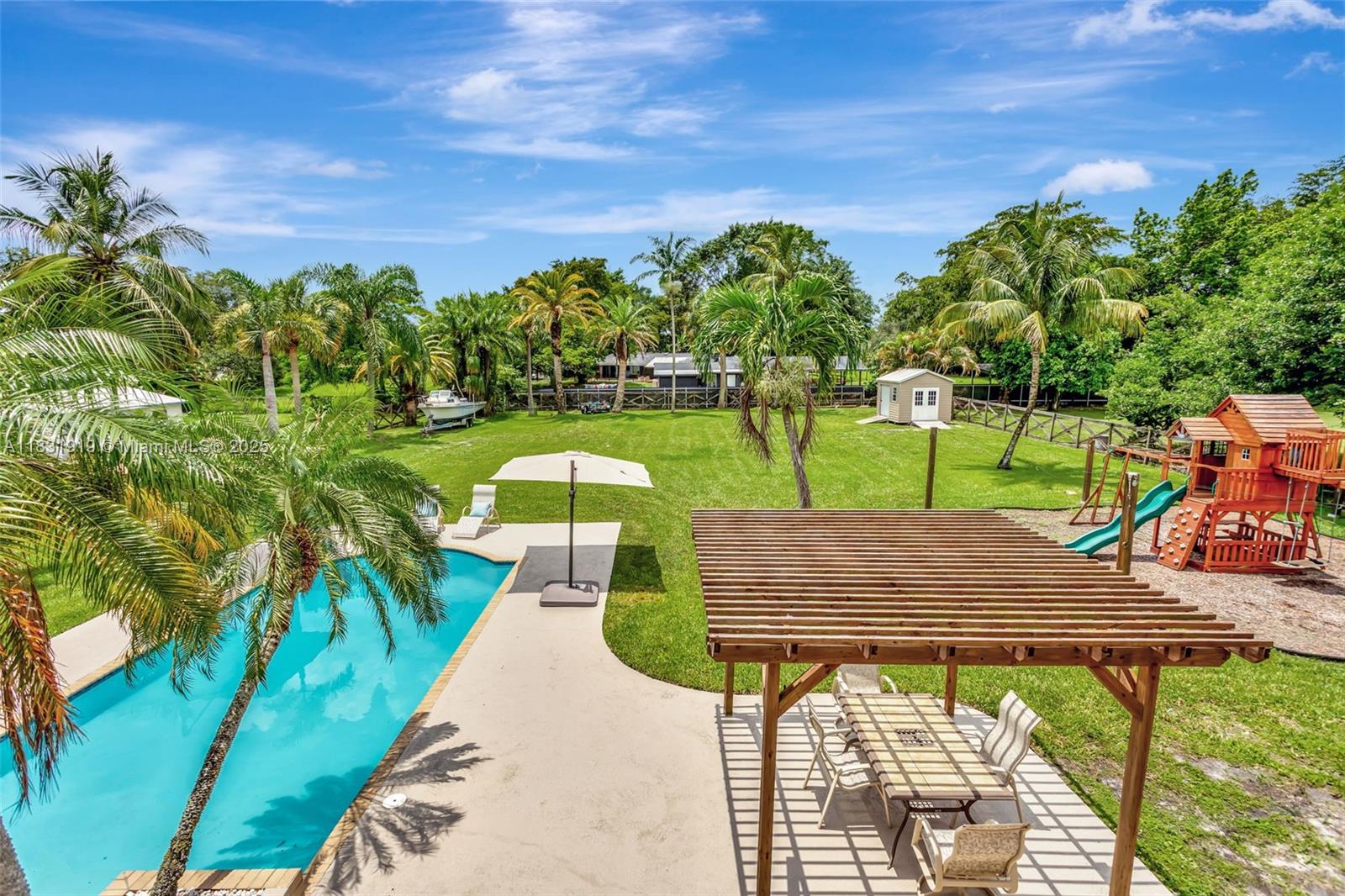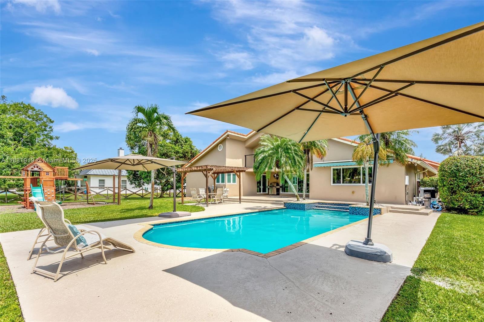 Nestled in the highly sought-after community of West Davie, this beautifully maintained custom home sits on nearly one full acre of serene, ranch-style living. 4 Bedrooms/3 Bathrooms plus a versatile loft upstairs balcony, New Impact windows, sparkling saltwater pool, brand new appliances, oversized garage and lots of other improvements!!. 4th bedroom has a separate private entrance, perfect for guest or in-laws quarters. No HOA bring your boat, RV, or toys! An expansive outdoor space, perfect for gardening or entertaining, or simply enjoy the peaceful surroundings. Best rated schools in the area!! Live the best of both worlds; country charm with city convenience just minutes away. Don’t miss your chance to own a slice of paradise in one of Davie’s most coveted neighborhoods!