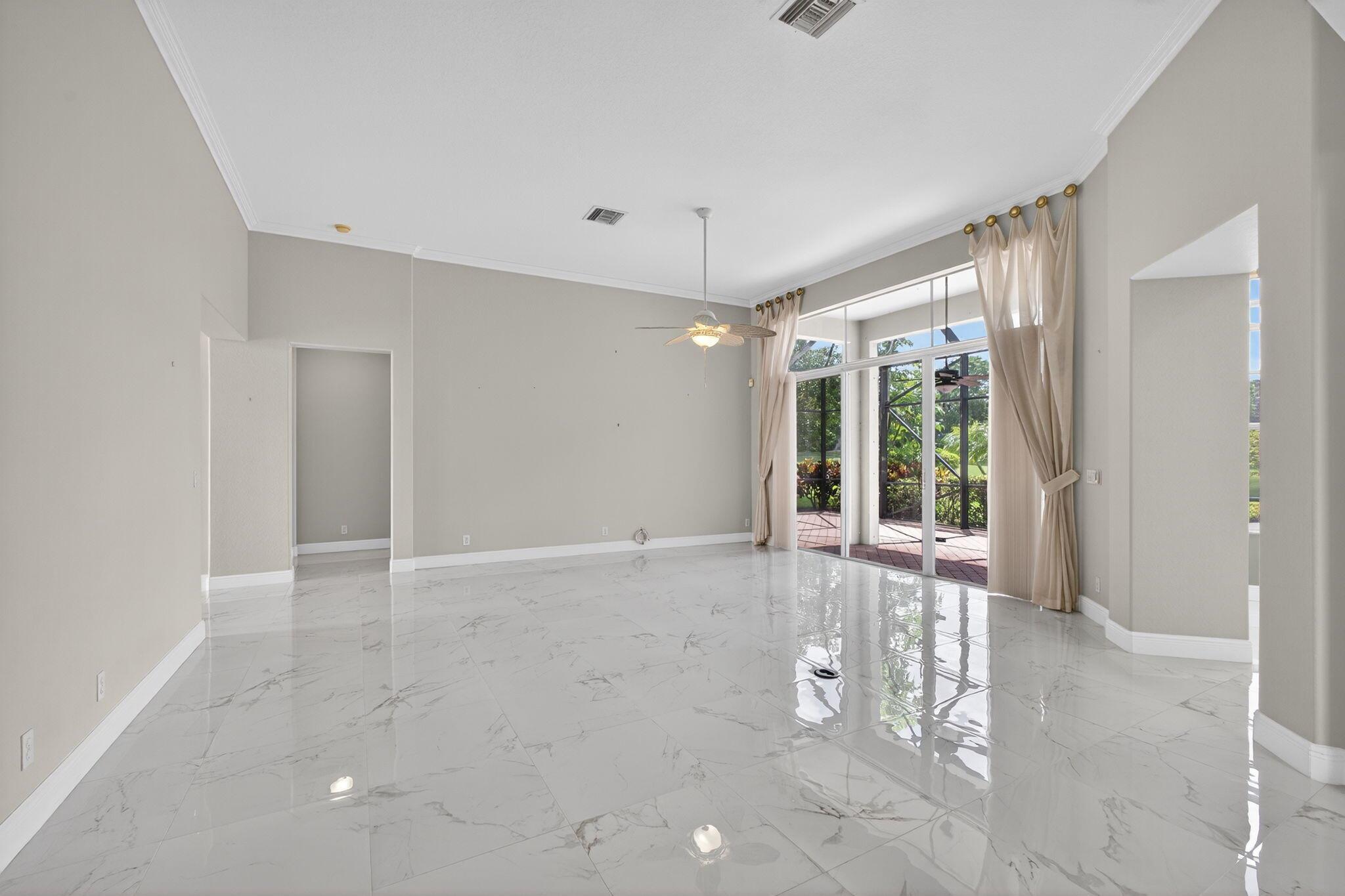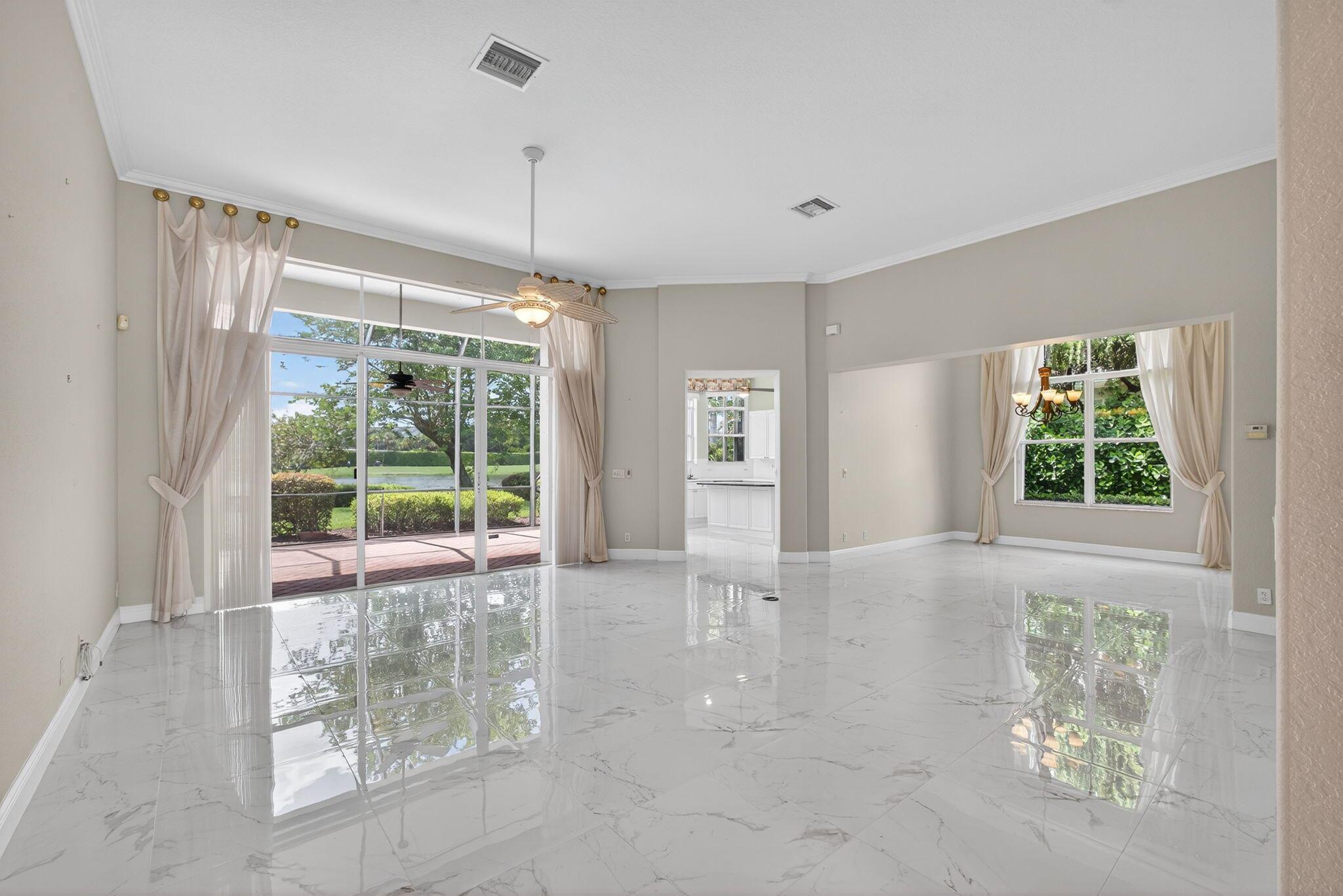 Welcome to Your Lakefront Golf Course RetreatStep into this beautifully maintained home and be captivated by the panoramic views of the lake and the renowned 18-hole Arthur Hills Championship golf course. Situated on a quiet cul-de-sac, this residence offers a serene and private setting, enhanced by elegant porcelain tile and rich wood flooring. Both the primary and guest bedroom feature en suite bathrooms. Double doors lead to a spacious office, complete with built-ins, ideal for a home workspace.Enjoy the stunning scenery from the expansive screened patio, perfect for relaxing or entertaining, and ample backyard space ready for a custom pool.While private club membership is available to enhance your lifestyle, it is not mandatory.