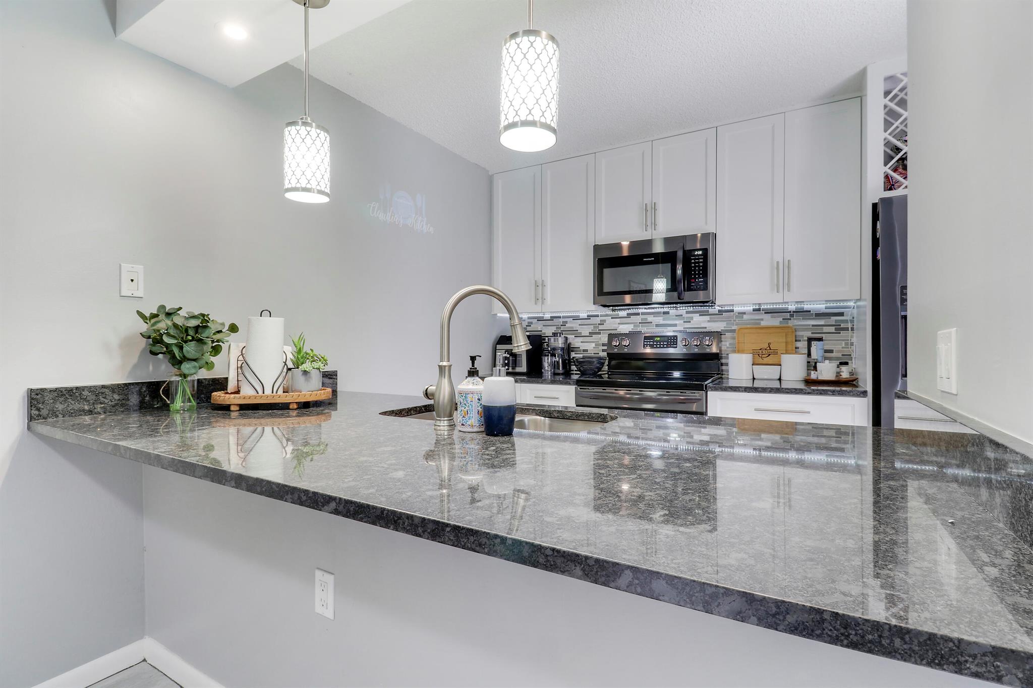 Welcome home to 5220 52nd Way! Upon entering, notice the spacious and private fenced front patio perfect for entertaining. This charming 2 bedrooms, 2.5 bath townhome features a cozy living room and separate kitchen and dining areas with updated tile flooring on the first floor. The fully renovated kitchen showcases granite countertops, stainless steel appliances and updated white cabinetry. Laundry room with new full-size washer and dryer and a half bath powder room also located on the first floor. Second floor features two bedrooms and two full and updated bathrooms. The primary bedroom features a spacious walk-in closet and ensuite bathroom with granite countertop, vanity, and separate glass enclosed walk-in shower. Second bedroom with ensuite full bath and linen closet are