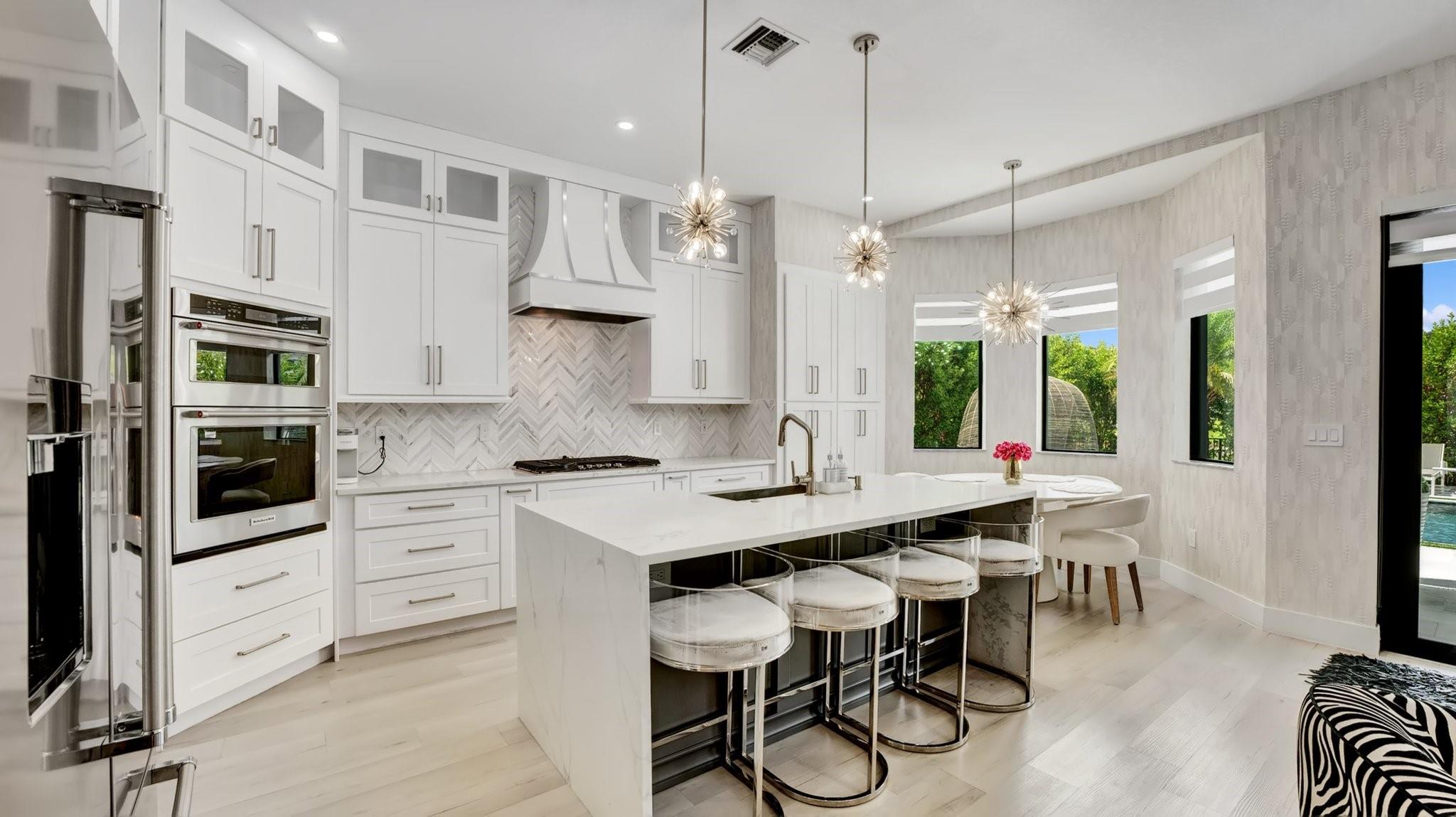Experience elevated lakefront living in this fully renovated, designer-upgraded 5-bedroom, 4-bathroom home in the prestigious gated community of Cascata at MiraLago. This turnkey residence offers the perfect combination of modern elegance, smart functionality, and resort-style amenities. Step into a light-filled, open-concept layout featuring soaring ceilings, designer flooring, high-end finishes, and custom wallpaper throughout. Custom kitchen perfect for entertaining! Step outside into your private, resort-style backyard retreat—complete with a custom pool, full outdoor kitchen, maintenance-free turf lawn, and a premium built-in Sonos sound system for the ultimate entertaining experience. Too many upgrades to list including a full house Generac generator and outdoor security cameras.