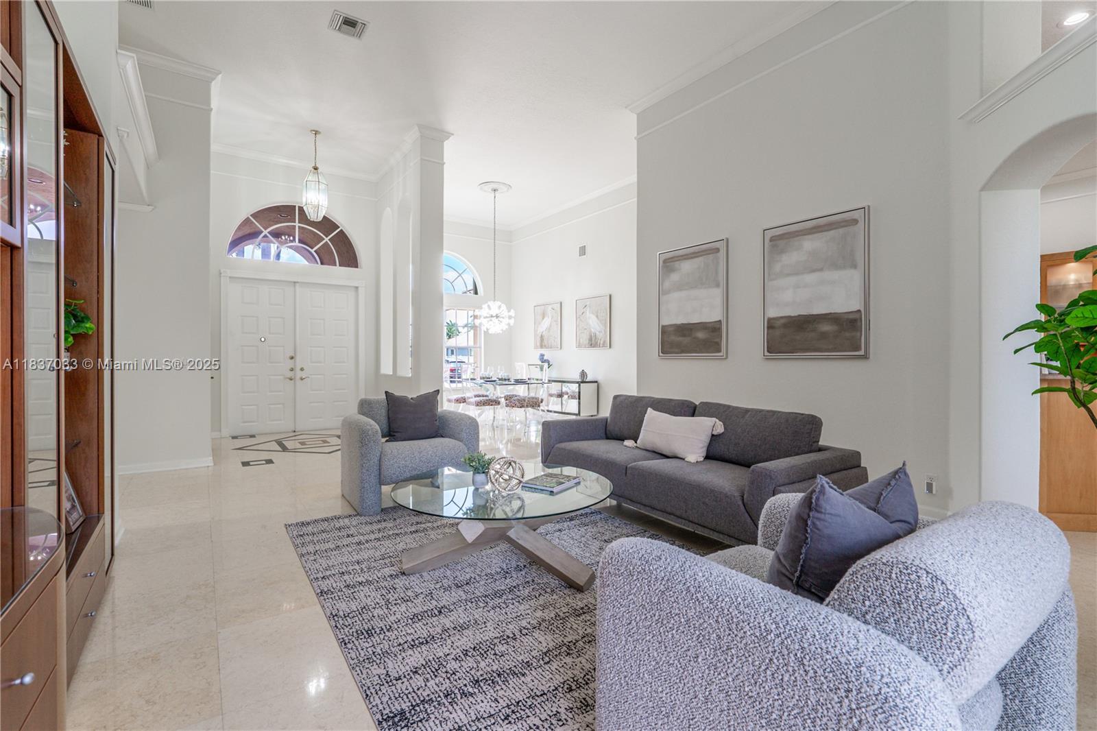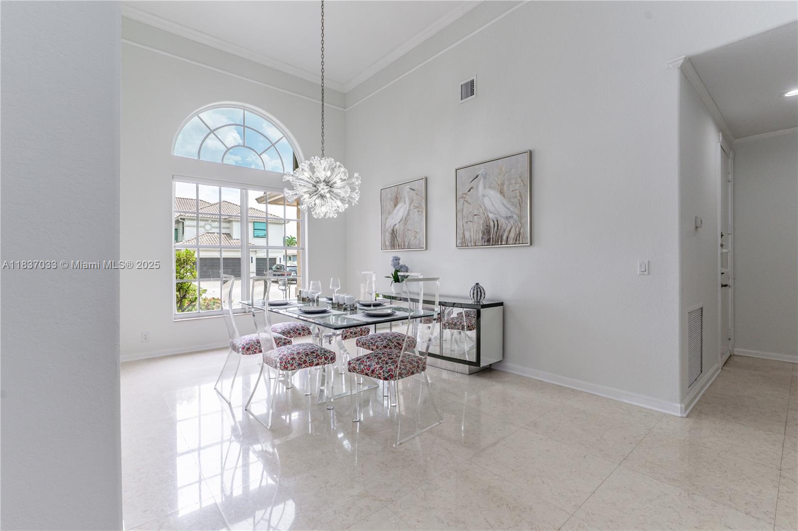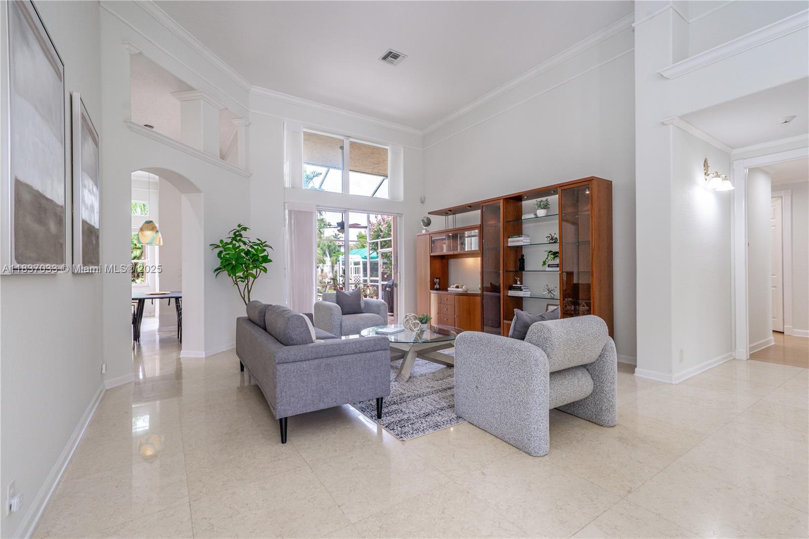 RARELY AVAILABLE MARQUIS MODEL LOCATED IN THE LUXURIOUS CRYSTAL HARBOUR SECTION OF PEMBROKE FALLS * THIS ELEGANT 5 BEDROOM, 3.5 BATHROOM HOME OFFERS A 3-CAR GARAGE, COMPLETE ACCORDION SHUTTERS, PARTIAL IMPACT WINDOWS, & A WHOLE HOUSE GENERATOR * STEP INSIDE TO SOARING 14-FOOT VOLUME CEILINGS, BEAUTIFUL JERUSALEM STONE FLOORING IN THE MAIN LIVING AREAS, & AN ABUNDANCE OF NATURAL LIGHT * THE KITCHEN OFFERS GRANITE COUNTERTOPS & REAL WOOD CABINETRY * THE PRIMARY SUITE FEATURES AN ELEGANT TRAY CEILING, 2 LARGE CLOSETS, PLUS AN ADDITIONAL WALK-IN CLOSET * THE BACKYARD IS PRIVATE & GENEROUSLY SIZED COMPLETE WITH A SCREENED-IN COVERED PATIO & AMPLE SPACE FOR A POOL * COMMUNITY AMENITIES INCLUDE A RESORT-STYLE CLUBHOUSE, NATURAL GAS & MORE * HOA INCLUDES CABLE, INTERNET, 24HR SECURITY & MORE!