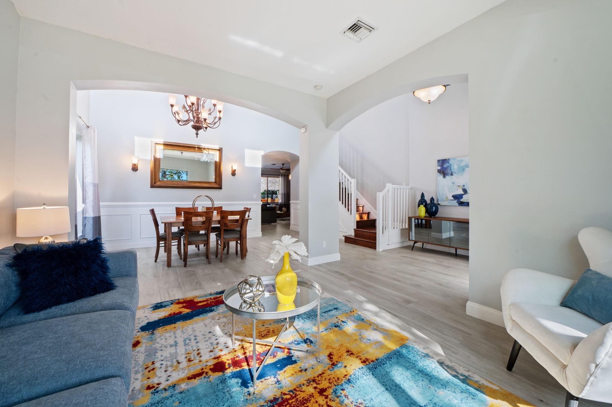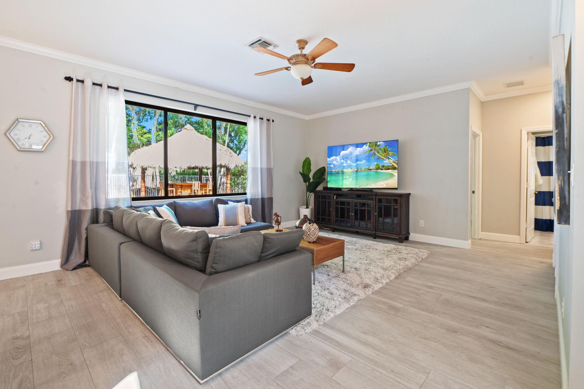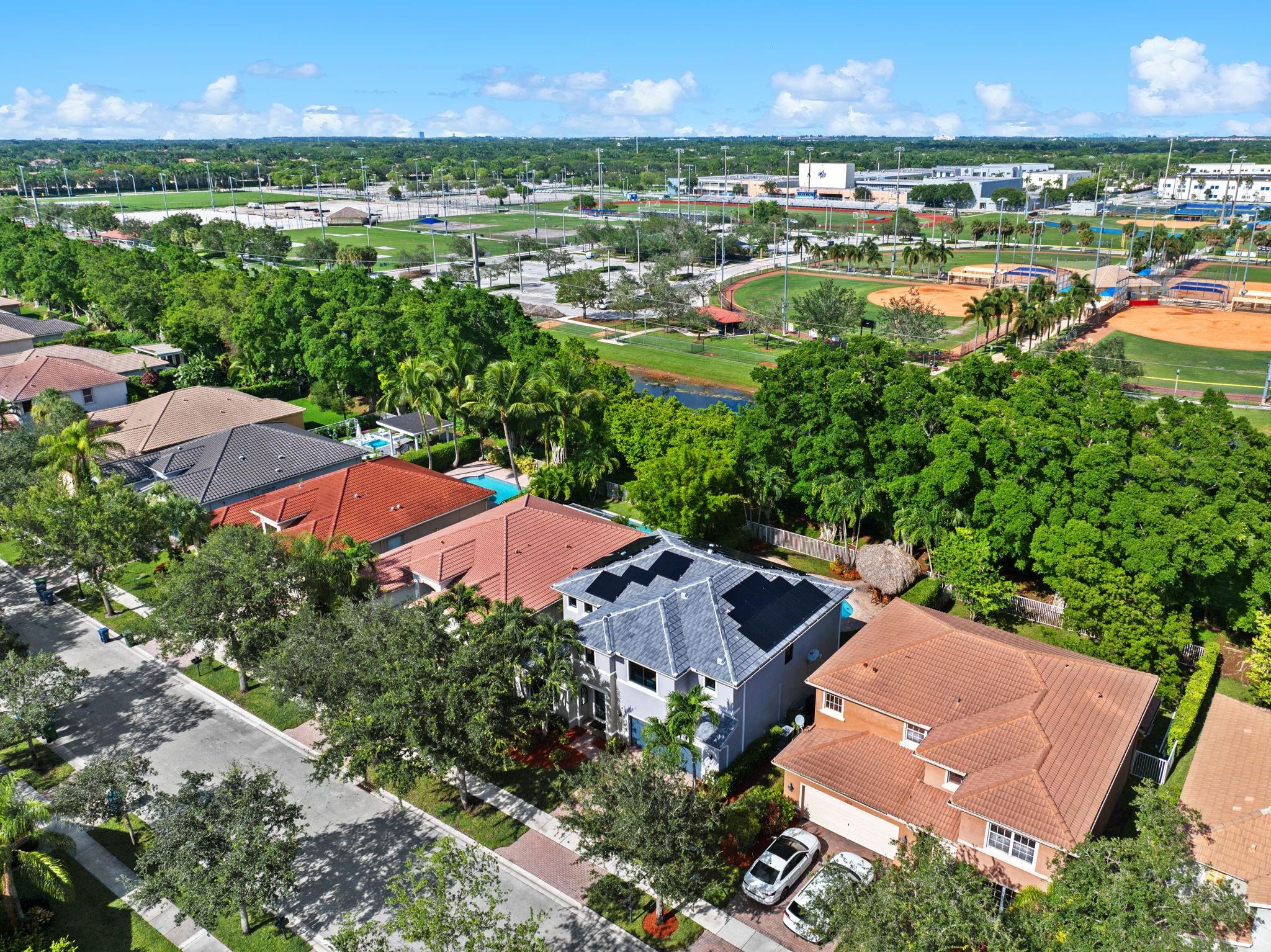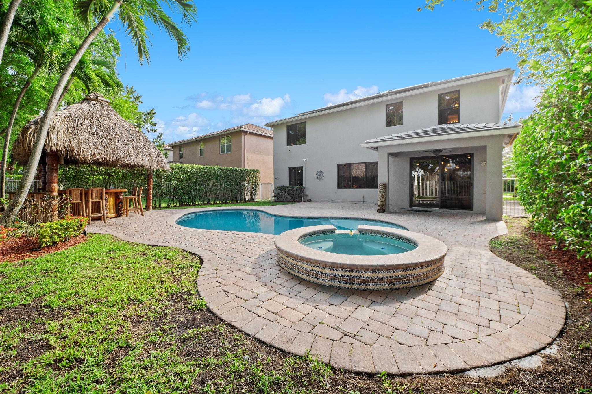***NEW ROOF, NEW GUTTERS AND NEW IMPACT WINDOWS & DOORS!!*** Welcome to this stunning 5 Bedroom/4Bath updated home perfectly designed for modern living. The thoughtful layout includes a convenient bedroom and full bath on the first floor ideal for guests. Updated kitchen equipped with high-end Kitchen-Aid appliances, new induction range/oven, granite counters & freshly painted kitchen cabinets add a modern flare. Enjoy an outdoor oasis that features an open heated pool & spa, new pool pump, paver patio & a Tiki Hut that's perfect for entertaining. A Volt Solar system for low power bills, new garage door opener with Amazon access open/lose, exterior camera system and ADT security. HOA includes fiber internet, cable tv, clubhouse with gym, 2 pools, sports courts. Bus service to schools.