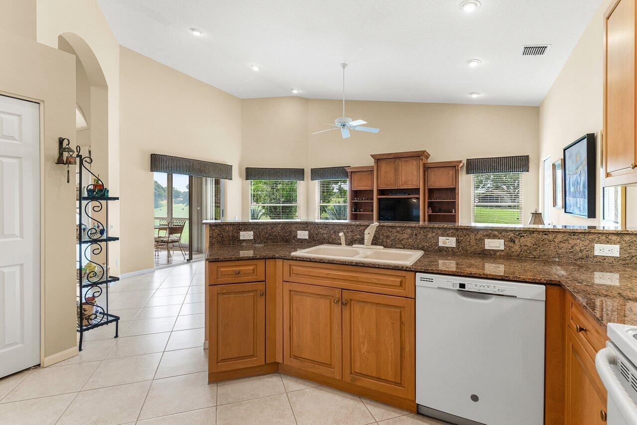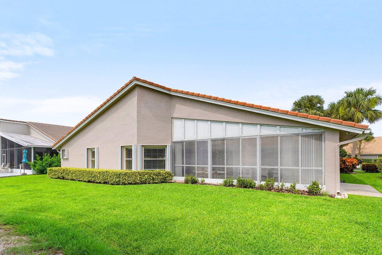 PRIME LOCATION. Nestled on a premium lot in the sought-after, 24/7 manned, guard-gated community of Lakeridge Falls, this bright and airy 3-bedroom, 2-bathroom home offers both privacy and picturesque golf course views. The well-maintained residence has a desirable split-bedroom floor plan, a spacious primary suite with dual walk-in closets, and a kitchen boasting 42'' maple cabinetry and granite countertops. Additional highlights include an enclosed lanai, accordion shutters, a bonus room and no carpet throughout. Lakeridge Falls is an active 55+ community offering a resort-style pool, pickleball and tennis courts, a fitness center, and more. HOA dues cover landscaping, premium cable, high-speed internet, exterior painting, and roof cleaning providing convenience and peace of mind.