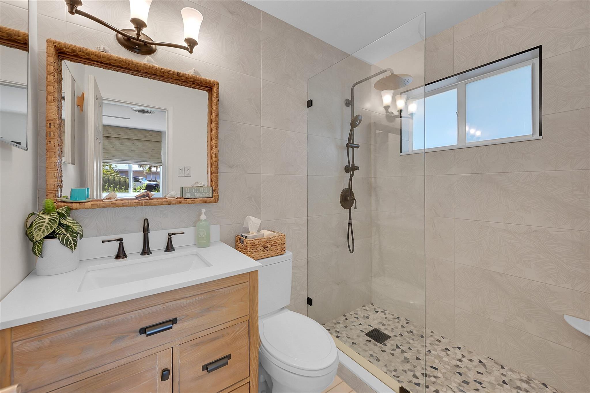 Priced to sell and walk to the beach! This updated tropical retreat has new central A/C (2024), premium metal roof (2023), and ALL impact windows. Bathed in natural light, the open layout features a renovated kitchen with stainless appliances, quartz counters, and tons of storage! Bring your Toys! No HOA and an oversized driveway means parking for your boat or RV. Located on one of the most desirable streets in Harbor Village, it is one block from the water and it has a larger lot - plenty of room to build a pool and additions! The garage can be easily converted to a 3rd bedroom. Boat ramp, Publix, great restaurants, pickleball, golf, aquatic center, and the beach are all within 1.5 miles. Furniture is negotiable to make for an easy move-in or use immediately as a rental investment.