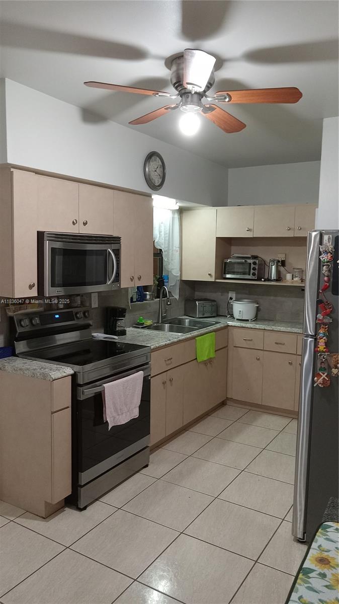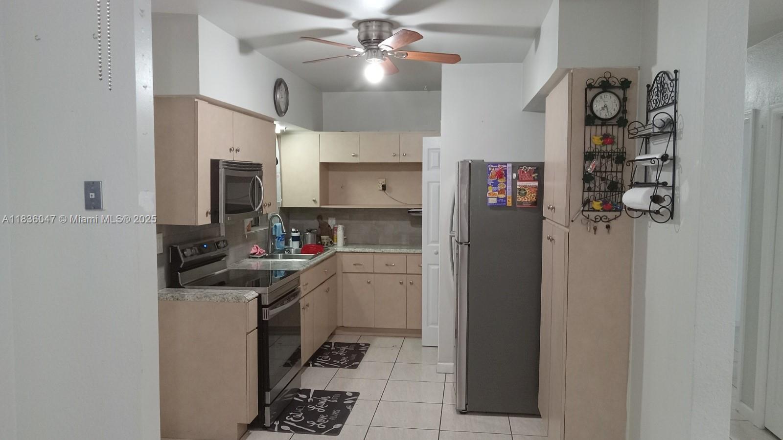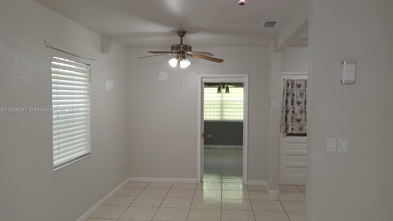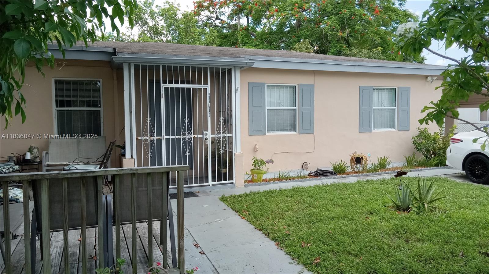 This beautiful 3-bd offers 1bth with a spa-like shower and an elegant pedestal sink. Large 1-1 complete with a new mini-split A/C and built-in closet, is ideal for visitors (non-permitted). With wooden blinds, two renovated showers, and 8 ceiling fans, this home offers comfort, promotes energy efficiency. Enjoy the benefits of a brand-new central A/C unit, water heater, less than 1 year old. The open floor plan connects the living room, dining area, and kitchen, which boasts sleek countertops and a top-of-the-line stainless steel Schott smart flat-top stove, a built-in microwave, Fridge, and 2 pantries. Step down in the Laundry Room Tropical oasis in Opa Locka, this home has fruit trees, star fruit, mangoes, avocados The backyard is perfect for barbecue.