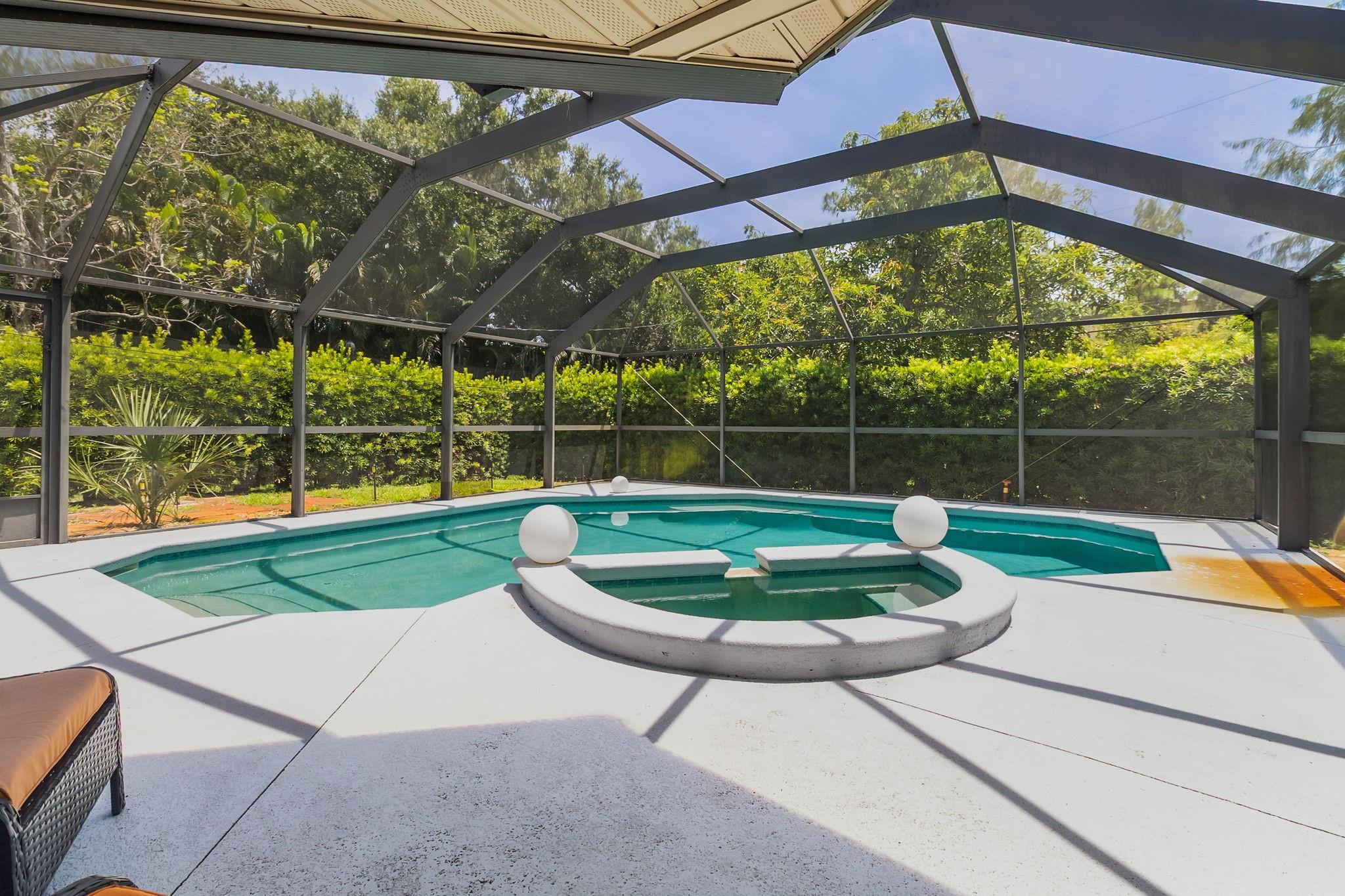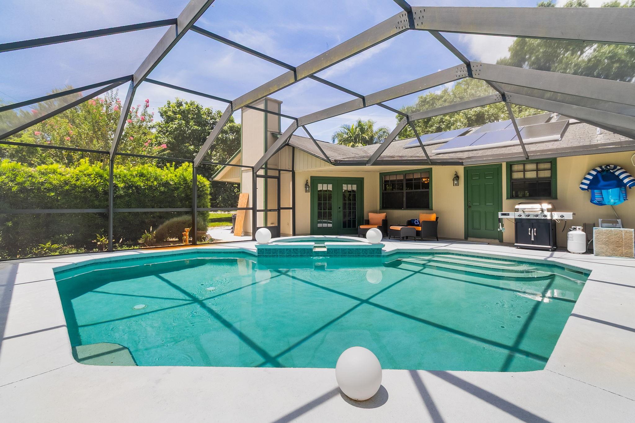 ATTENTION INVESTORS: Vero Beach custom-built 3 bedroom 3 bath country ranch rental with POOL and SPA! Featuring low electric bills with installed SOLAR. Situated on a coveted corner lot spanning over half an acre. A charming front porch beckons. Inside, the heart of the home unfolds into an expansive, pentagon-shaped living room, complete with new carpet, cozy fireplace and two sets of French doors that open to your private screen-enclosed outdoor pool and spa oasis. A full dining room and generous eat-in kitchen also await. The main bedroom boasts a large walk-in closet and a separate dressing and makeup area. Huge laundry room. Even better, there's no HOA! This is more than a house; it’s an opportunity to embrace the quintessential Vero Beach Florida lifestyle!