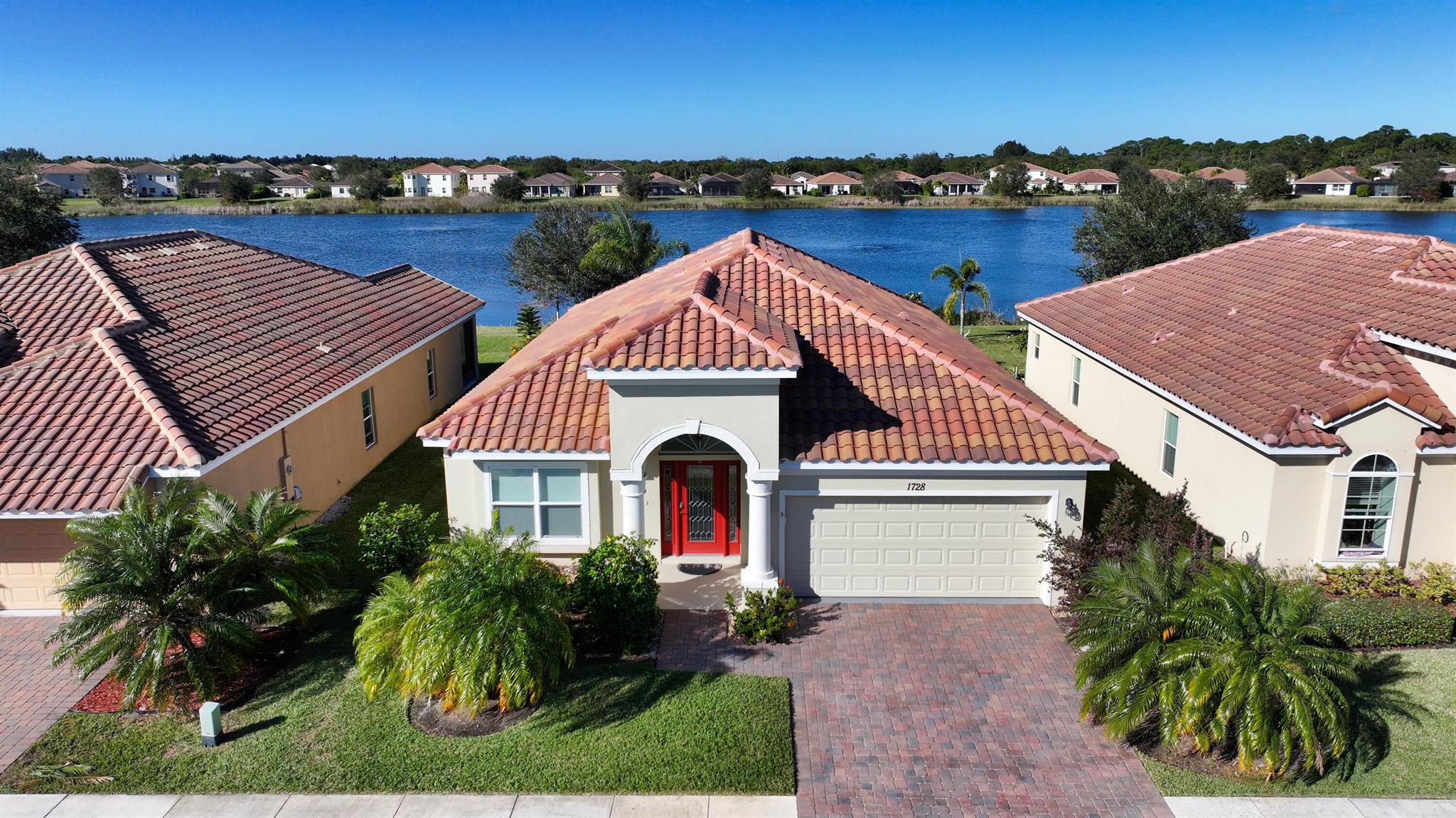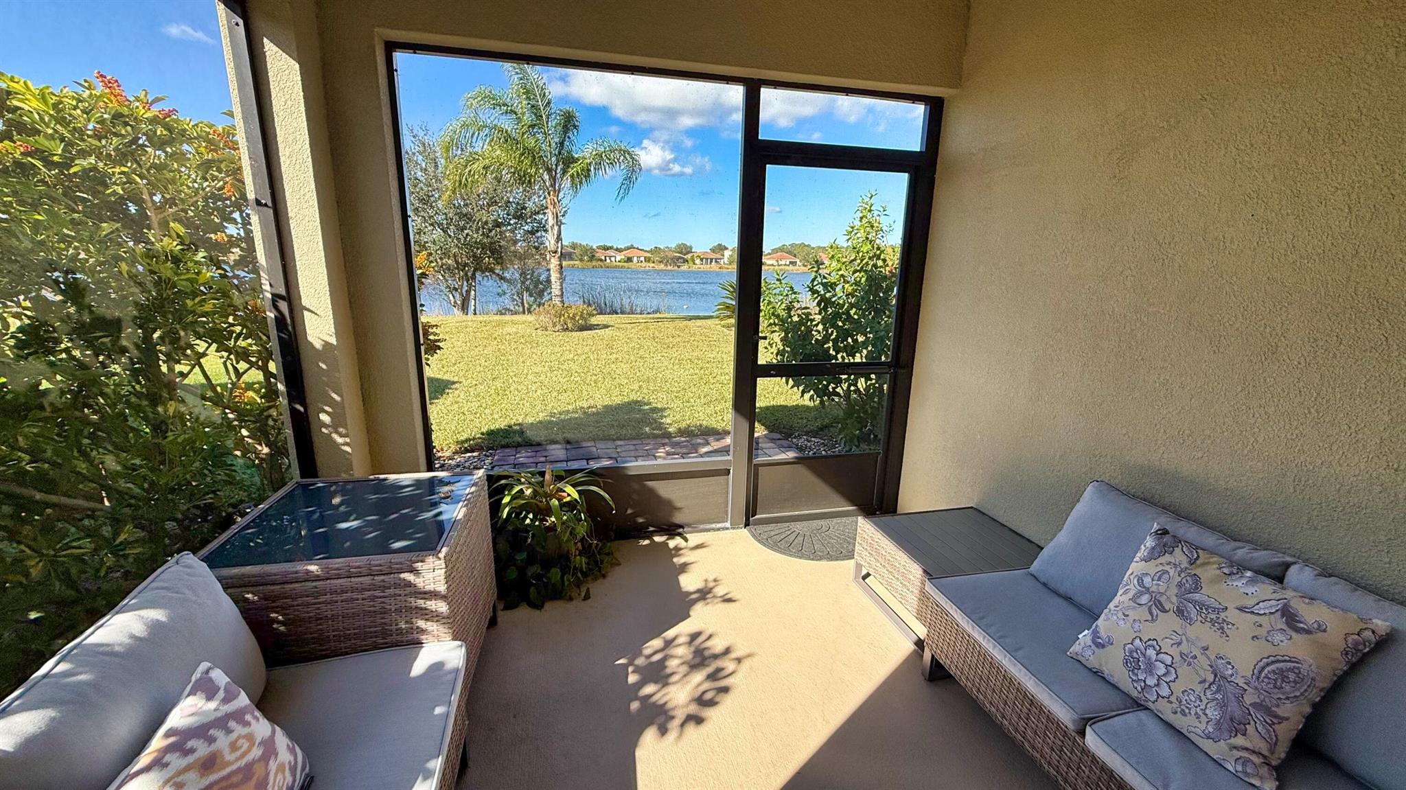 Lakefront Elegance in Millstone Landing. This stunning 3-bed, 2-bath, 2-car garage home offers breathtaking lake views & elegant upgrades. Move-in ready & energy efficient,includes furniture with a full-price offer. Your next home features a new water heater, new stainless steel appliances, granite countertops, and custom Levolor window treatments. The spacious owner's suite boasts a tray ceiling, luxury vinyl plank flooring, a walk-in closet, double vanity, and a garden tub. Enjoy sunsets from the screened lanai. Large backyard with room for a pool. Resort-style amenities and low HOA.