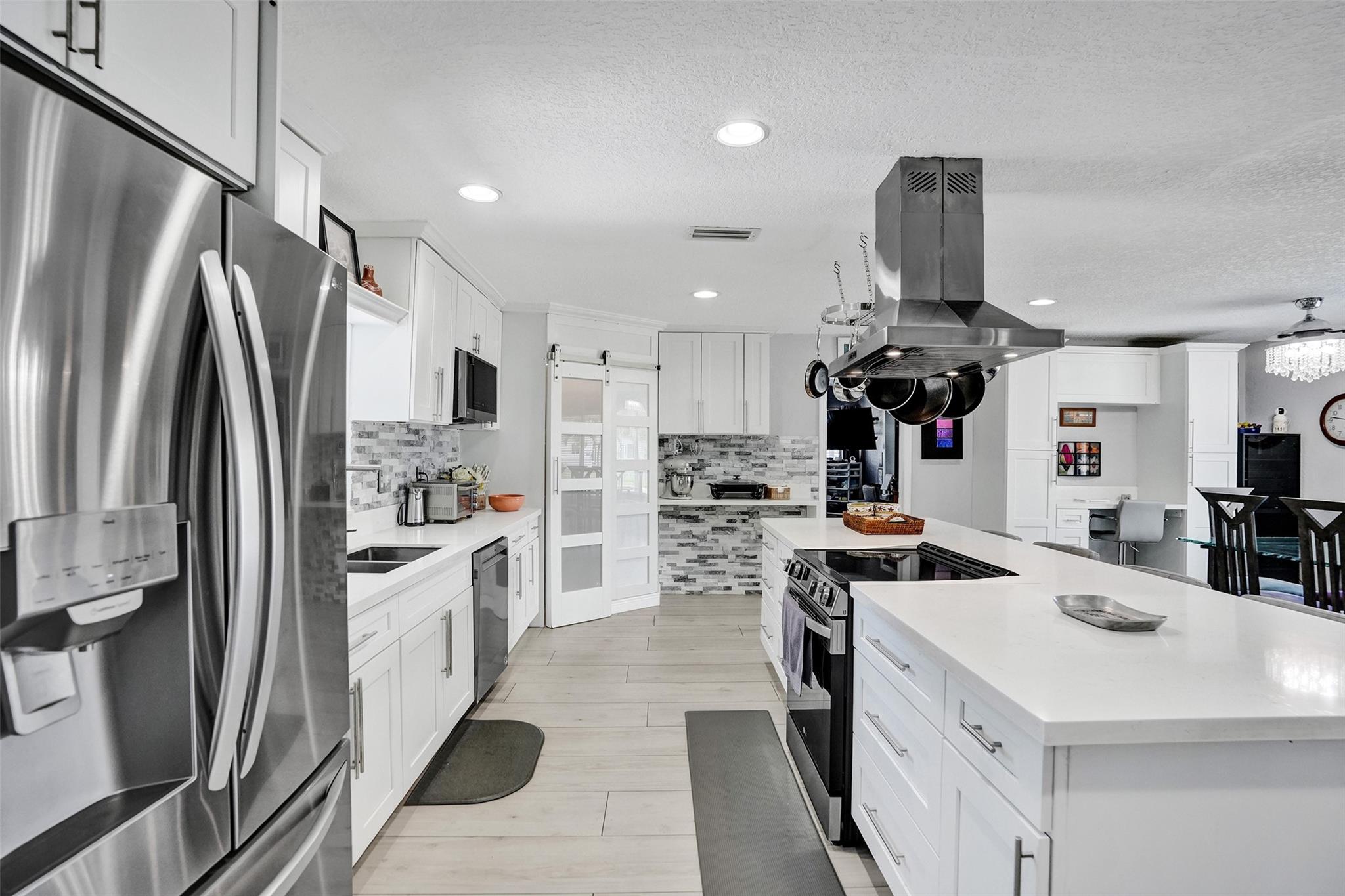 This beautiful home sits on a large lot with a stunning heated saltwater pool. Enjoy ultimate privacy with a new vinyl fence, two 12-ft gates—perfect for storing a boat or RV—and a lush backyard with a sprinkler system, playground, and two sheds. Inside, you'll find a spacious layout with a modern kitchen, new stainless steel appliances, and a large island for entertaining. All three bedrooms offer generous closet space, including a walk-in in the primary suite. Impact windows/doors, tankless water heater, 2018 roof, 2021 A/C, cleaned ductwork, and a security system with cameras offer comfort and peace of mind. Oversized 2-car garage with built-in storage and A/C mini split. Full-size washer/dryer included. NO HOA. DO NOT SHOW UP OUTSIDE OF OPEN HOUSE TIMES WITHOUT APPOINTMENT