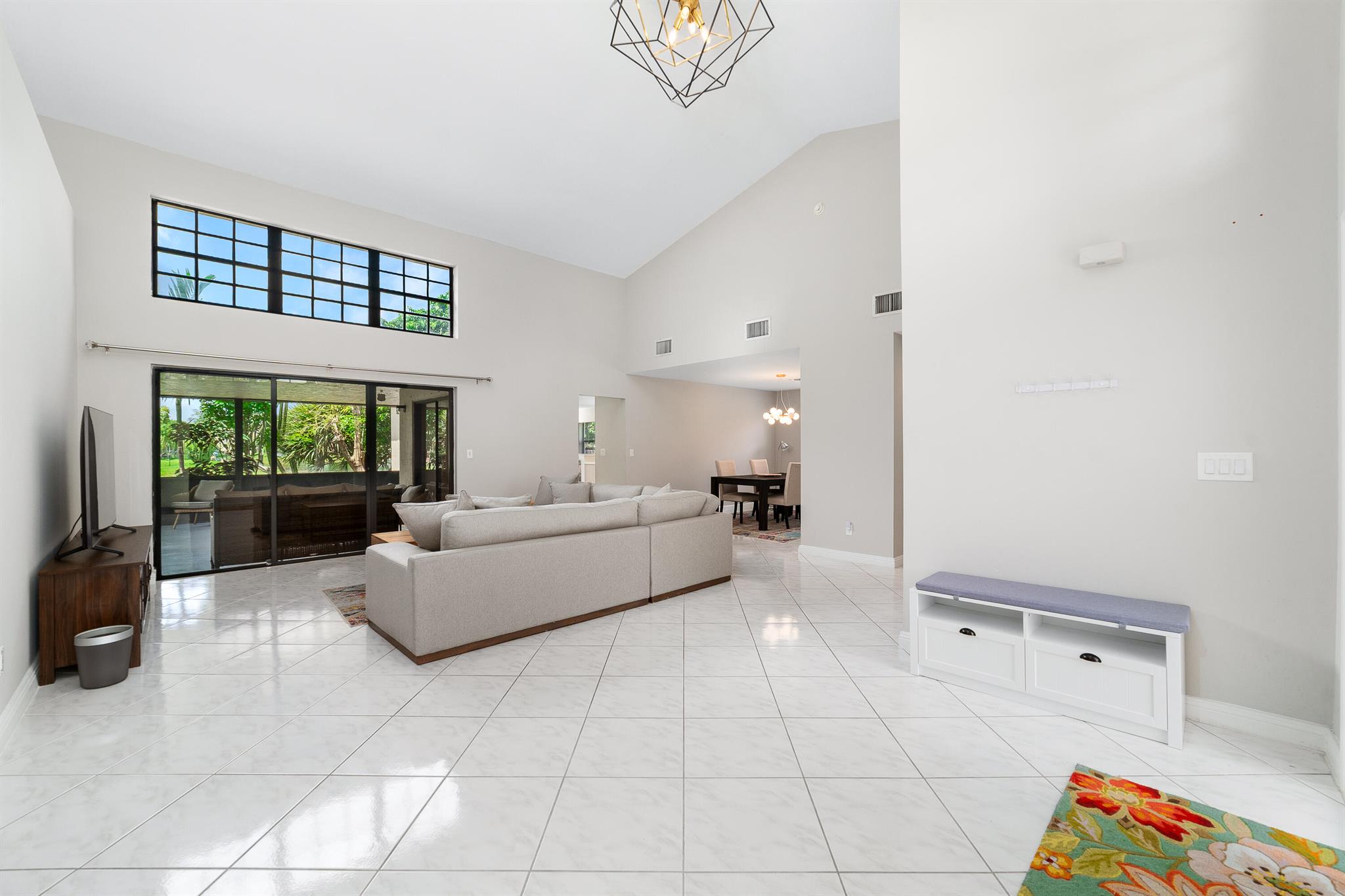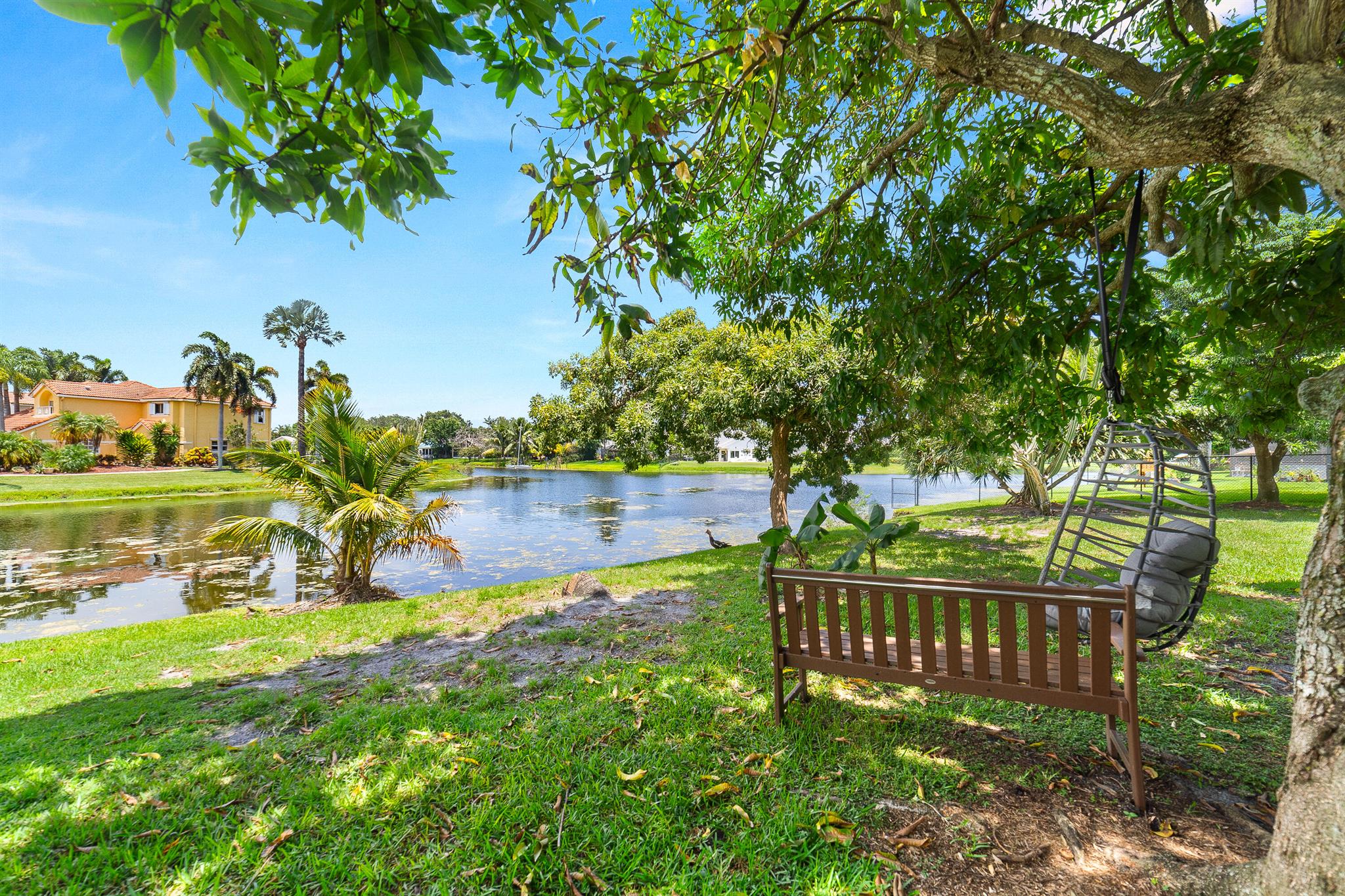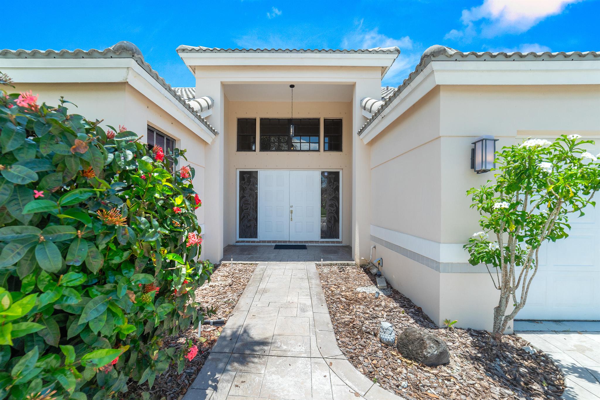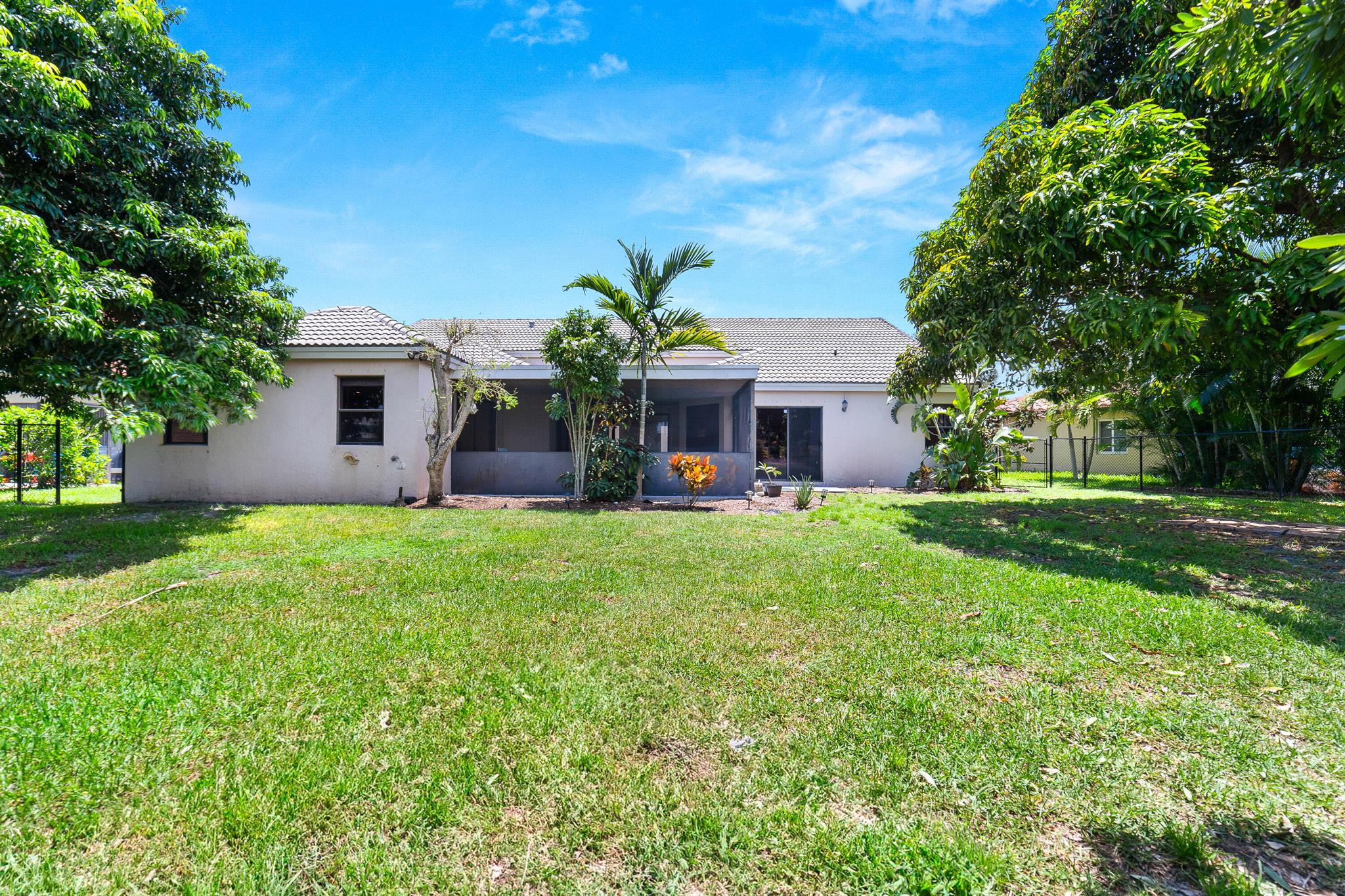 Enter into modern elegance in this 4-bedroom, 2-bathroom residence nestled in the highly sought-after Forest Ridge community of Davie. From the moment you arrive, the grand roundabout driveway and 2-car garage set the tone for this sophisticated home. Inside, soaring vaulted ceilings and an airy open-concept layout create a bright and inviting atmosphere. The expansive living and family room areas flow effortlessly into the updated flooring and modern finishes throughout. The spacious primary suite offers a tranquil retreat, featuring tray ceilings and a partially updated en-suite bath. Head outside to your private oasis with an oversized covered patio overlooking a serene canal lined with mature mango, lychee trees, and vibrant flowering cacti.