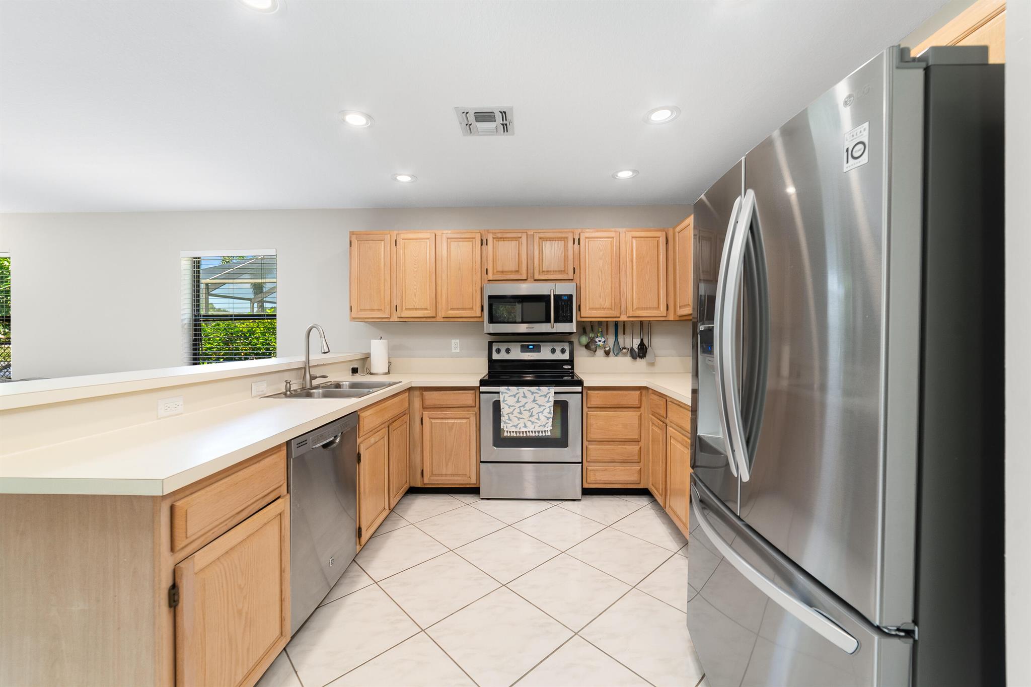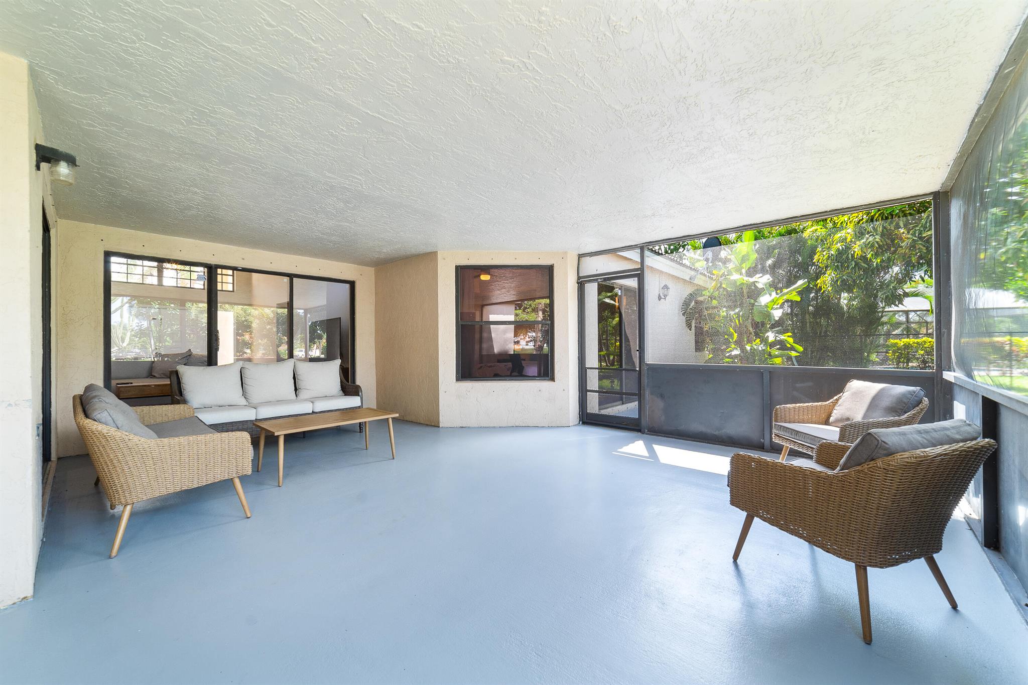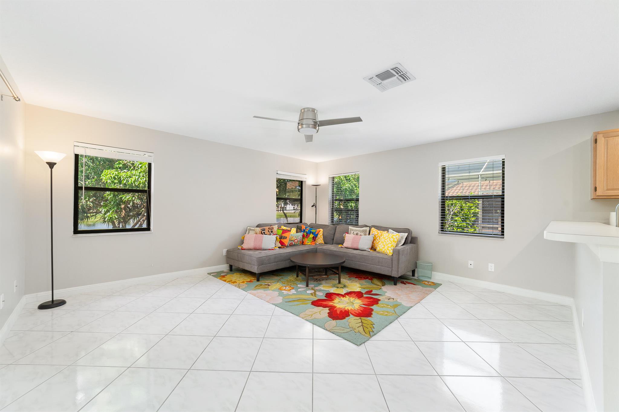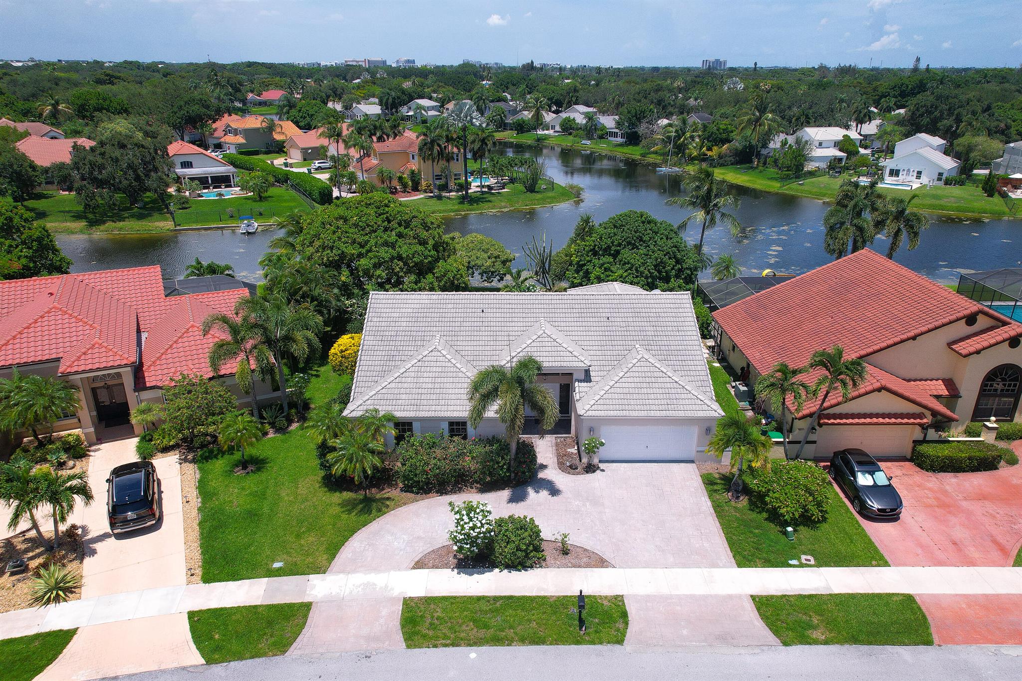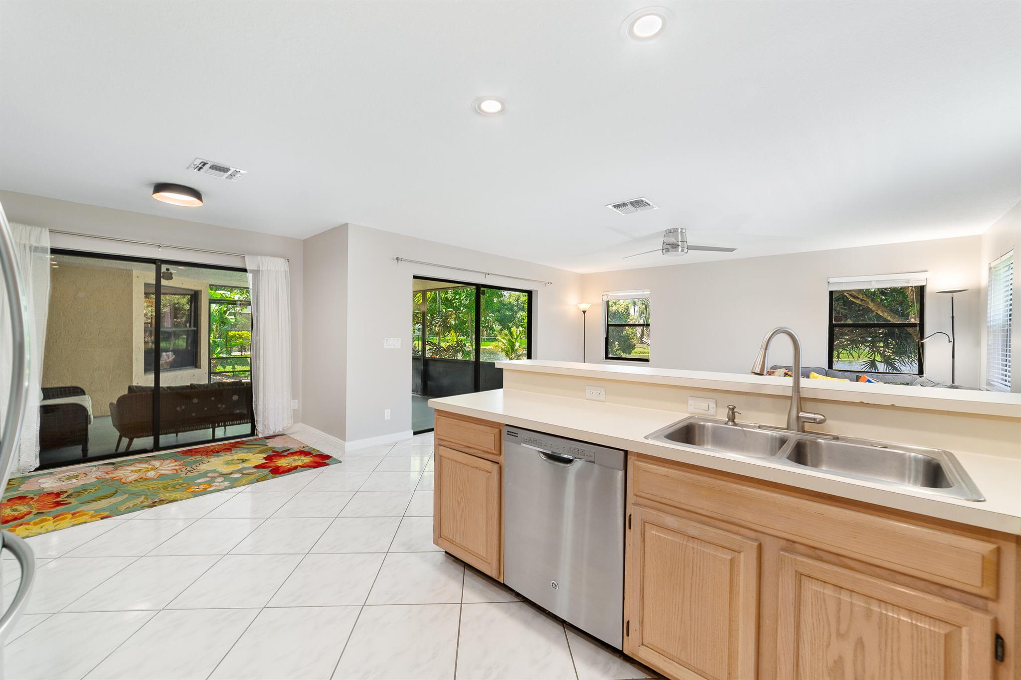 Enter into modern elegance in this 4-bedroom, 2-bathroom residence nestled in the highly sought-after Forest Ridge community of Davie. From the moment you arrive, the grand roundabout driveway and 2-car garage set the tone for this sophisticated home. Inside, soaring vaulted ceilings and an airy open-concept layout create a bright and inviting atmosphere. The expansive living and family room areas flow effortlessly into the updated flooring and modern finishes throughout. The spacious primary suite offers a tranquil retreat, featuring tray ceilings and a partially updated en-suite bath. Head outside to your private oasis with an oversized covered patio overlooking a serene canal lined with mature mango, lychee trees, and vibrant flowering cacti.