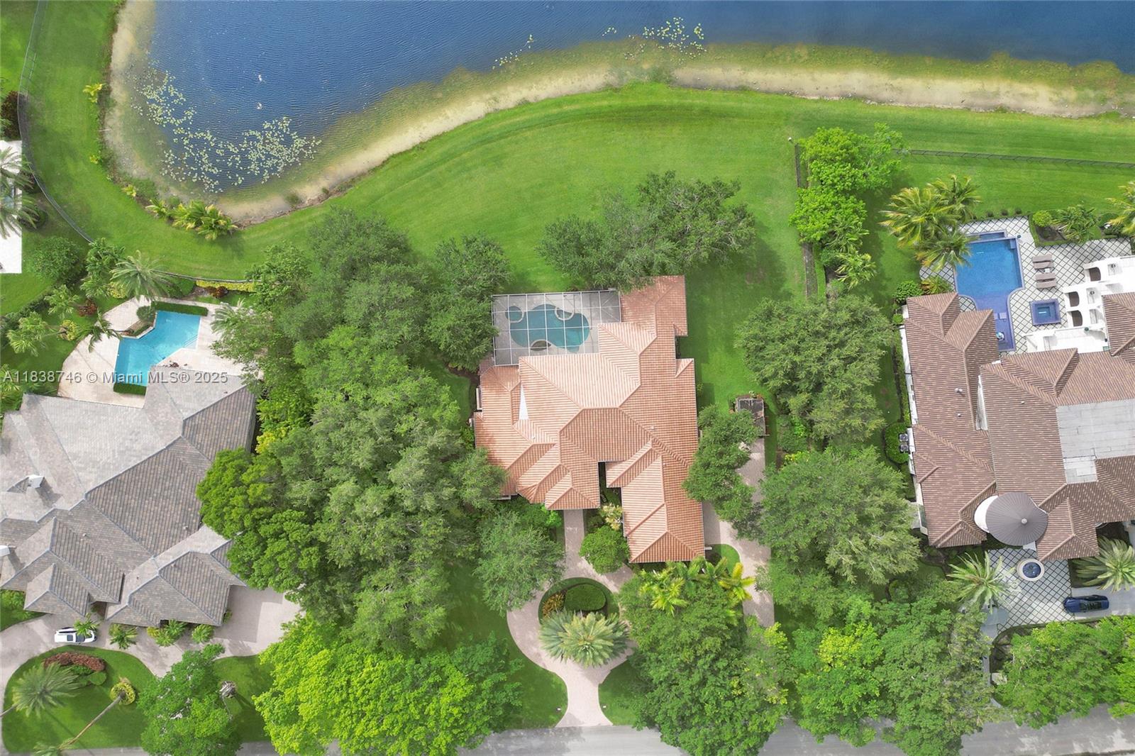 Welcome to Windmill Lake Estates this one-story lakefront estate sits on an expansive 49,796 sq ft lot with 180 feet of panoramic water views. Featuring 5 bedrooms and office, 4 bathrooms, and 4,006 sq ft of living space, this home offers volume ceilings, a brand-new 2024 roof, and neutral tones throughout. Spacious primary suite includes sitting area overlooking the pool and lake views 3 walk-in closets and spa-like bath with whirlpool. Traditional kitchen with wood cabinetry, granite countertops, wall oven, and SS appliances. Enjoy a 3-car side garage, circular driveway, and screened-in pool and spa with serene lake vistas. The lush grounds offer room to expand or create your dream outdoor space. Located in one of Weston’s most exclusive gated communities.