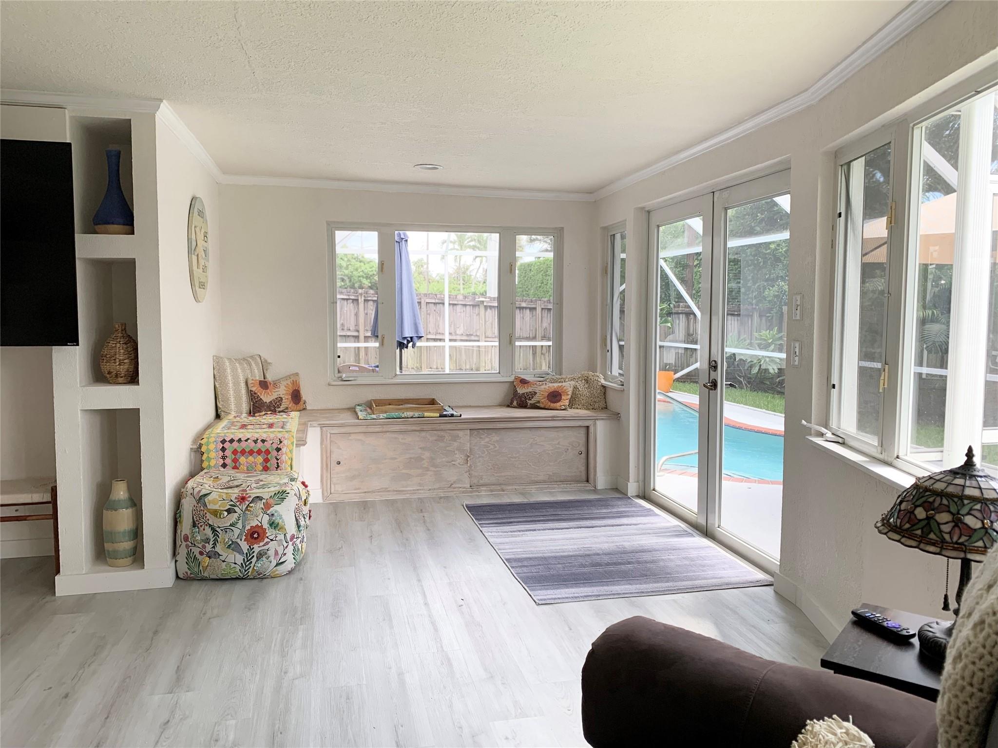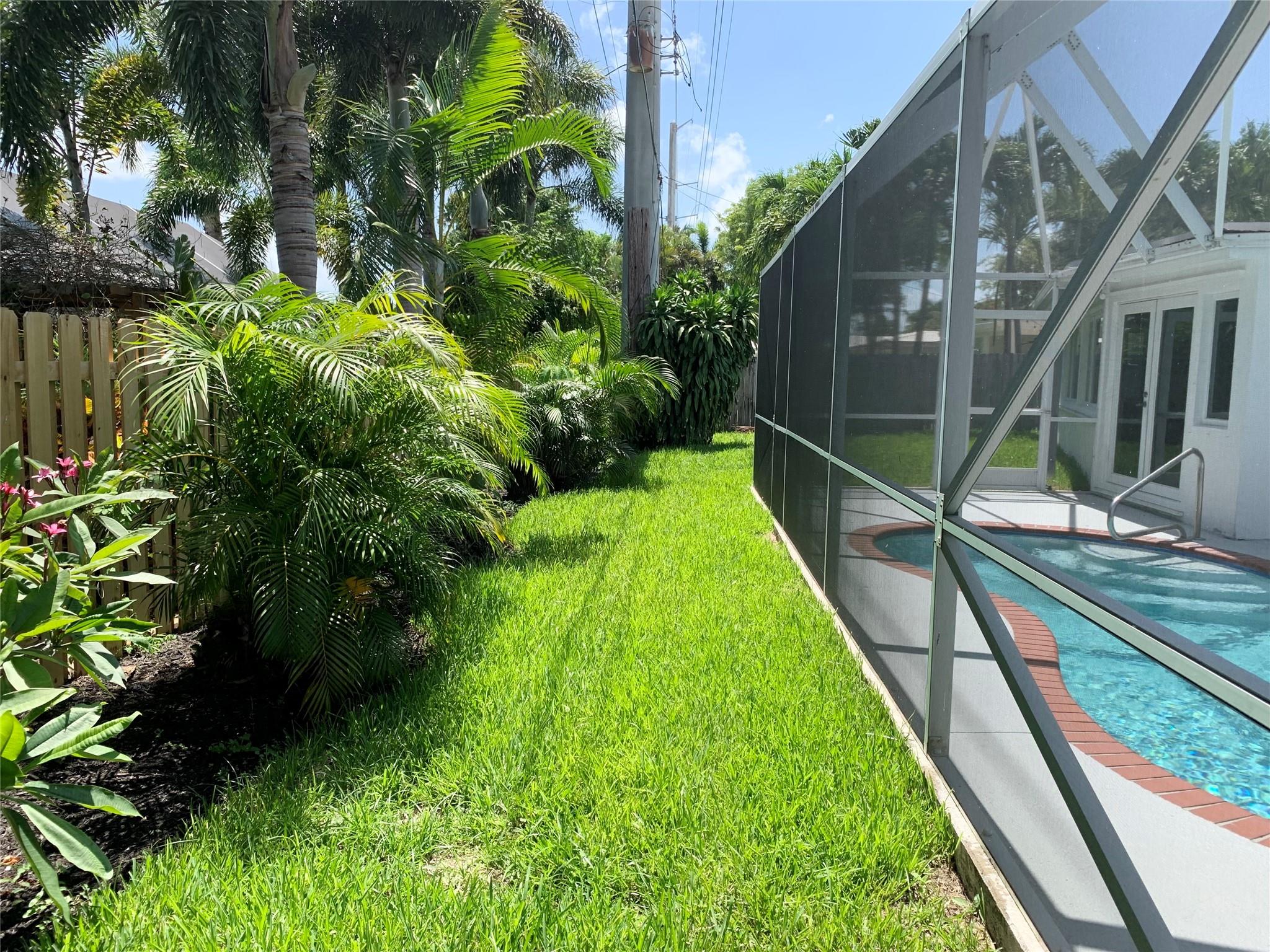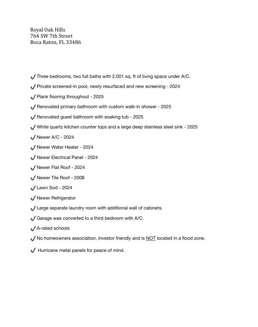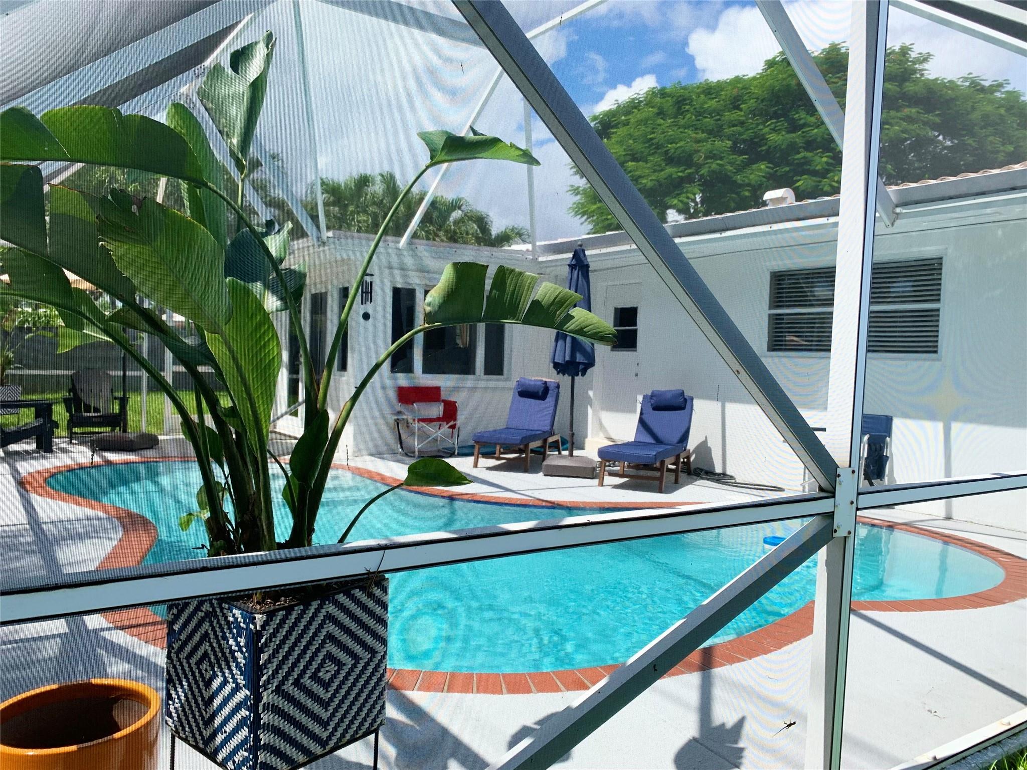 Amazing pool home, nestled in the highly desirable Royal Oak Hills community in East Boca Raton! This stylish 3-bedroom, 2-bathroom house features an open-concept floor-plan with newer plank flooring throughout. Step through double french doors into your private tropical backyard oasis, complete with a newly remodeled screened-in pool, perfect for relaxing or entertaining year-round and a fenced-in yard. NEWER bathrooms, white quartz kitchen countertops, large deep sink, flat roof, a/c, water heater and electrical panel, for peace of mind. A spacious laundry room with an additional wall of storage. Garage was converted to a 3rd bedroom w/ac mini-split. Great location, A-rated schools, close to vibrant downtown Boca Raton and just over 1 mile to the beach.