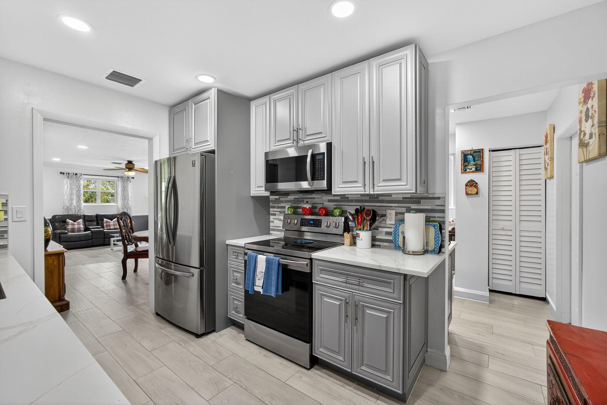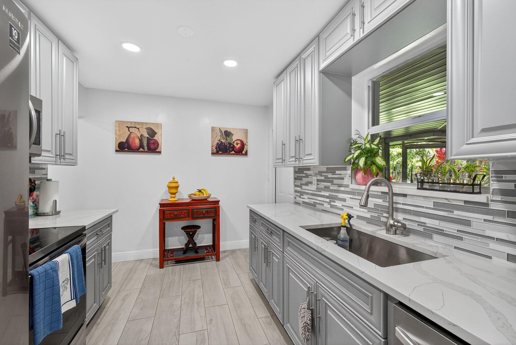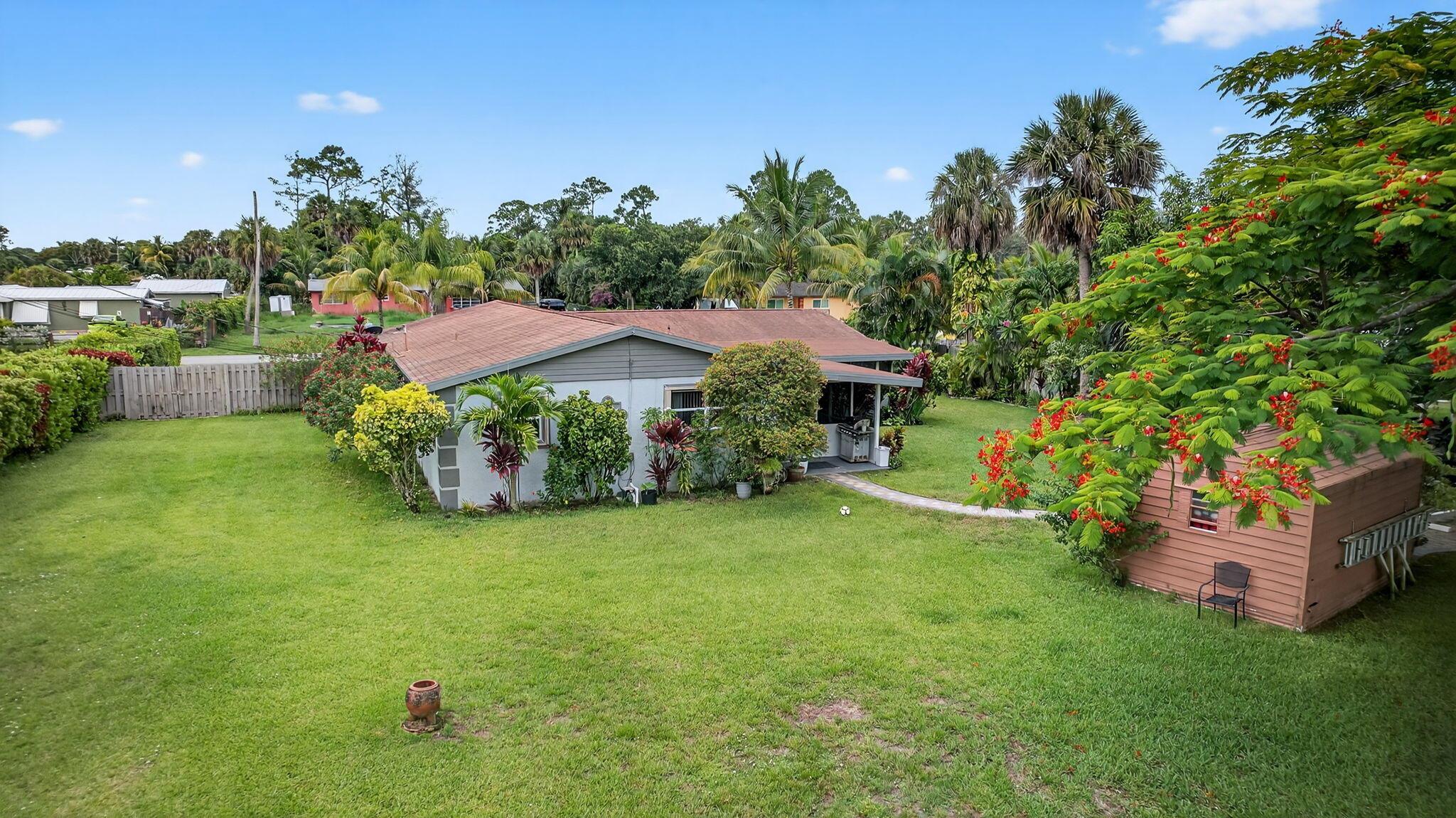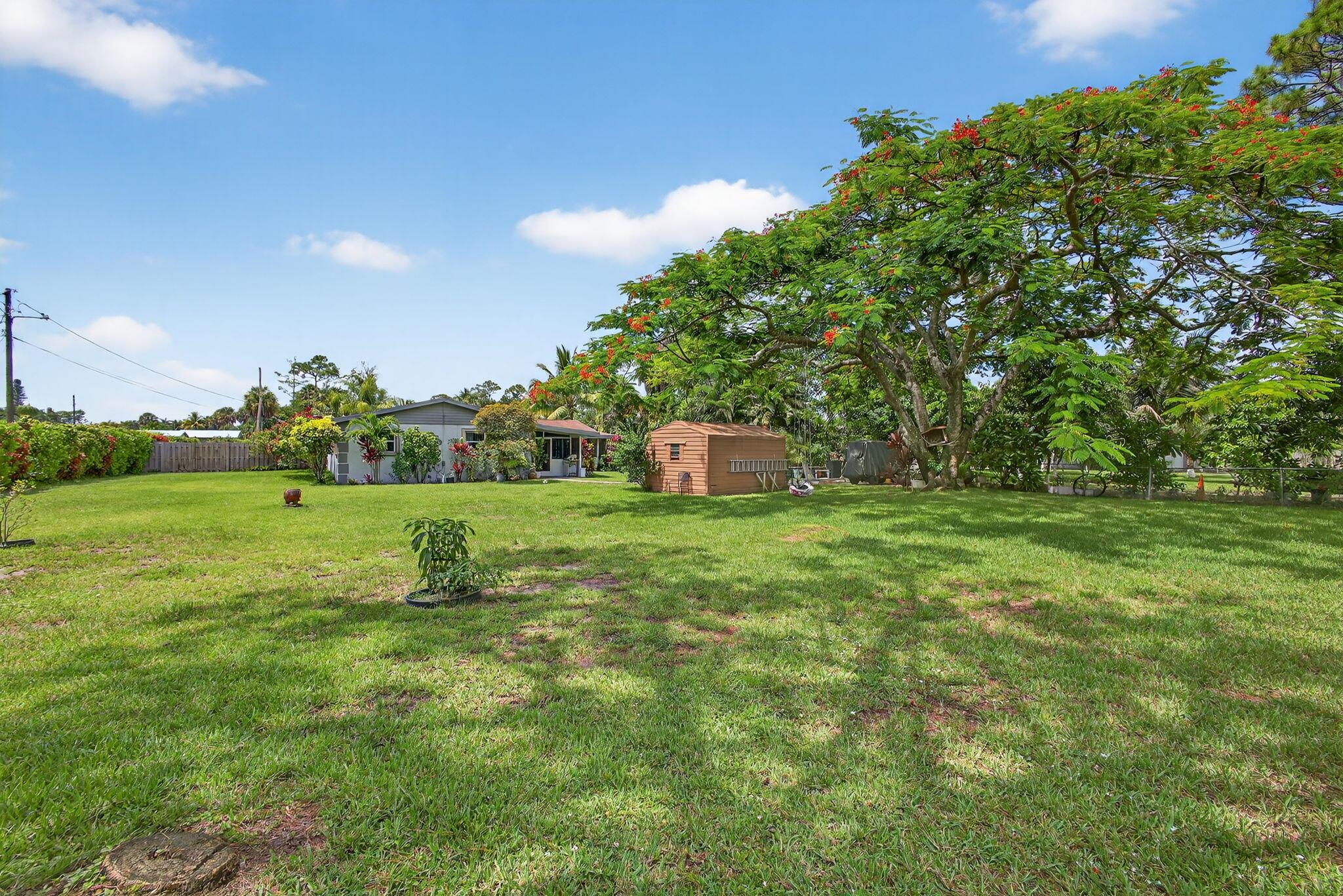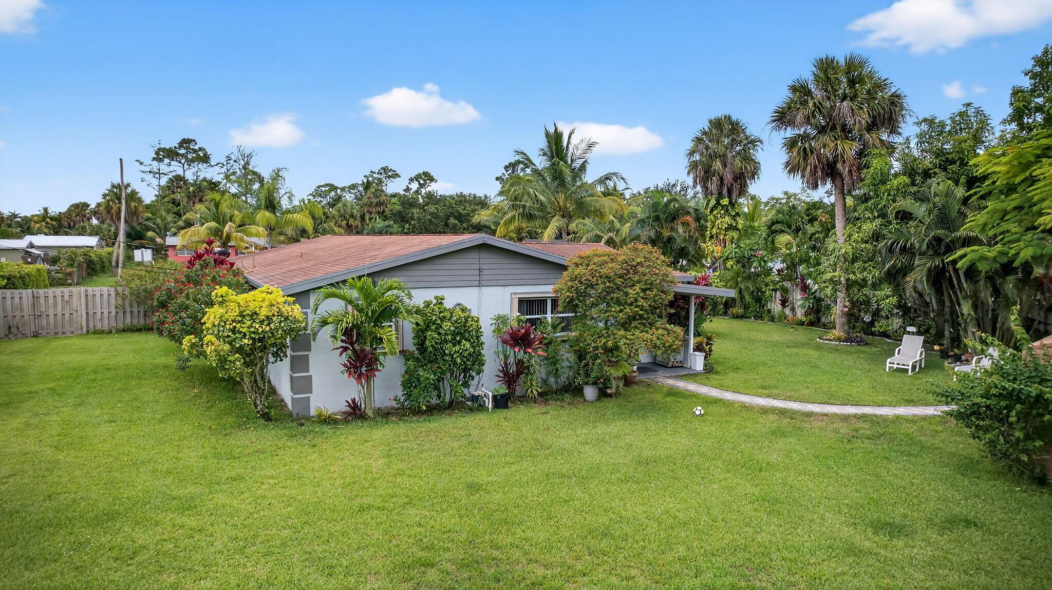 ''Discover a gem on (.90) acre surrounded by mature and lush Mango trees. This expansive property offers endless possibilities, whether it's adding an pool or let your pets run freely. The updated 4 Bedroom/2 Bath L shaped Ranch style home is a blend of modern comfort and timeless charm, with no HOA and no restrictions holding you back. Kitchen equipped with all Newer Appliances. Embrace the freedom to make this your dream oasis. Your private slice of paradise awaits.''Grab a piece of the country in the city complete with a shy acre to contain even the largest of toys. This Mid Century Modern ranch will knock your socks off. The spacious four bedroom two bathroom, floor plan gives you plenty of room to roam, rest and relax. The screened in back patio is perfect to grill