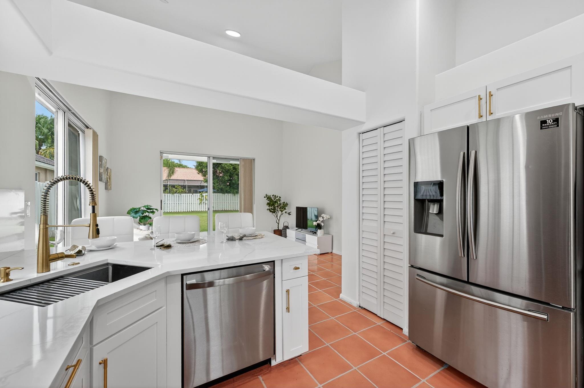 STUNNING, NEWLY REMODELED, LIGHT, BRIGHT & AIRY! LOWEST PRICE FOR a 5/3 with a lot this large in all Weston! Almost 1/4 ACRE w/PRIVATE FENCED YARD, generous covered patio. 1st Floor has primary suite + 5th BD, ideal as den/nursery; 2nd Floor w private 3BD kids' wing. NEW UPDATES incl NEW white quartz kitchen w/high-end stainless appl (Oct 2024), 3 NEW updated bathrooms (July 2025), $25K all NEW permitted plumbing re-pipe (Nov 2024), NEWLY PAINTED in/out, NEW LED & modern light fixtures, 2024 water heater, new sprinklers & timer, new laundry sink w/high-end W/D. High-end Italian tile in living areas, oversized 2CG w/bike storage, TESLA charger, Trane AC w/Smart thermostat, hurricane accordions + panels. BOUTIQUE COMM, gated, steps to lakefront clubhouse w pool/spa/ball court. TOP SCHOOLS!