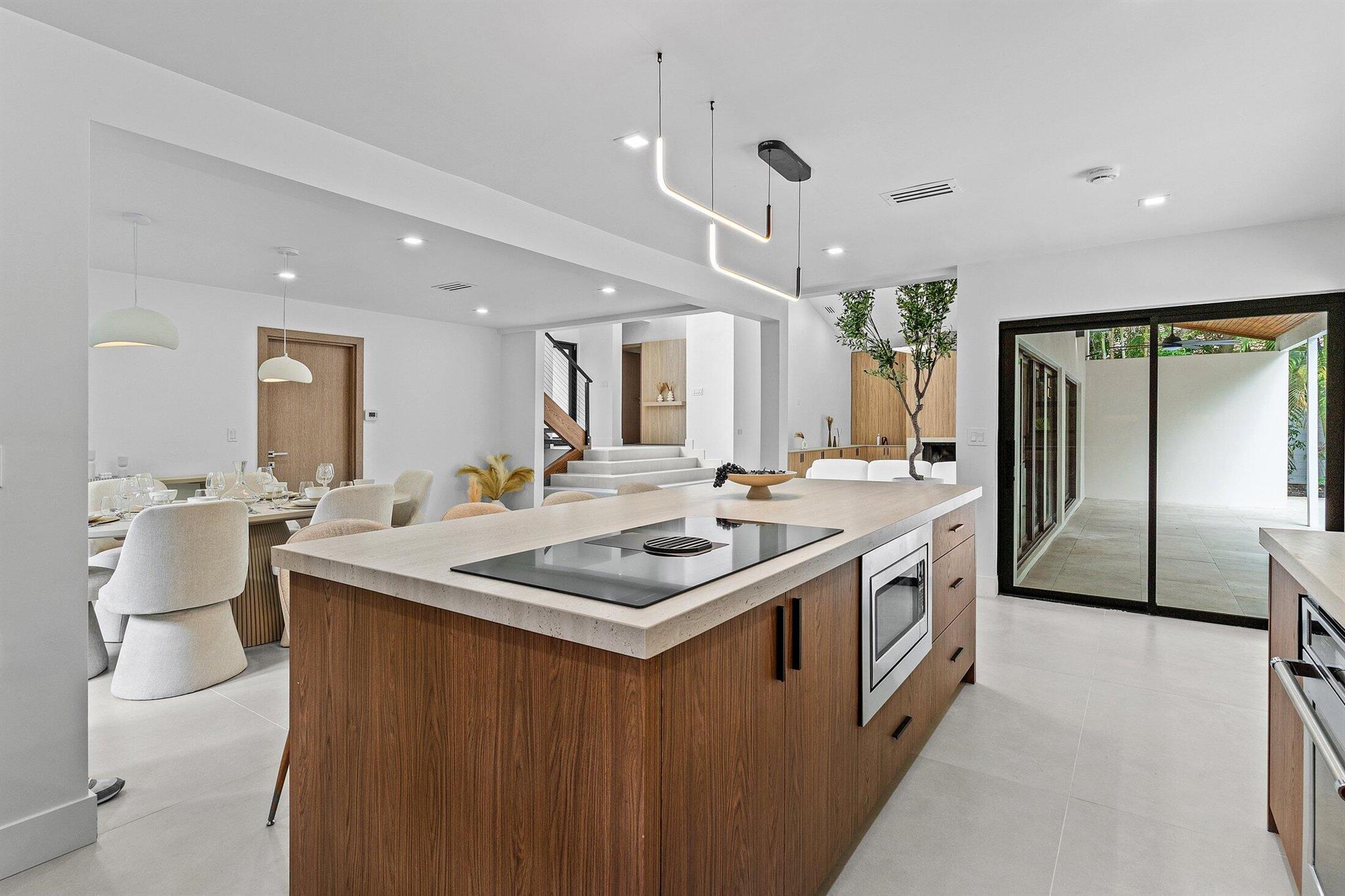 Attention Buyers! Seller has received offers. Priced below recent appraisal --act fast. A rare architectural gem and exceptional value. Will not last.Brand new impact windows I New modern tile roof I New smooth stucco finish I Exterior/Interior satin paint I New large porcelain tile floors I New bathroom wall tiles I Custom kitchen cabinets I Porcelain countertops I Built-in closet cabinets I European interior doors I Modern new decking I New high-end appliances I New modern railings I New lighting I New pool finish and tiles. This striking residence commands attention with soaring 18-foot-wide front windows, flooding the interior with natural light. Designed for those who value timeless architecture and refined living, the home is tucked within a serene, tree-lined neighboorhood.