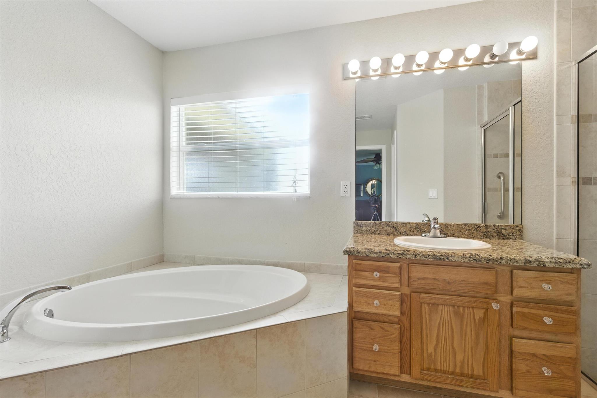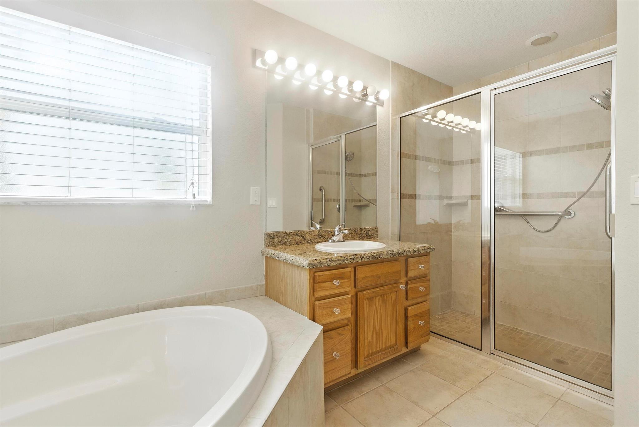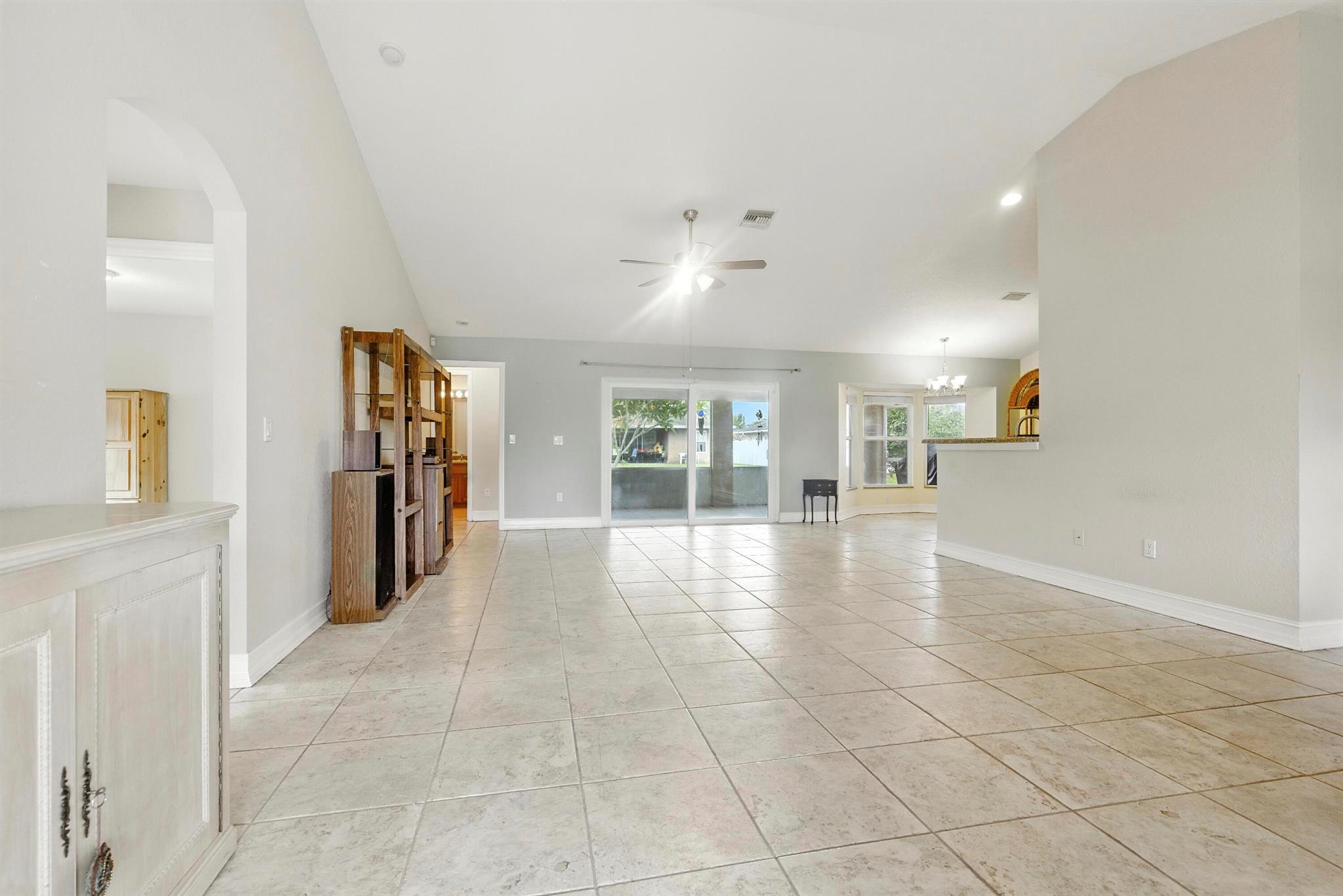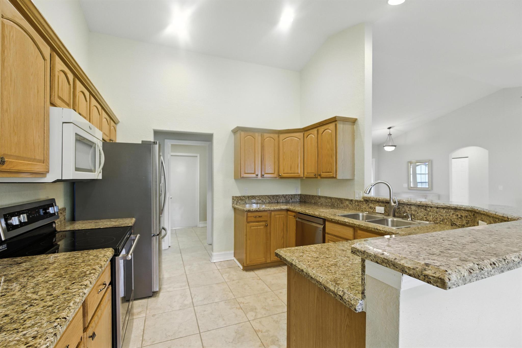 SPACIOUS 4 BR HOME WITH IN-LAW SUITE AND NEW ROOF!!Welcome to this beautifully maintained 4-bedroom, 3-bath home featuring a desirable split-bedroom layout, perfect for privacy and multigenerational living. The in-law suite includes its own private entrance, making it perfect for guests, extended family, or as a potential income producing rental. Step inside to soaring cathedral ceilings and an open floor plan that fills the space with natural light. The kitchen boasts granite countertops and overlooks the main living area--ideal for entertaining. Enjoy durable tile flooring throughout the home, combining style and easy maintenance. Additional highlights include impact windows and sliding doors, 2025 roof, 2018 HVAC, 2023 WH, paver driveway and full irrigation system.