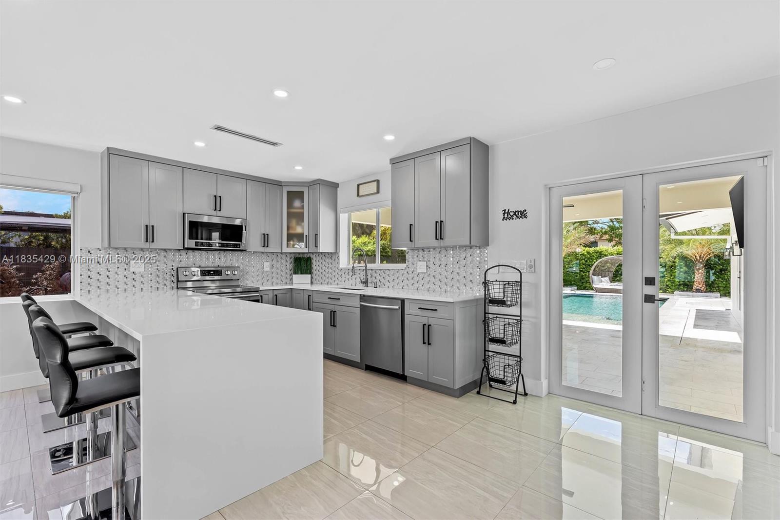The entertainment house of the block! This stunning 4 bed, 3 bath home in the coveted PSN community was fully remodeled with no detail spared. Legal addition & complete renovations in 2022. Features include ALL NEW roof, impact windows & doors, electrical, plumbing, A/C ducts, recessed lighting & gas lines ready for connection. The spacious primary suite overlooks the pool & features a massive walk-in closet and beautifully finished en-suite bath. The modern open kitchen with quartz countertops flows into spacious living areas. Step outside to your private resort-style pool & covered patio—fully done in 2024, an entertainer’s dream! Circular driveway with artificial turf accents & a massive gated side lot ideal for your boat or RV. Conveniently located near major highway, dining & shops.