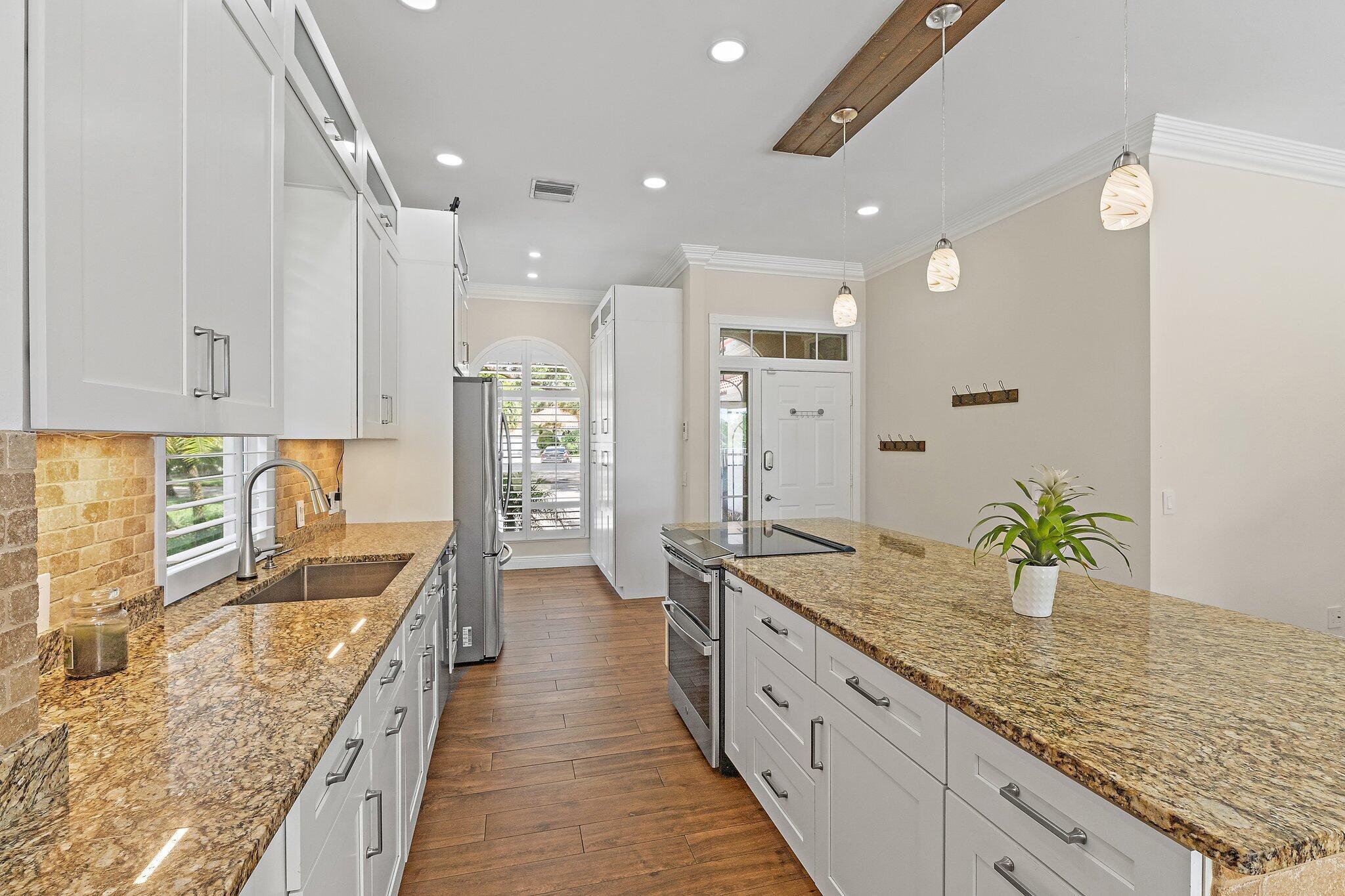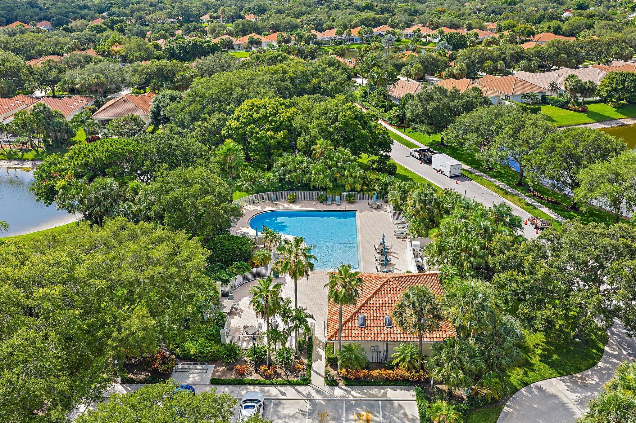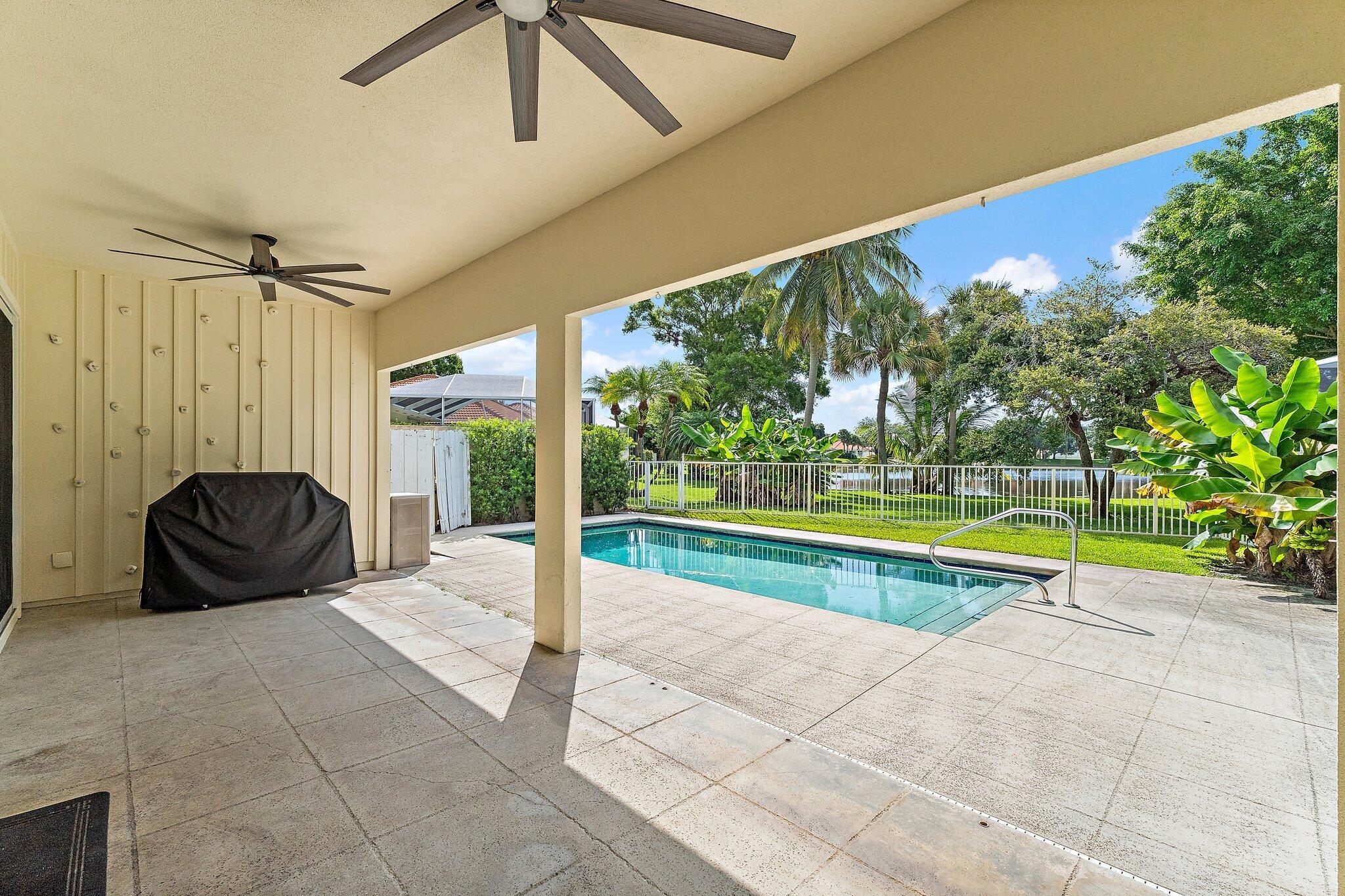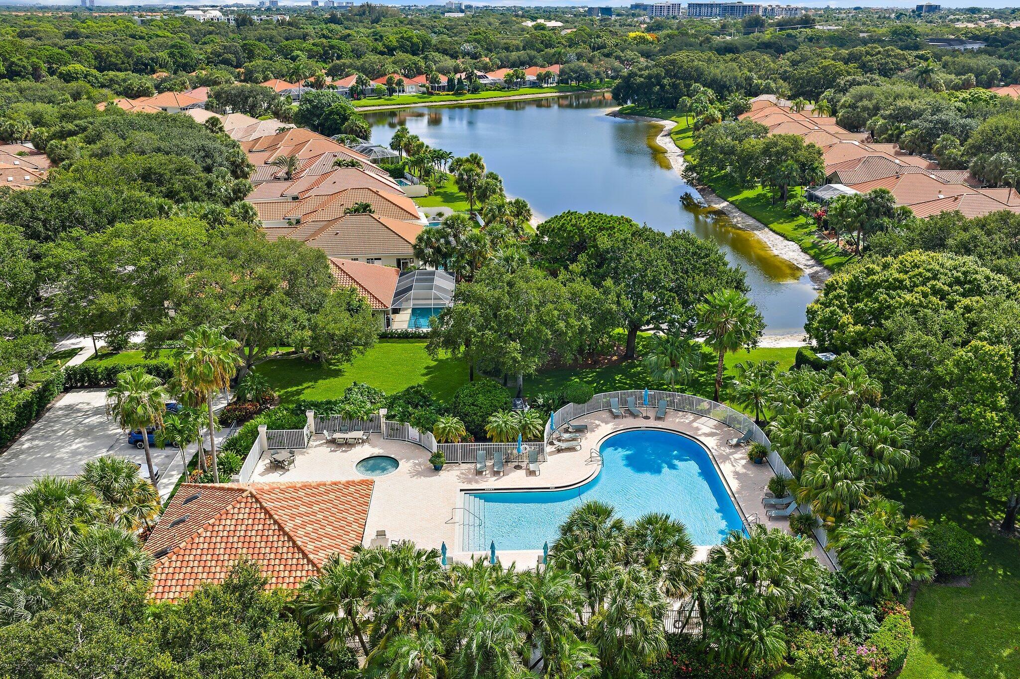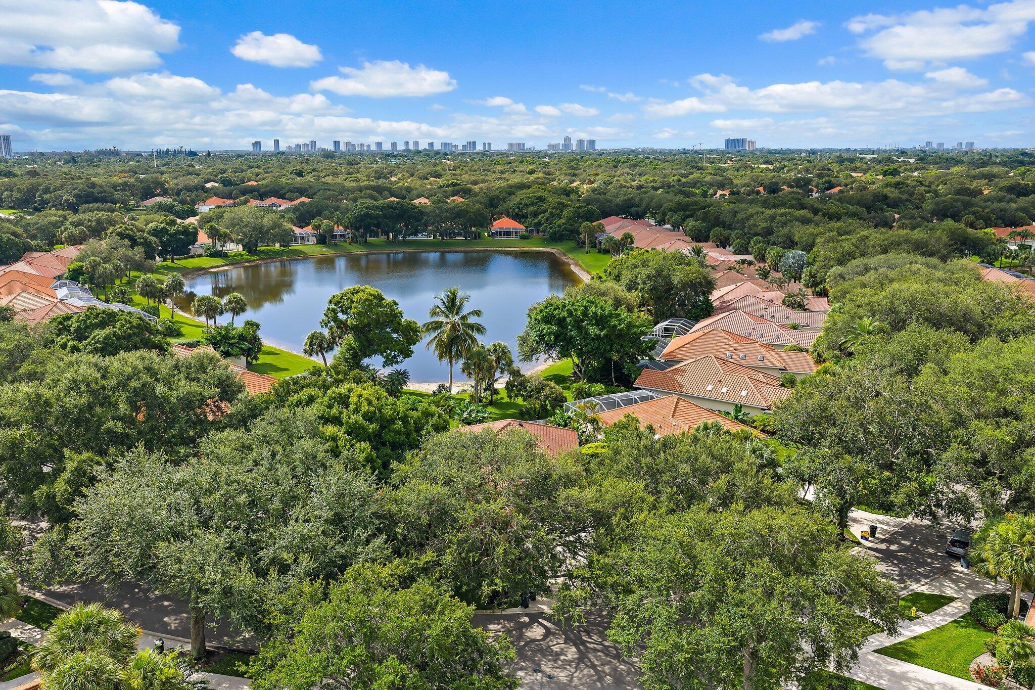 INCREDIBLE VALUE! Beautifully appointed 3 bedroom/2 bath pool home (built by DiVosta) on the pond in the serene gated community of Oaks East. This bright home equipped with Impact windows/sliders has been thoughtfully updated with tile floors thru-out, designer lighting, Chef's delight kitchen features solid wood shaker-style Jarlin custom cabinetry, GE Profile appliances/induction stove/double oven & wine fridge, spa-inspired Master/Primary bath, Crown Molding & 3-Panel Wood Doors. Enjoy the private yard/pool surrounded by tropical landscaping including Avocado & Banana trees overlooking the tranquil pond. Tile roof & impact windows/sliders 2019 HVAC 2019 Water Heater 2017. Just minutes to the beach, world-class shopping, restaurants, golf & Palm Beach International Airport