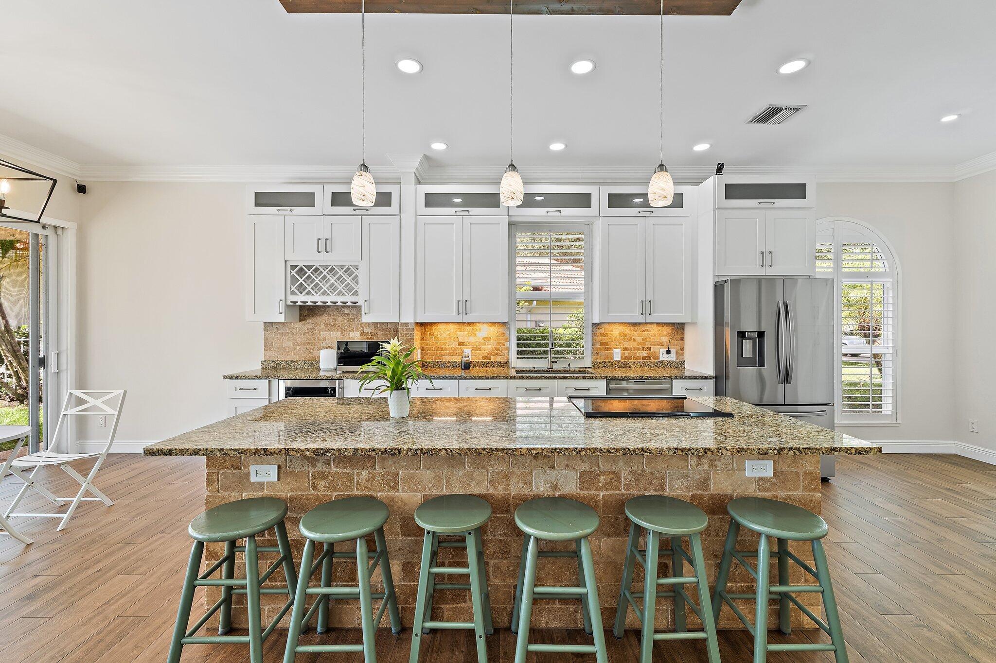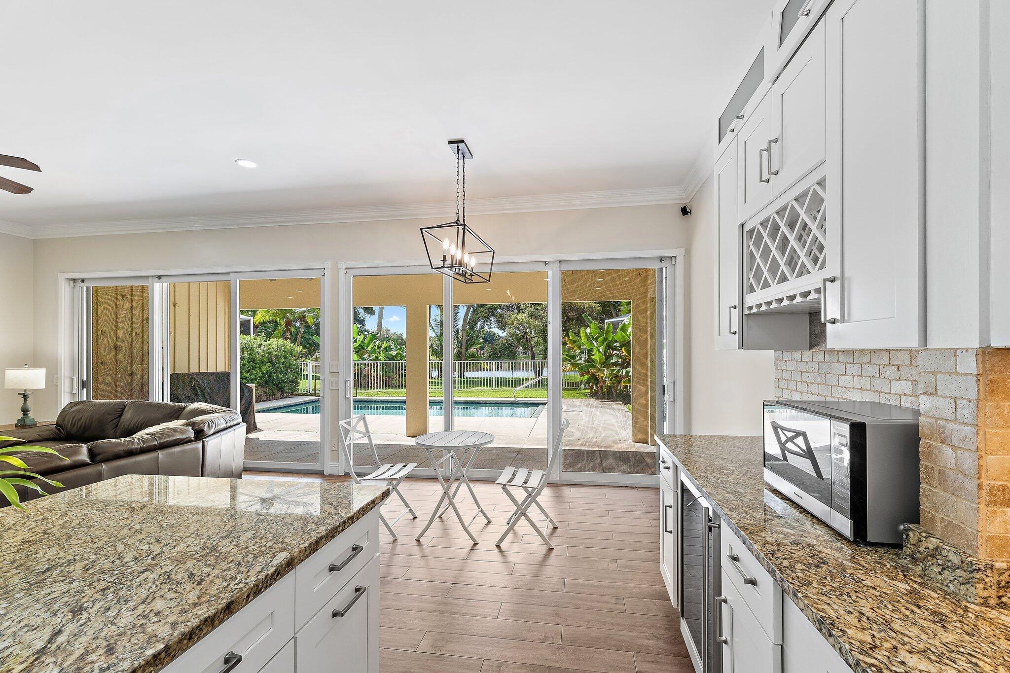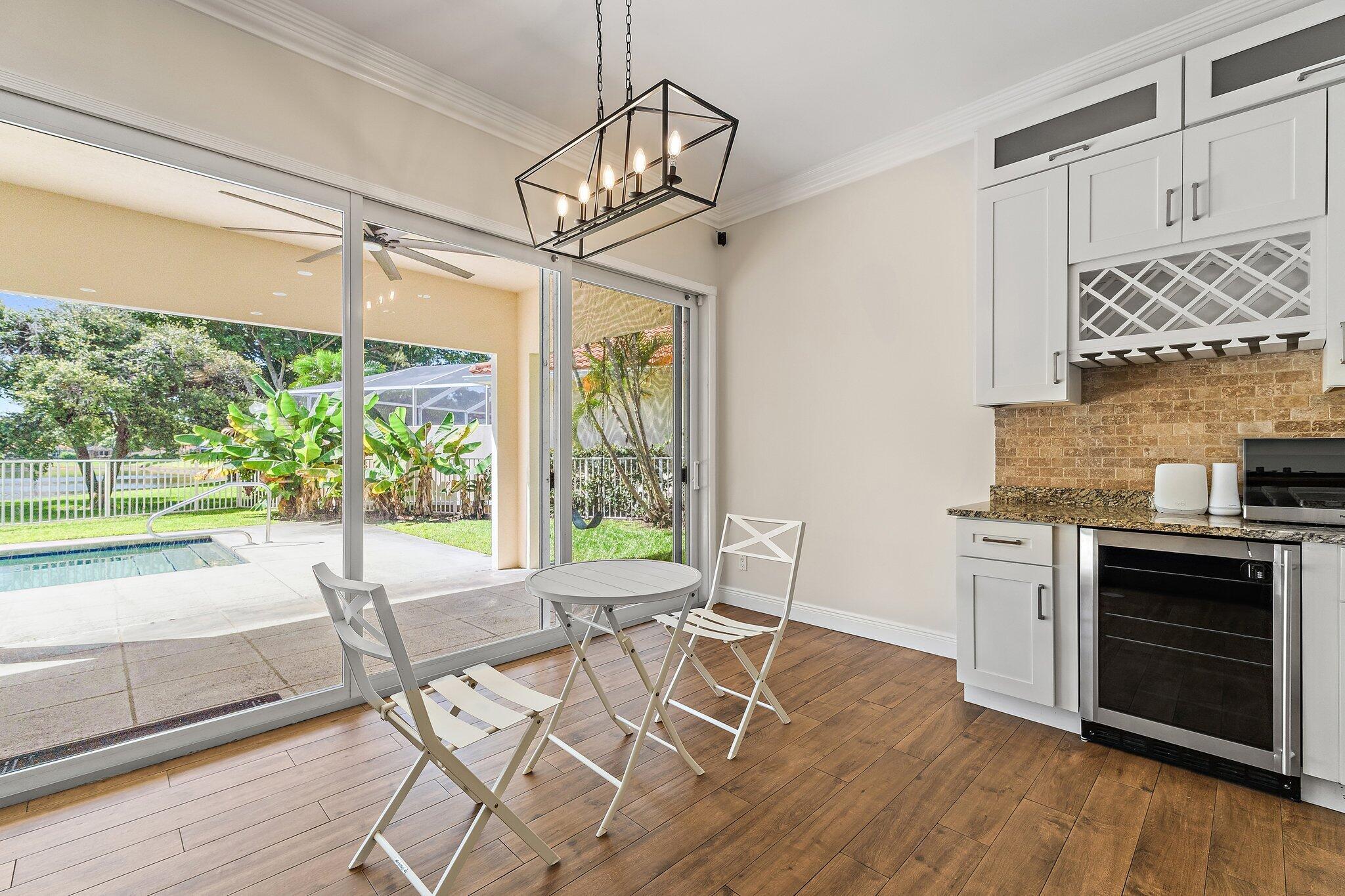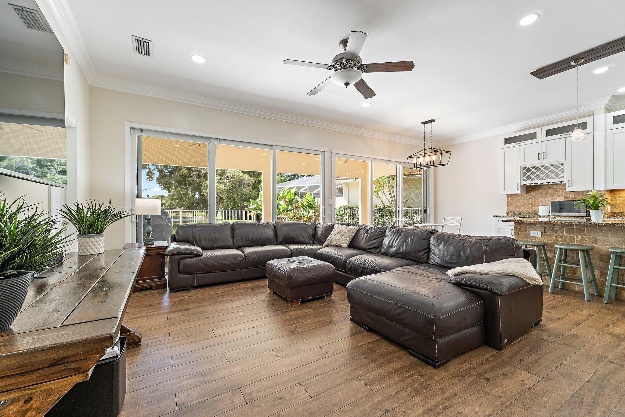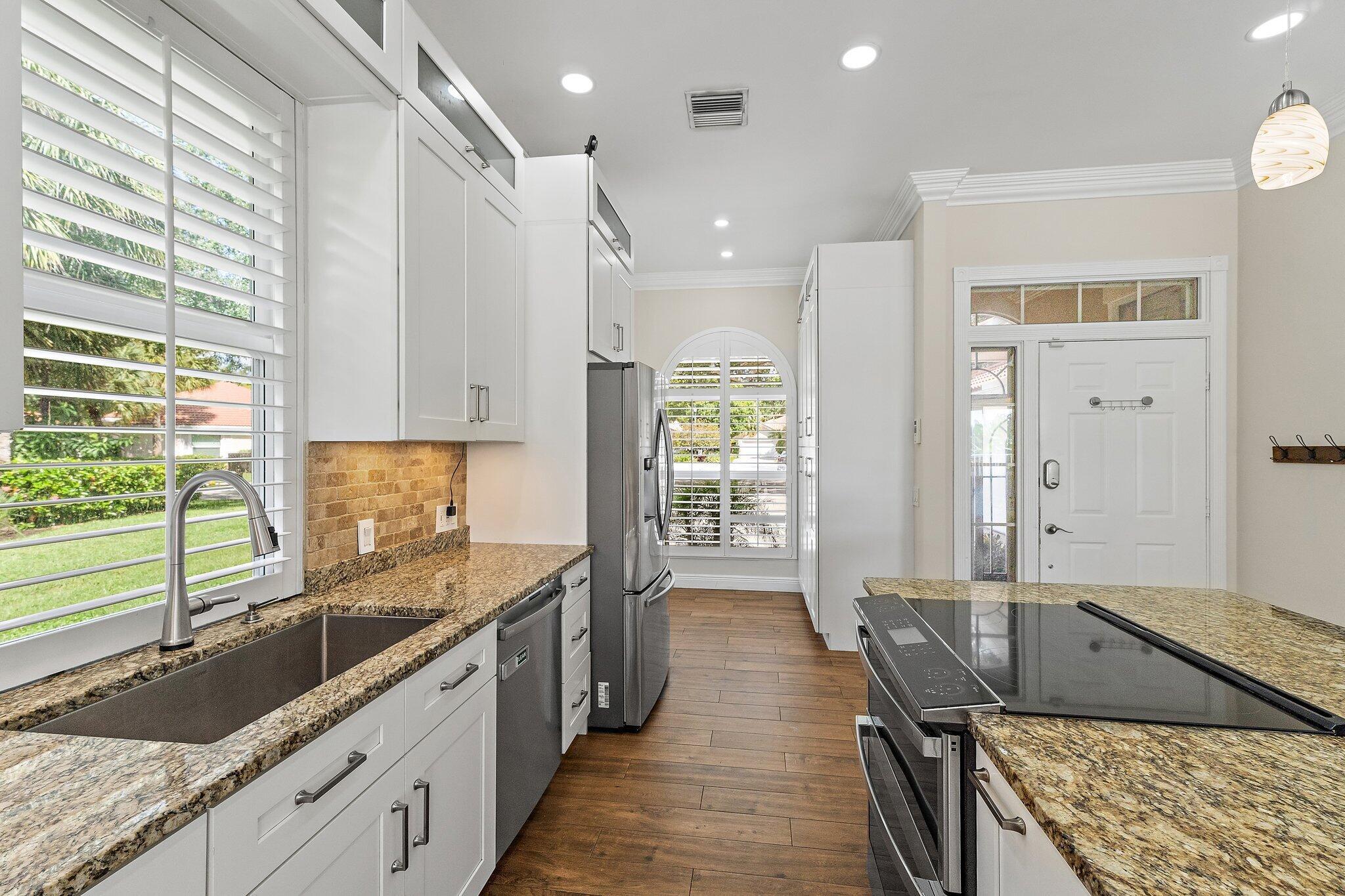 INCREDIBLE VALUE! Beautifully appointed 3 bedroom/2 bath pool home (built by DiVosta) on the pond in the serene gated community of Oaks East. This bright home equipped with Impact windows/sliders has been thoughtfully updated with tile floors thru-out, designer lighting, Chef's delight kitchen features solid wood shaker-style Jarlin custom cabinetry, GE Profile appliances/induction stove/double oven & wine fridge, spa-inspired Master/Primary bath, Crown Molding & 3-Panel Wood Doors. Enjoy the private yard/pool surrounded by tropical landscaping including Avocado & Banana trees overlooking the tranquil pond. Tile roof & impact windows/sliders 2019 HVAC 2019 Water Heater 2017. Just minutes to the beach, world-class shopping, restaurants, golf & Palm Beach International Airport