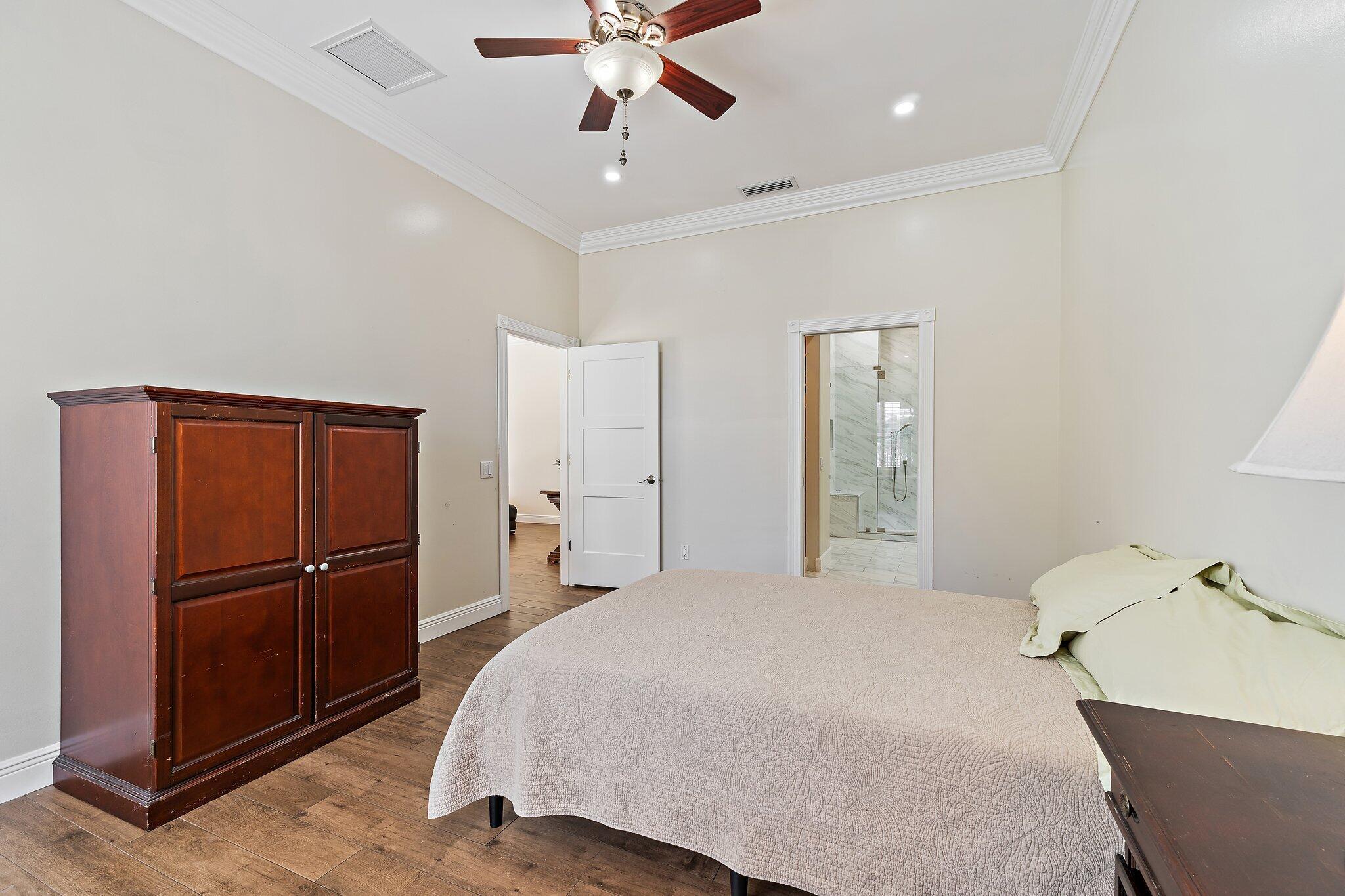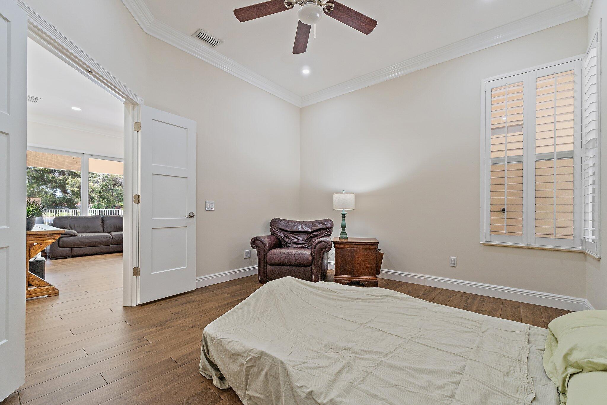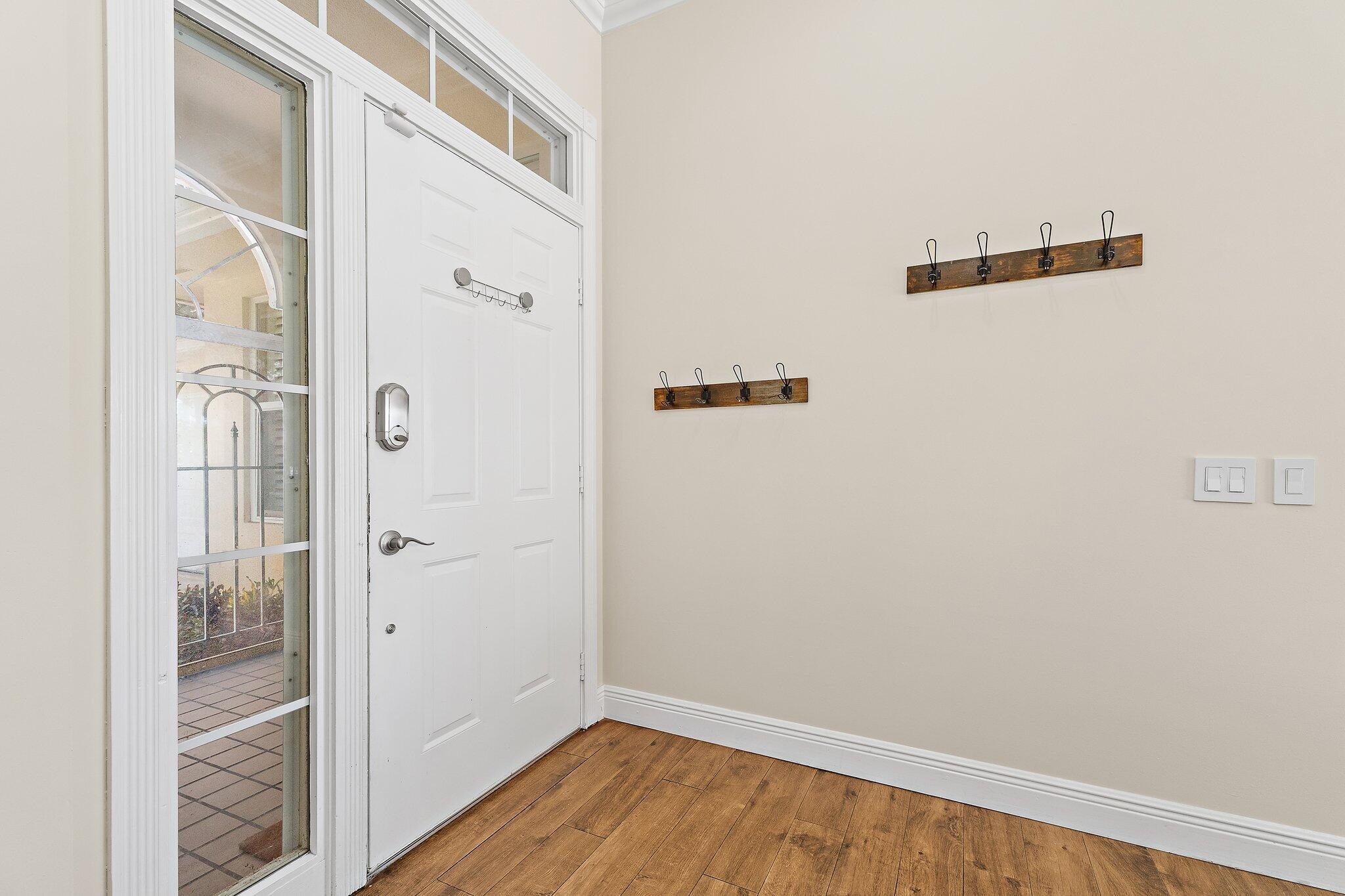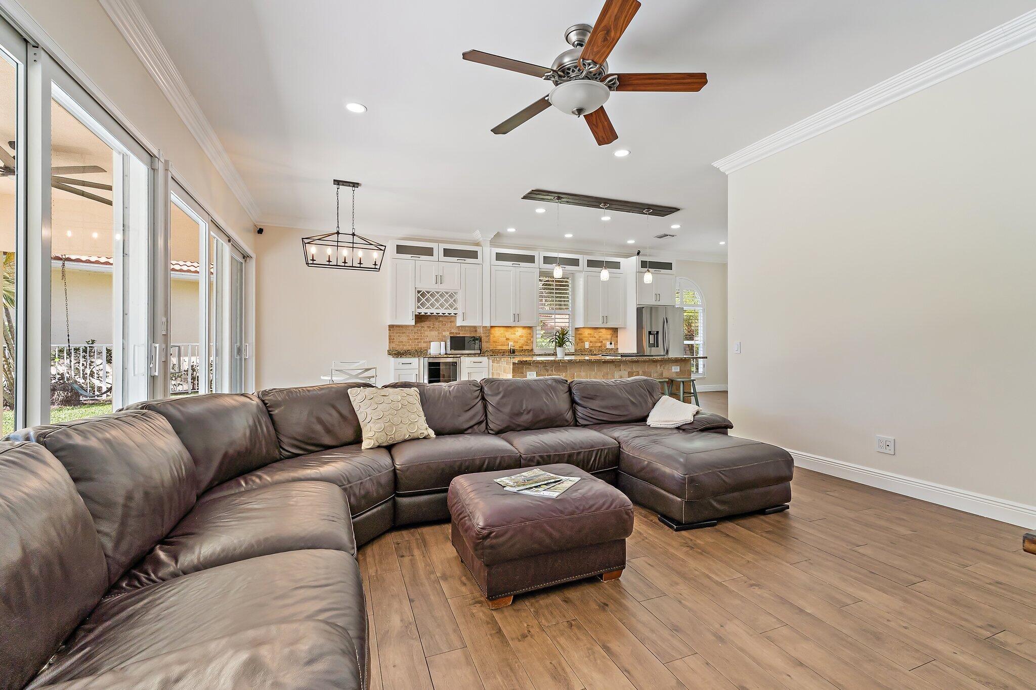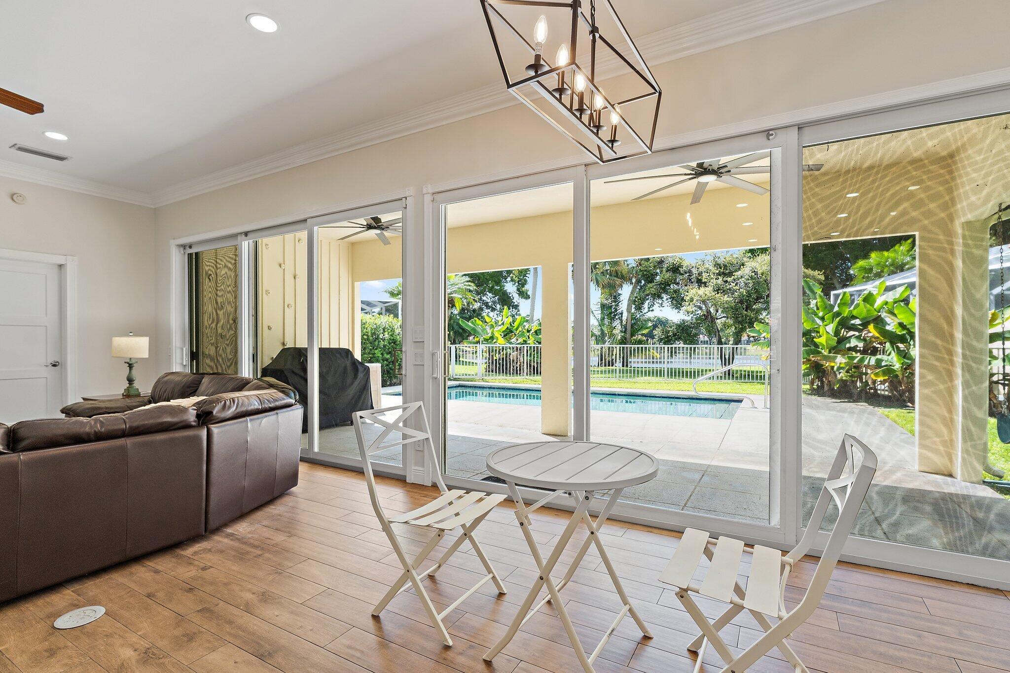 INCREDIBLE VALUE! Beautifully appointed 3 bedroom/2 bath pool home (built by DiVosta) on the pond in the serene gated community of Oaks East. This bright home equipped with Impact windows/sliders has been thoughtfully updated with tile floors thru-out, designer lighting, Chef's delight kitchen features solid wood shaker-style Jarlin custom cabinetry, GE Profile appliances/induction stove/double oven & wine fridge, spa-inspired Master/Primary bath, Crown Molding & 3-Panel Wood Doors. Enjoy the private yard/pool surrounded by tropical landscaping including Avocado & Banana trees overlooking the tranquil pond. Tile roof & impact windows/sliders 2019 HVAC 2019 Water Heater 2017. Just minutes to the beach, world-class shopping, restaurants, golf & Palm Beach International Airport
