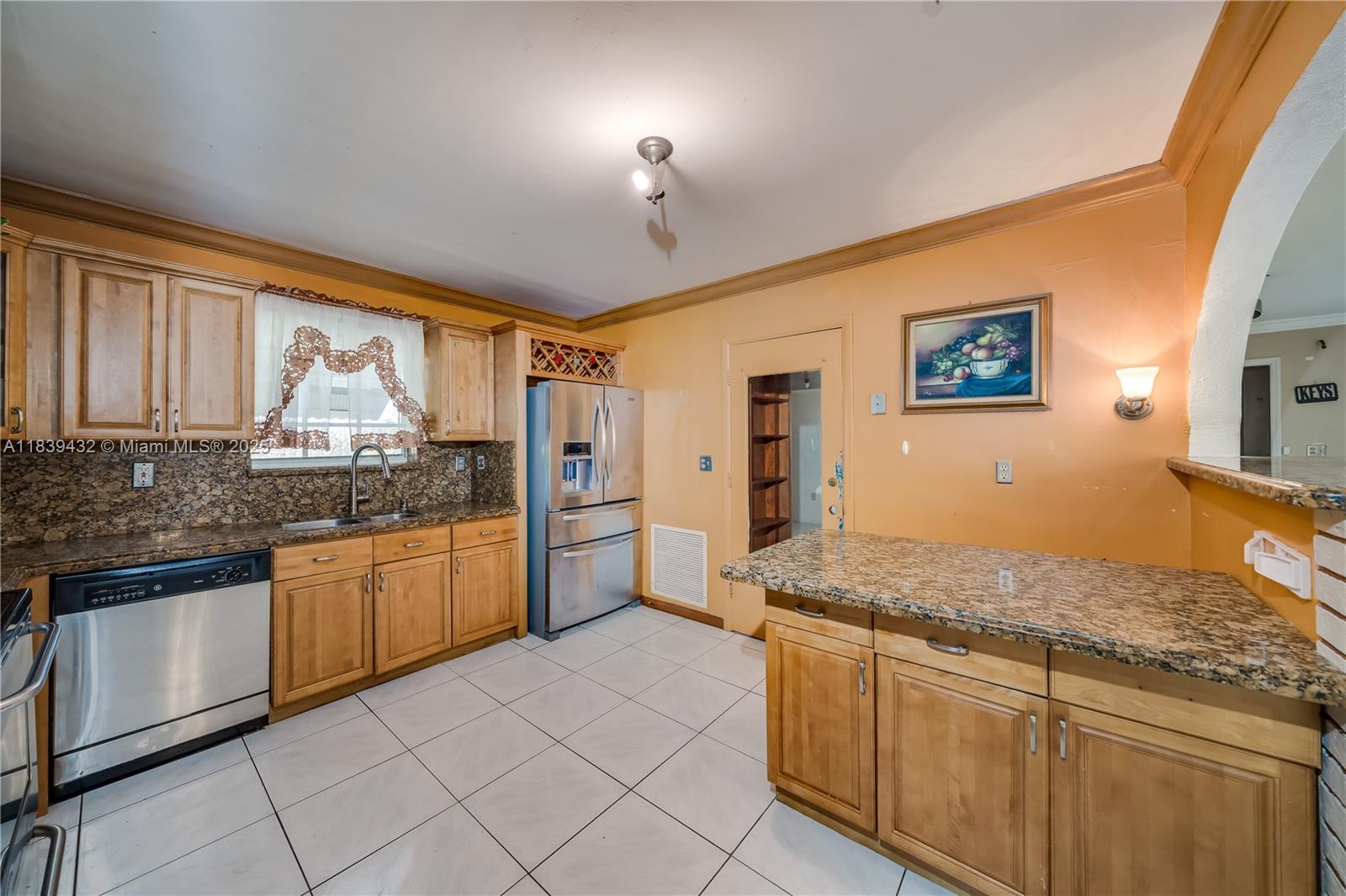 This charming 3-bedroom, 2-bathroom single-family home in the heart of Hollywood offers a well-designed layout with formal living, dining, and family rooms. The kitchen boasts sparkling granite countertops and stainless steel appliances. Enjoy a spacious laundry room with an energy-efficient tankless water heater, providing endless hot water. The private backyard oasis features established mango trees and a variety of garden plants, ideal for outdoor enjoyment. No HOA fees. Conveniently located near shopping, schools, Broward College, and major highways.