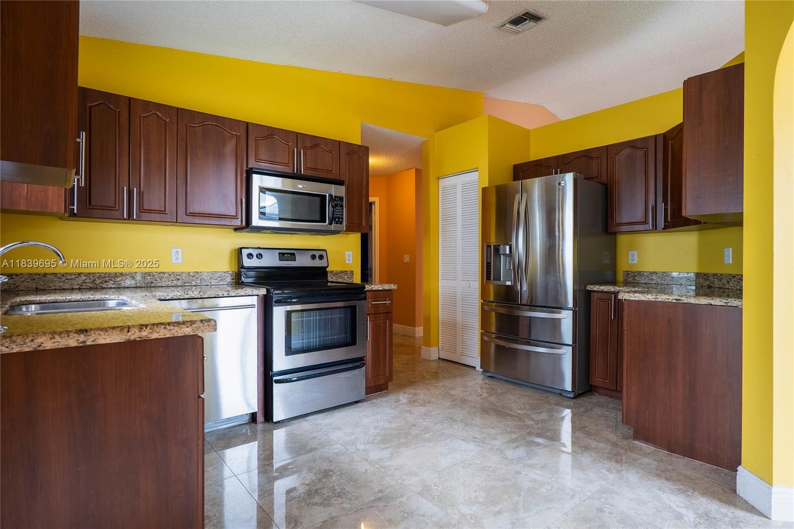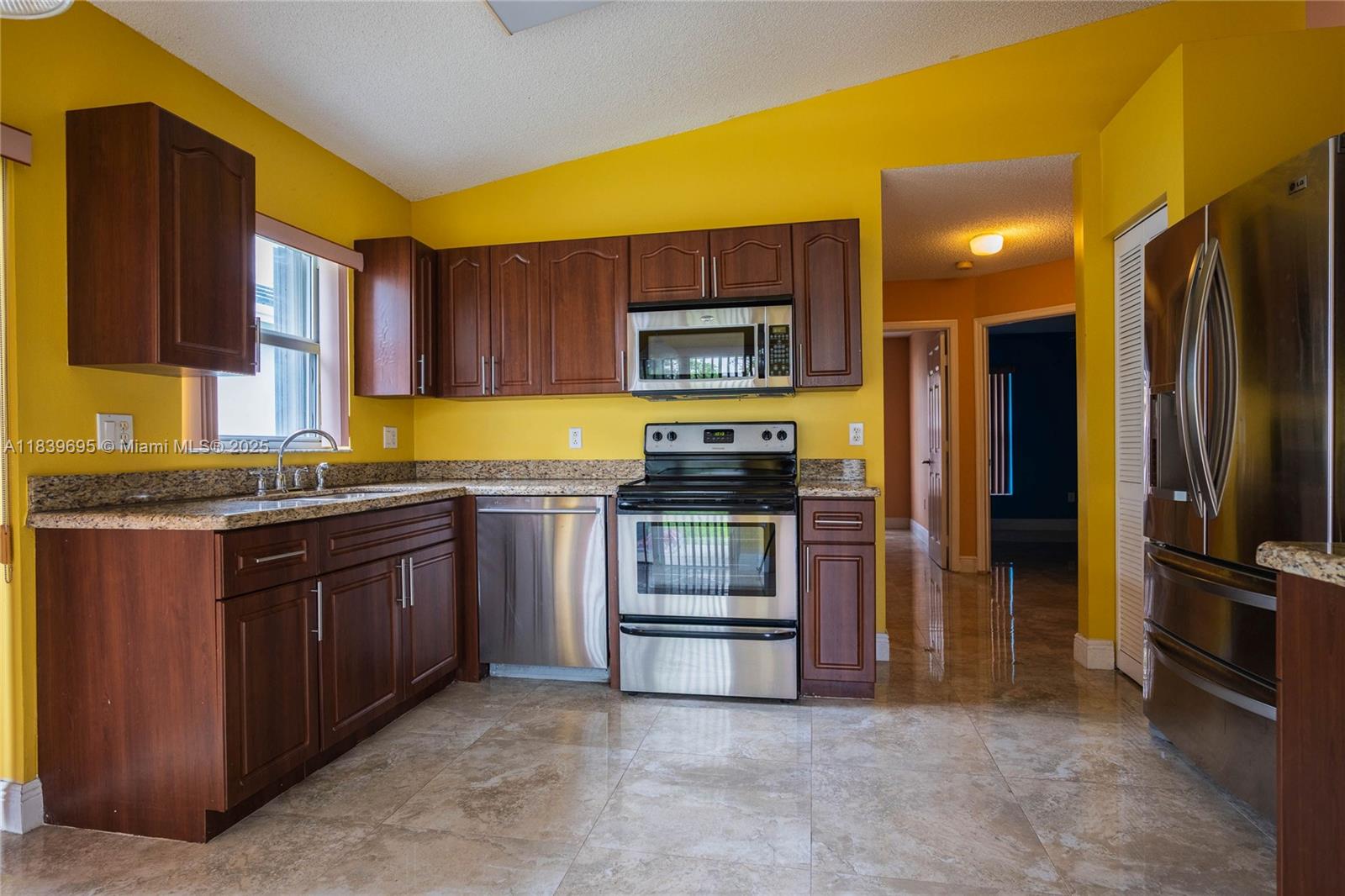 Welcome to Deerwood — a beautifully maintained single-family home in the highly desirable Miami-Dade community! This move-in ready home features a brand new roof and full accordion shutters, offering peace of mind during hurricane season. Inside, you’ll find elegant marble flooring throughout, an upgraded kitchen with modern appliances, and a spacious primary suite with a walk-in closet, glass enclosed shower, and a stand-alone soaking tub. Enjoy the convenience of a Samsung washer and dryer and an automatic garage door opener for your one-car garage. Located near the Florida Turnpike for easy commuting, this walkable, friendly neighborhood is perfect for families seeking comfort and convenience. Close to Zoo Miami, parks, great schools, plus nearby shopping and dining options!