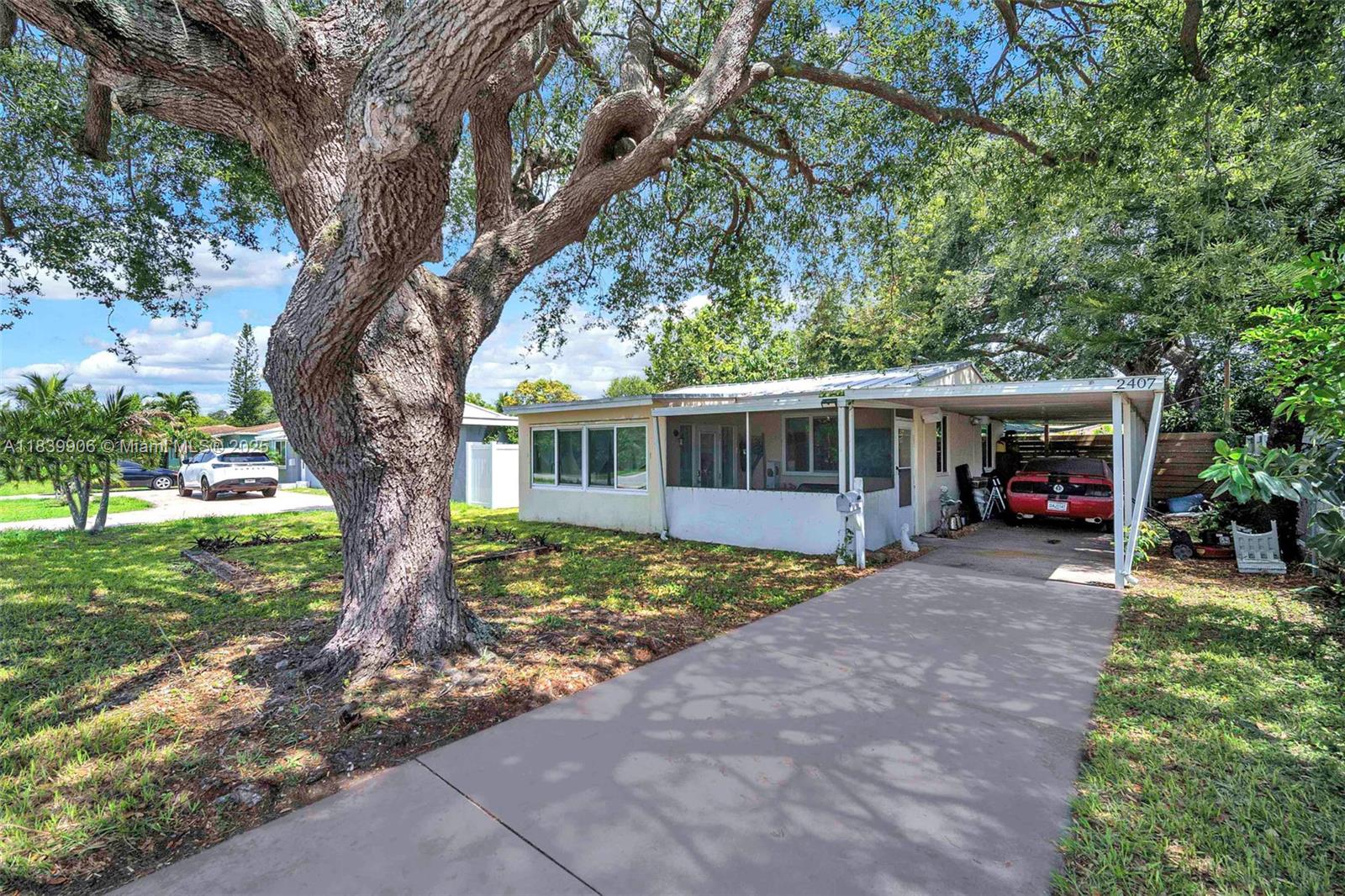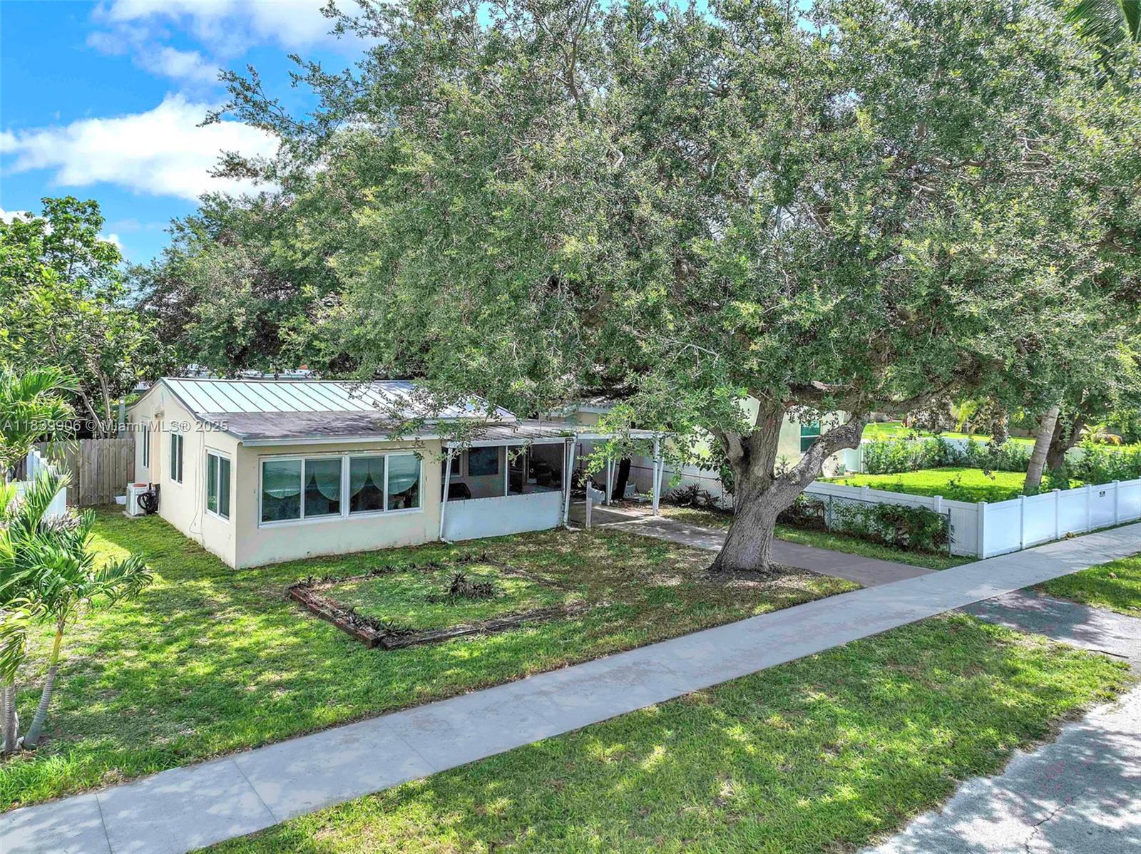 Welcome to this delightful single-family home perfectly situated in one of the most convenient and sought-after areas of South Florida! Located just 10 minutes from the beach, Dania Pointe, Downtown Hollywood, Fort Lauderdale Airport, and I-95, this home offers the ideal blend of comfort and accessibility. Nestled on a generous nearly 7,000 square foot lot, the property features a newer metal roof (2020) and hurricane impact windows and doors for peace of mind and energy efficiency. Inside, you’ll find 2 cozy bedrooms, 1 full bathroom, and a spacious laundry room that adds practicality and storage space. The oversized lot offers endless possibilities—whether you dream of expanding, adding a pool, or creating your perfect backyard oasis. Sunroom/Laundry Room not included in sq footage.