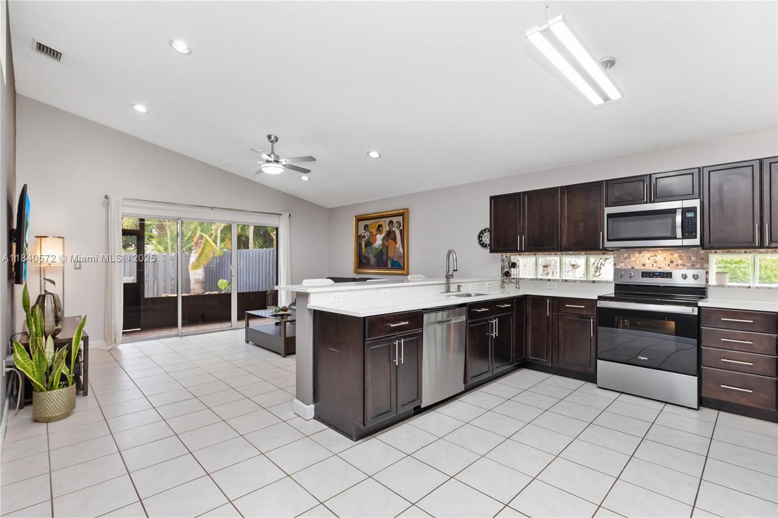 **Price Reduction** Motivated Seller** Welcome to this beautiful 3-bedroom, 2-bath single story home offering 1,731 square feet of comfortable and functional living space. The remodeled kitchen features ample cabinetry and brand new stainless steel appliances, perfect for everyday cooking and entertaining. The spacious family room flows seamlessly to a screened patio and fully fenced backyard, ideal for relaxing, hosting guests, or letting pets play safely. The primary suite boasts a stunning, updated bathroom, adding a touch of luxury to your daily routine. Recent improvements include a new water heater, newer AC unit, and a roof that’s just 2 years old, providing added peace of mind. Conveniently located near schools, parks, shopping, and major highways. This Miramar home is a true gem.
