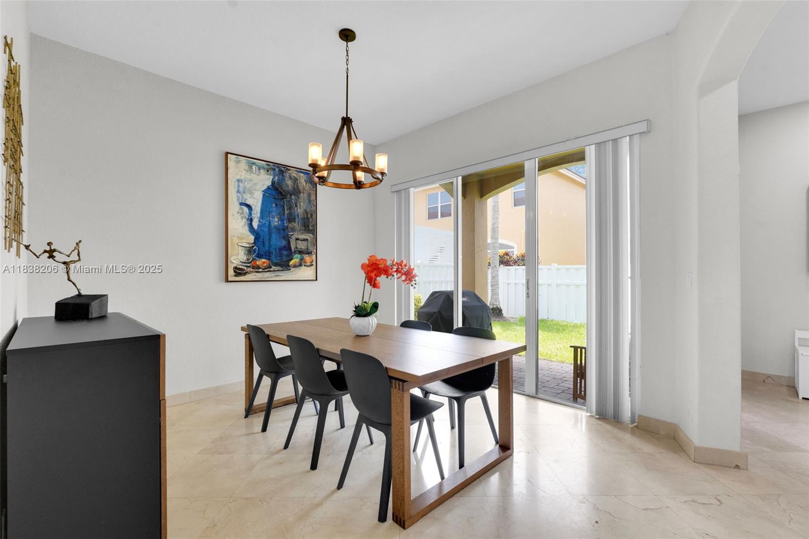Nestled in the gated community of Maple Ridge, this elegant two-story residence offers 3 expansive bedrooms, 2.5 baths, a dedicated home office, spacious loft, and refined formal living and dining rooms plus a bright and open family room. The gourmet kitchen features a cooking island, sleek stainless steel appliances, and modern cabinetry. Thoughtfully designed with travertine flooring on the main level and laminate flooring upstairs, the home includes a spacious primary suite with dual vanities, soaking tub, and separate shower. Enjoy a covered patio, large fenced-in backyard, and 2-car garage with private driveway. The family orientated gated community features a pool and playground. Ideally situated just minutes from the expressway; perfectly positioned between Miami and Ft Lauderdale.