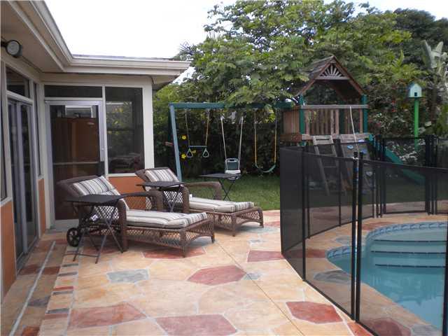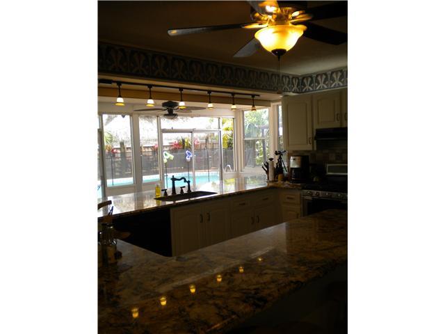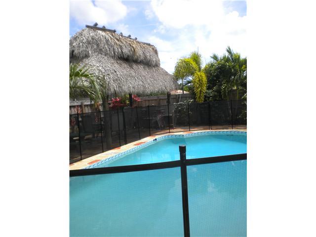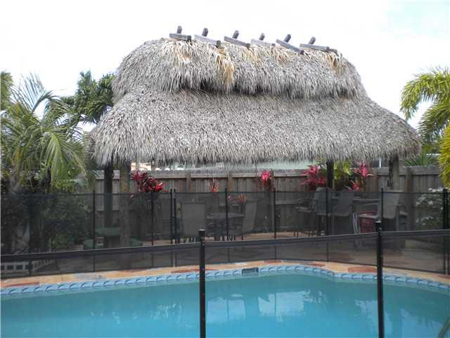 Hollywood Hills GEM- Current Owners purchased '09 & have done extensive upgrades; Spectacular amount of granite in kitchen area- was opened to enclosed Florida room with separate A/C unit (cuts energy bill); H/E front loading w/d off of kitchen; Newer App liances: Fridge 1 yr old/ gas stove-new, all stainless;Custom ceiling fans throughout home and in Tiki hut, YES IT STAYS!! Wood fence encloses back and side yards.Grass area off of pool with play set(Stays);Coy/ Nature pond; Good size bedrooms/Tile floors