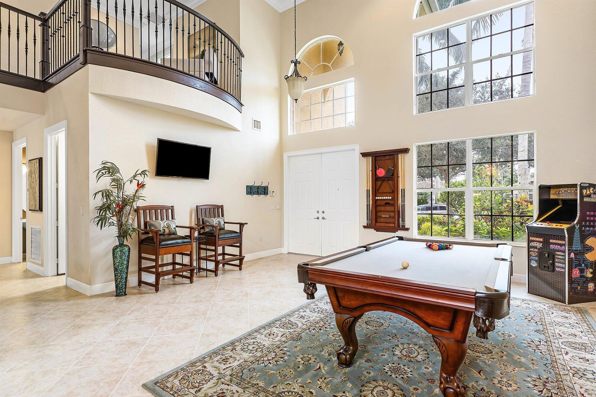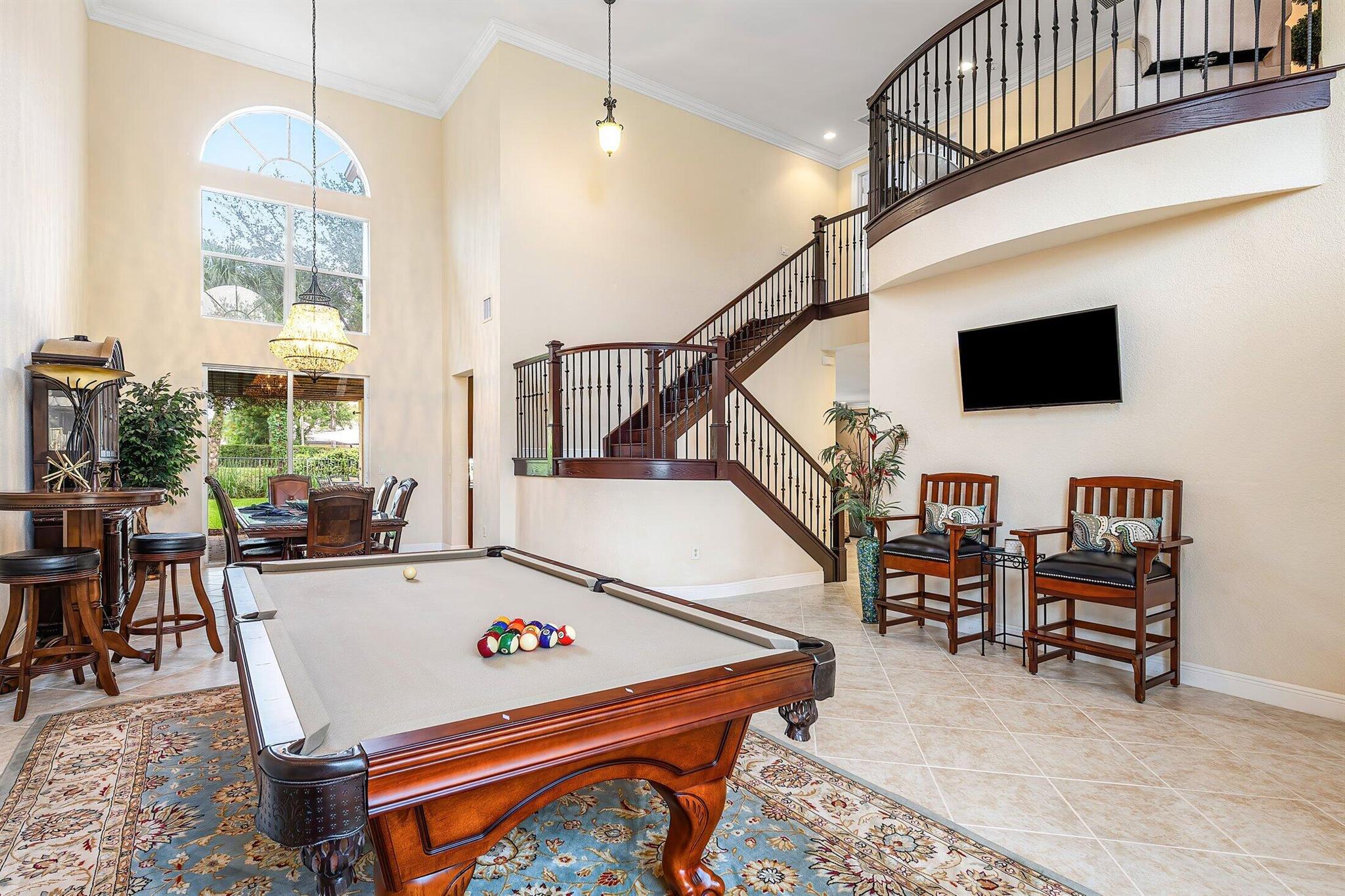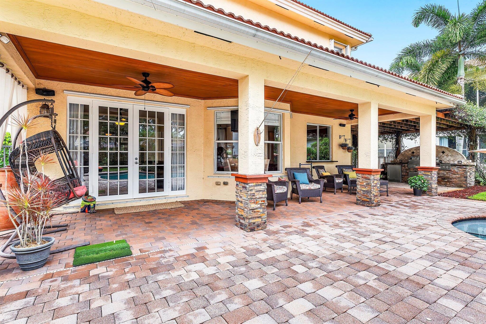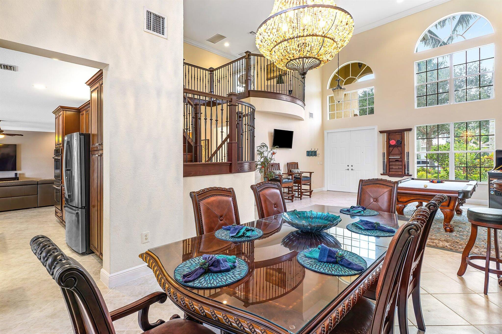 This Spectacular 5 Bedroom Home with Resort Style Backyard in Canyon Isles is Nestled on a Quiet Culdesac. Pulling Up to the Impressive Home Notice the Lush Landscaping that Surrounds You. Entering You will be Greeted by Incredible Two Story Volume Ceilings that Bring In Tons of Natural Light. The Chef's Kitchen Boasts 42'' Wood Cabinets, S.S. Appliances and a Walk-In Pantry. The 1st Floor Guest Room has a Hand Painted Mural that Creates a Perfect Playroom. French Doors from the Family Room Lead to Your Private Backyard Resort. The Covered Patio with Tongue & Groove Wood Ceiling and Stone Accents Overlooks a Custom Summer Kitchen with Pergola and a Massive Freeform Pool. There are Hand Scraped Wood Floors Throughout the Second Floor. .The Huge Primary Bedroom has a Large Sitting Area.