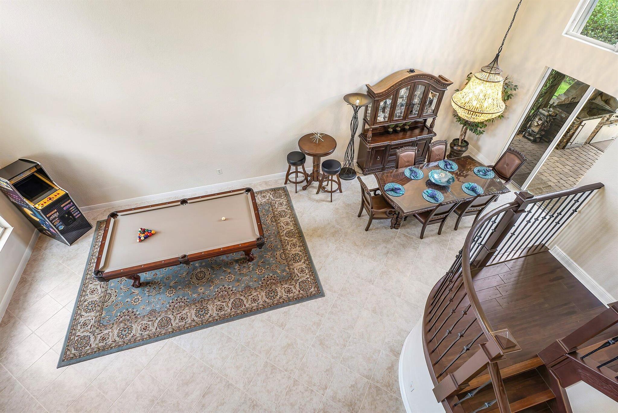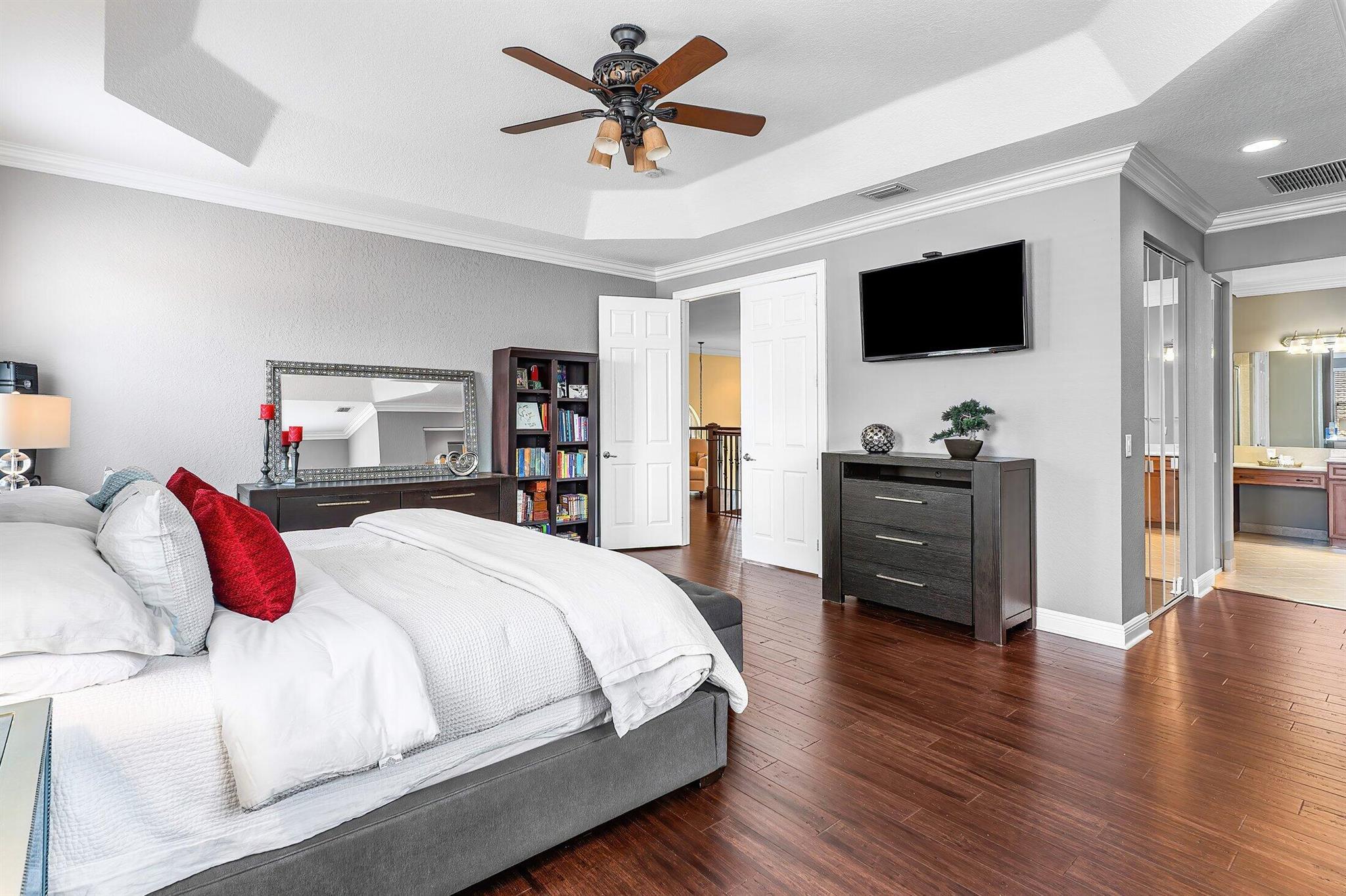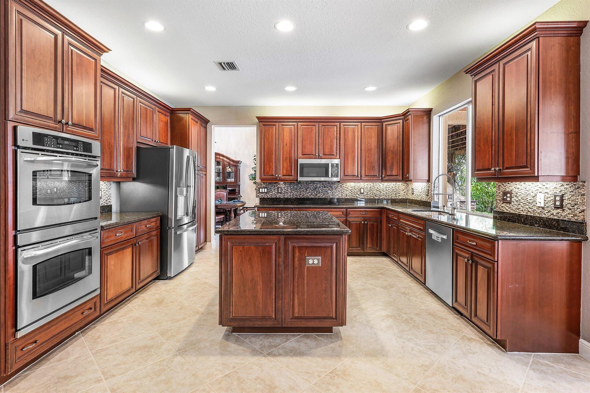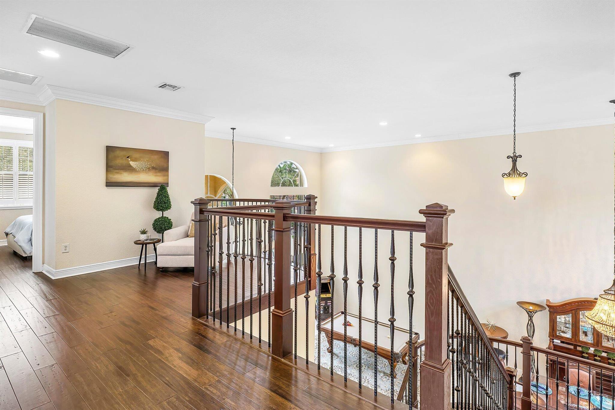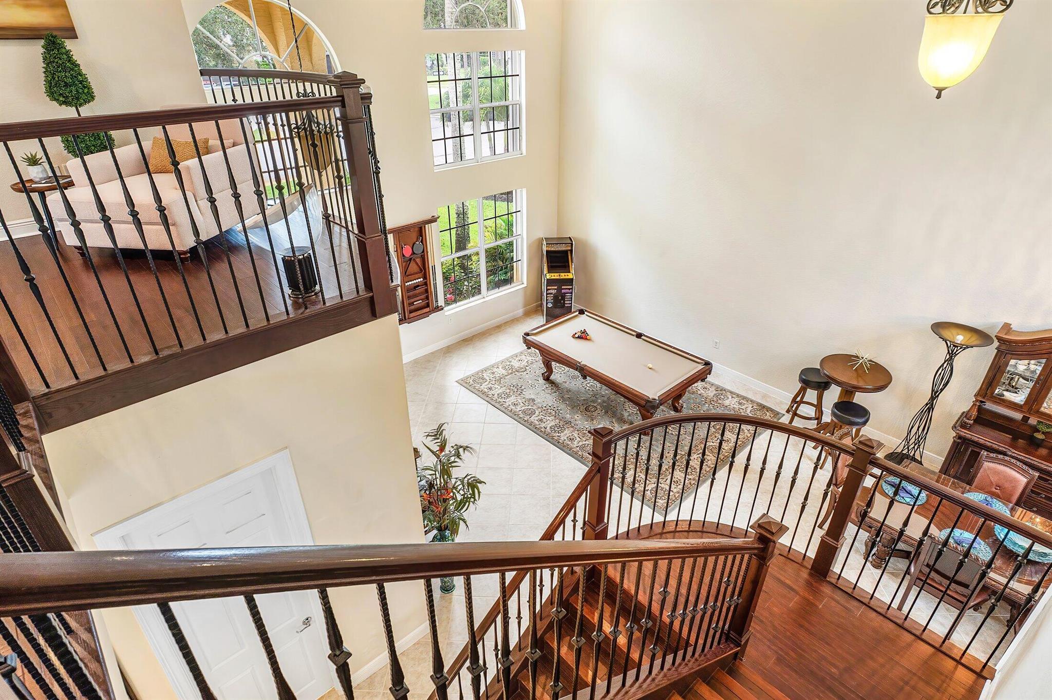 This Spectacular 5 Bedroom Home with Resort Style Backyard in Canyon Isles is Nestled on a Quiet Culdesac. Pulling Up to the Impressive Home Notice the Lush Landscaping that Surrounds You. Entering You will be Greeted by Incredible Two Story Volume Ceilings that Bring In Tons of Natural Light. The Chef's Kitchen Boasts 42'' Wood Cabinets, S.S. Appliances and a Walk-In Pantry. The 1st Floor Guest Room has a Hand Painted Mural that Creates a Perfect Playroom. French Doors from the Family Room Lead to Your Private Backyard Resort. The Covered Patio with Tongue & Groove Wood Ceiling and Stone Accents Overlooks a Custom Summer Kitchen with Pergola and a Massive Freeform Pool. There are Hand Scraped Wood Floors Throughout the Second Floor. .The Huge Primary Bedroom has a Large Sitting Area.