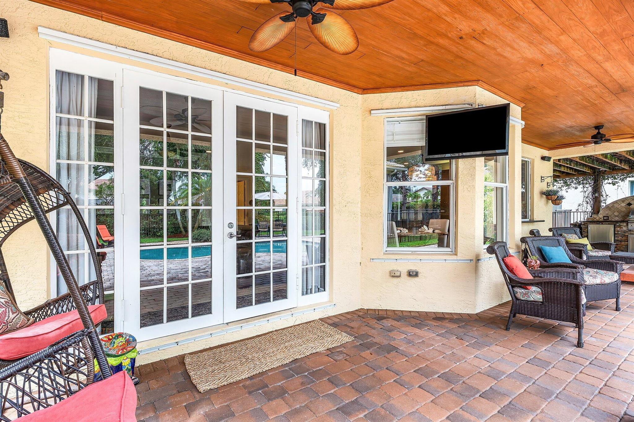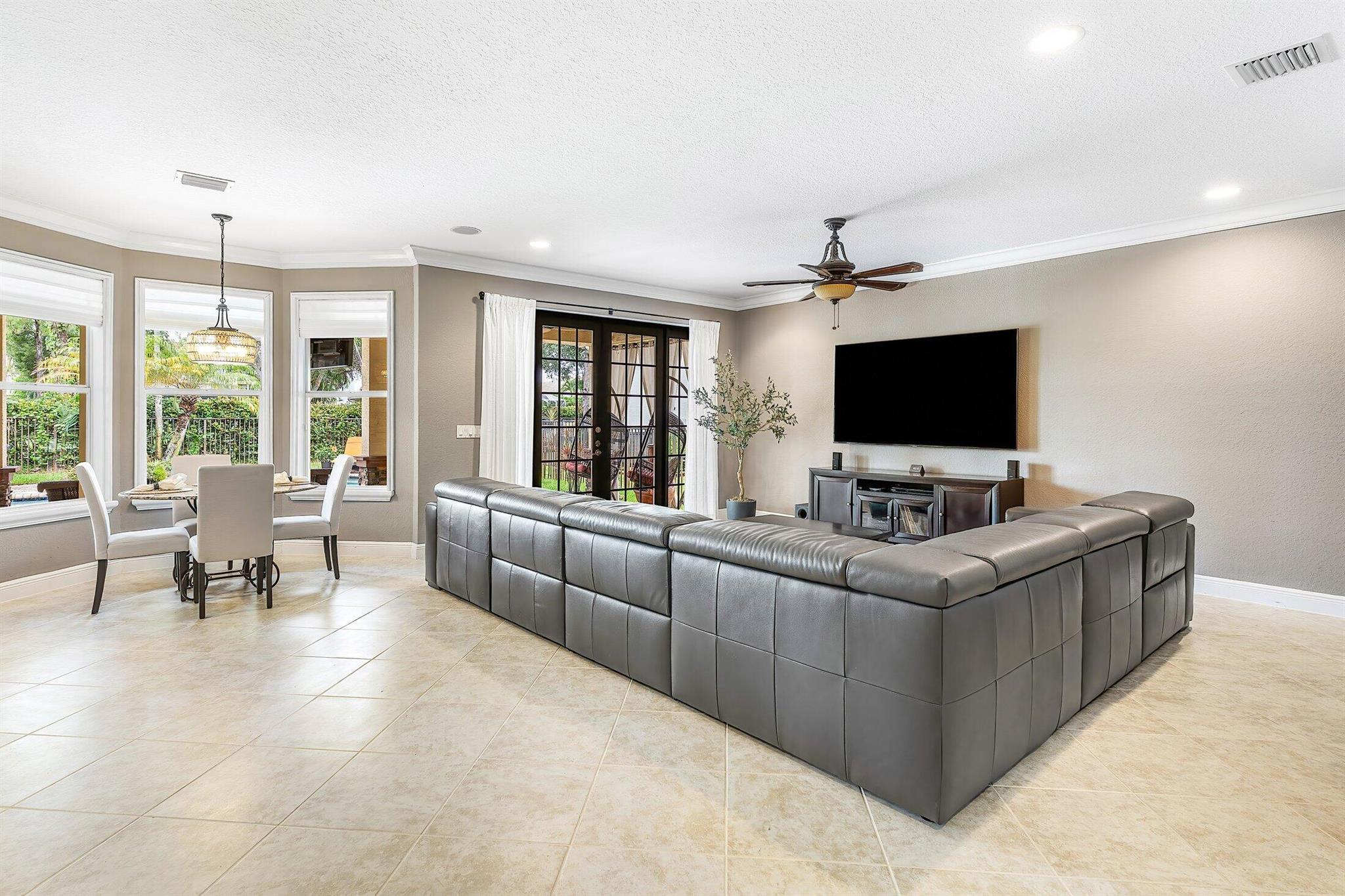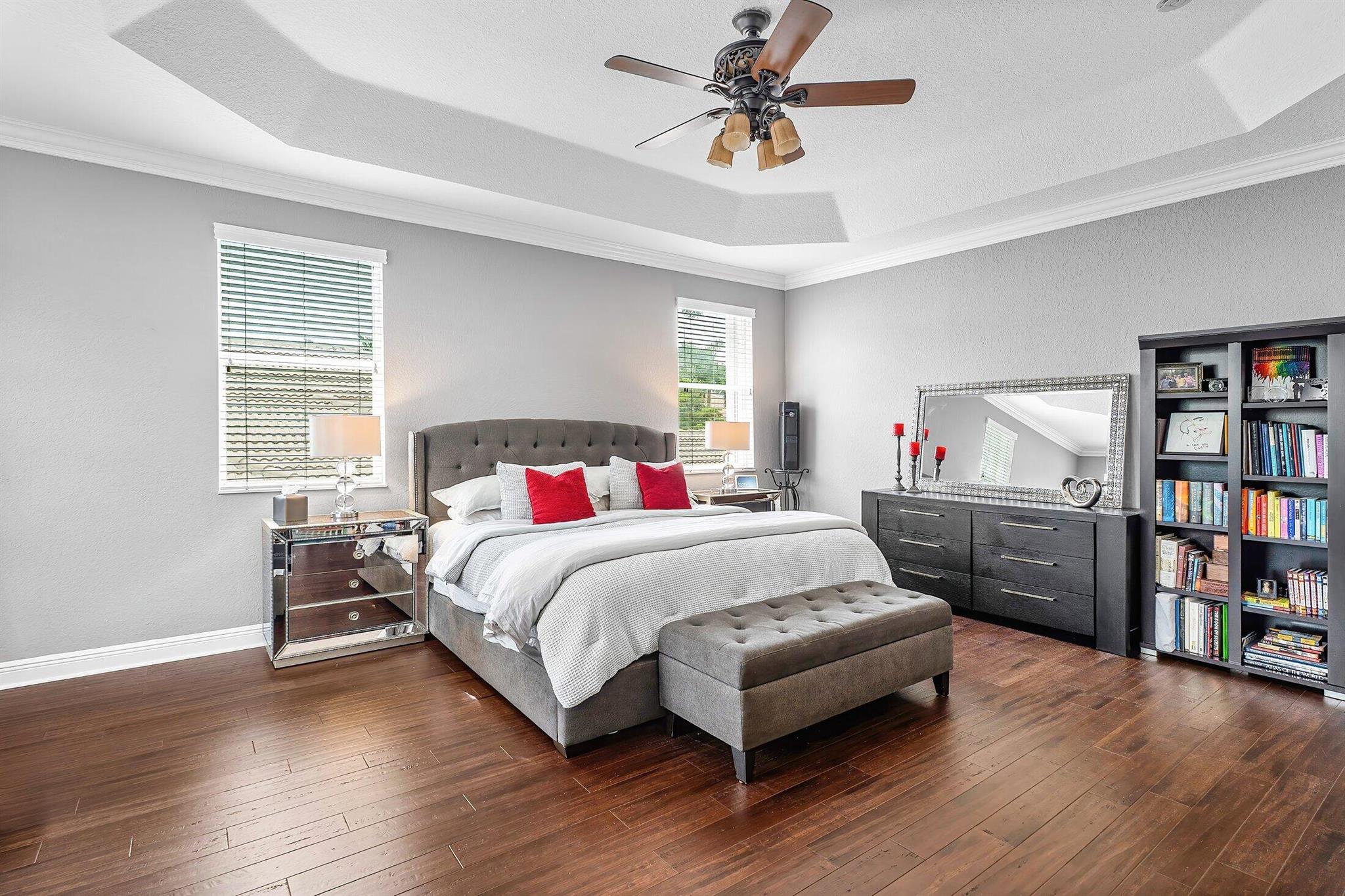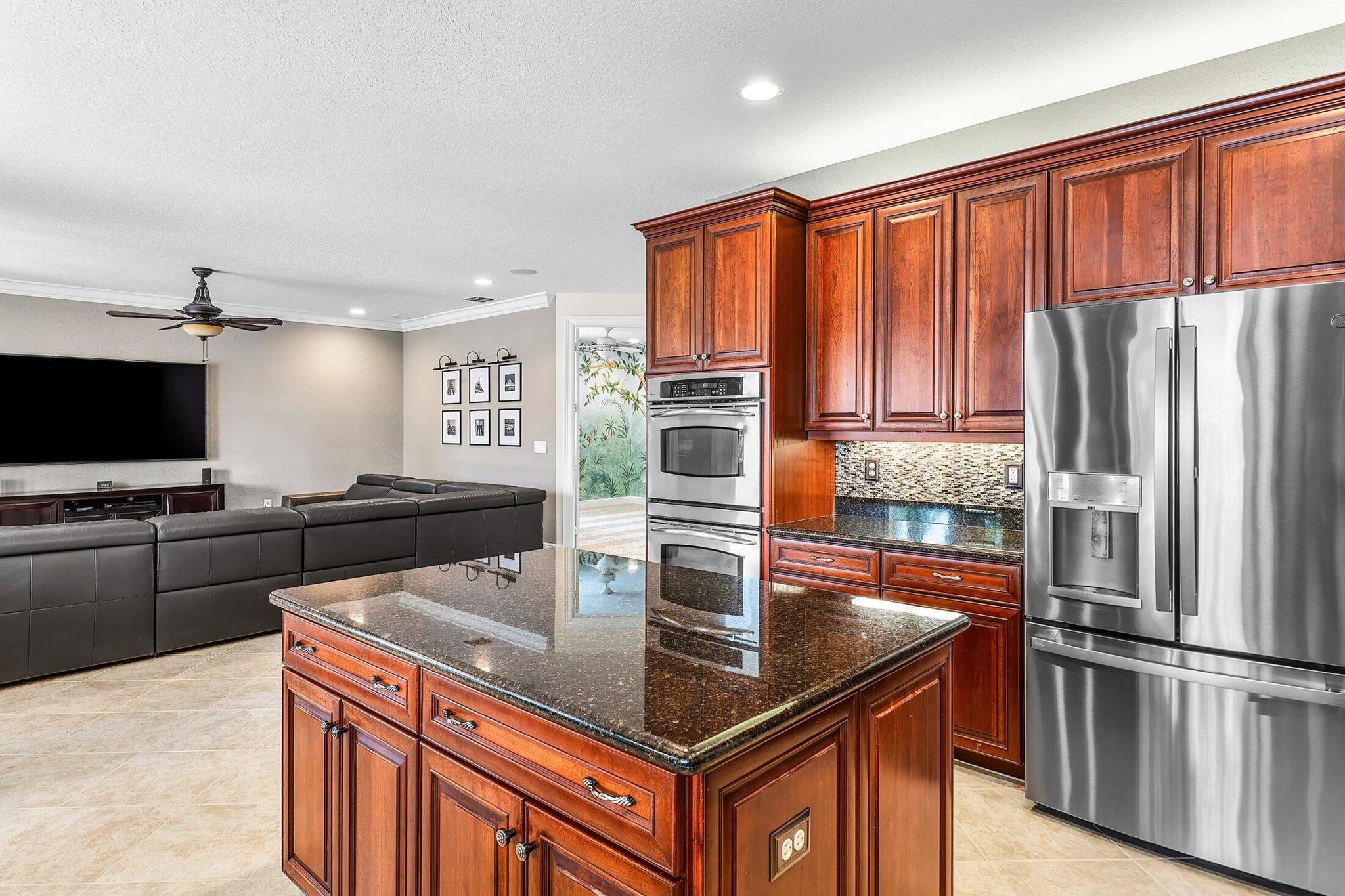 This Spectacular 5 Bedroom Home with Resort Style Backyard in Canyon Isles is Nestled on a Quiet Culdesac. Pulling Up to the Impressive Home Notice the Lush Landscaping that Surrounds You. Entering You will be Greeted by Incredible Two Story Volume Ceilings that Bring In Tons of Natural Light. The Chef's Kitchen Boasts 42'' Wood Cabinets, S.S. Appliances and a Walk-In Pantry. The 1st Floor Guest Room has a Hand Painted Mural that Creates a Perfect Playroom. French Doors from the Family Room Lead to Your Private Backyard Resort. The Covered Patio with Tongue & Groove Wood Ceiling and Stone Accents Overlooks a Custom Summer Kitchen with Pergola and a Massive Freeform Pool. There are Hand Scraped Wood Floors Throughout the Second Floor. .The Huge Primary Bedroom has a Large Sitting Area.