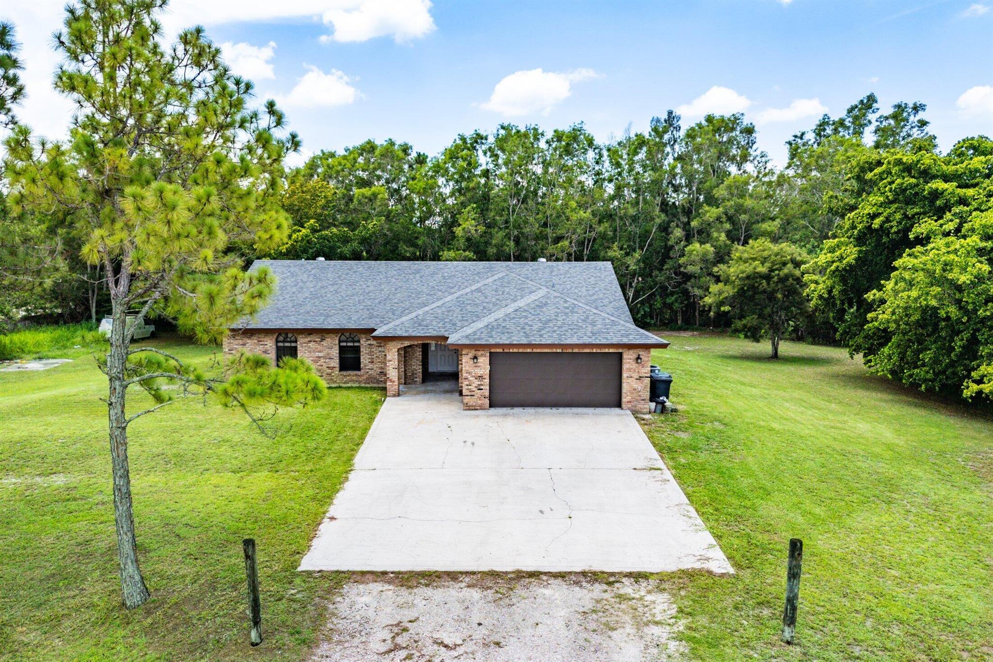 COUNTRY-STYLE, LIVING IN A RICHLY DEVOLOPING, NO H.O.A., AGRICULTURAL, EQUESTRIAN FRIENDLY COMMUNITY.BEAUTIFULLY CRAFTED 3 BEDROOM 2 BATHROOM HOME, QUALITY CONSTRUCTION BUILT WITH DURABLE CBS, THIS CUSTOM HOME COMBINES THE STRENGTH AND CHARM YOU WILL CRAVE. EXPERIENCE A UNIQUE CHICAGO BRICK FACADE AND FIRE PIT, ADDING A VINTAGE CHARACTER AND CURB APPEAL, BLENDED WITH CLASSIC WARMTH. LESS THAN 5 YR OLD A/C - ROOF INSTALLED IN 2021 - UPGRADED DOUBLE SALT TANK WATER SOFTENER SYSTEM - BRAND NEW HURRICANE GRADE, REINFORCED GARAGE DOOR/PRIMARY BATH JUST RENOVATED - NEWLY INSTALLED WOOD WALL PLANK DESIGN IN LIVING AREA