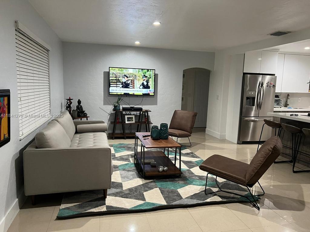 Beautiful neighborhood 2beds/1bath in desirable Miami Springs area. Family room. Completed renovated. New Kitchen w/ granite counter tops and Stainless Steel appliances . Central a/c. Ceramic floors. Large new wood fenced back yard w/ lots of space to build a pool. New roof and impact windows.