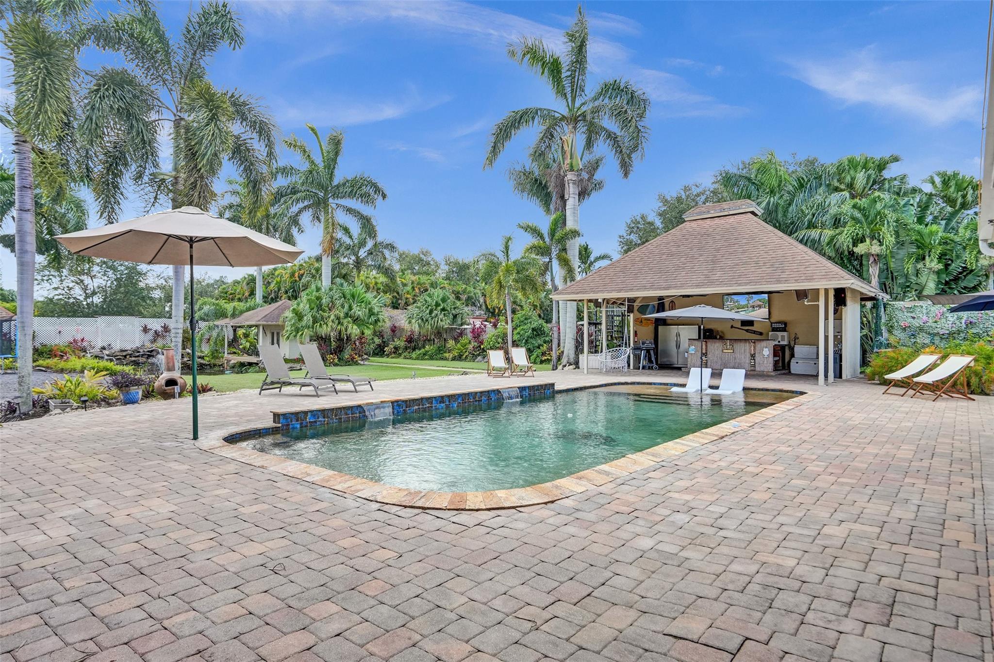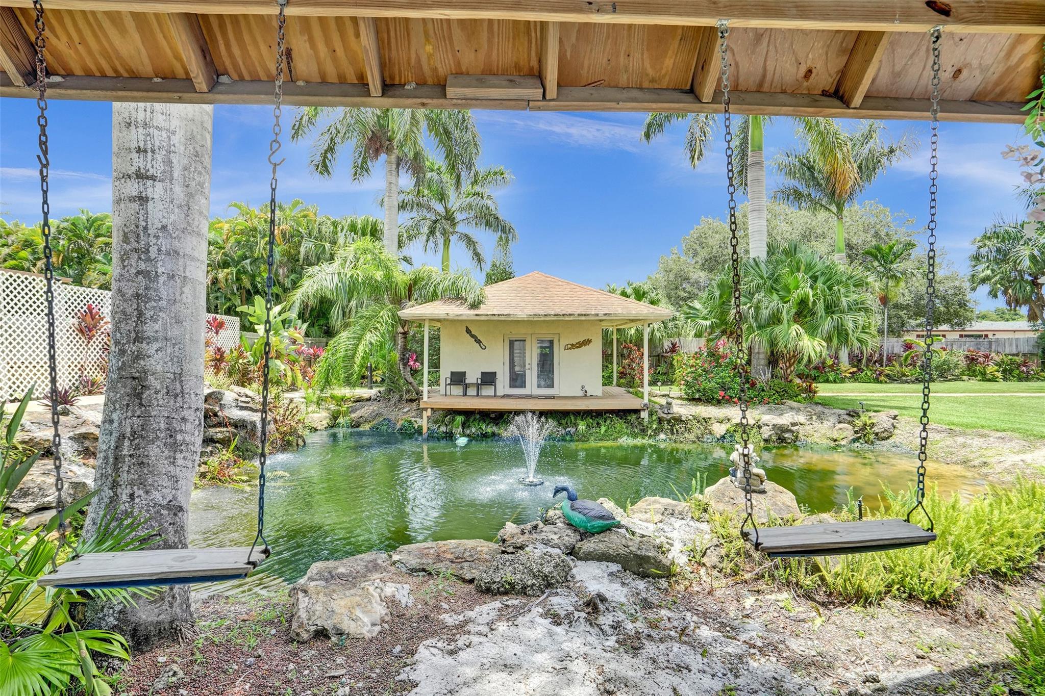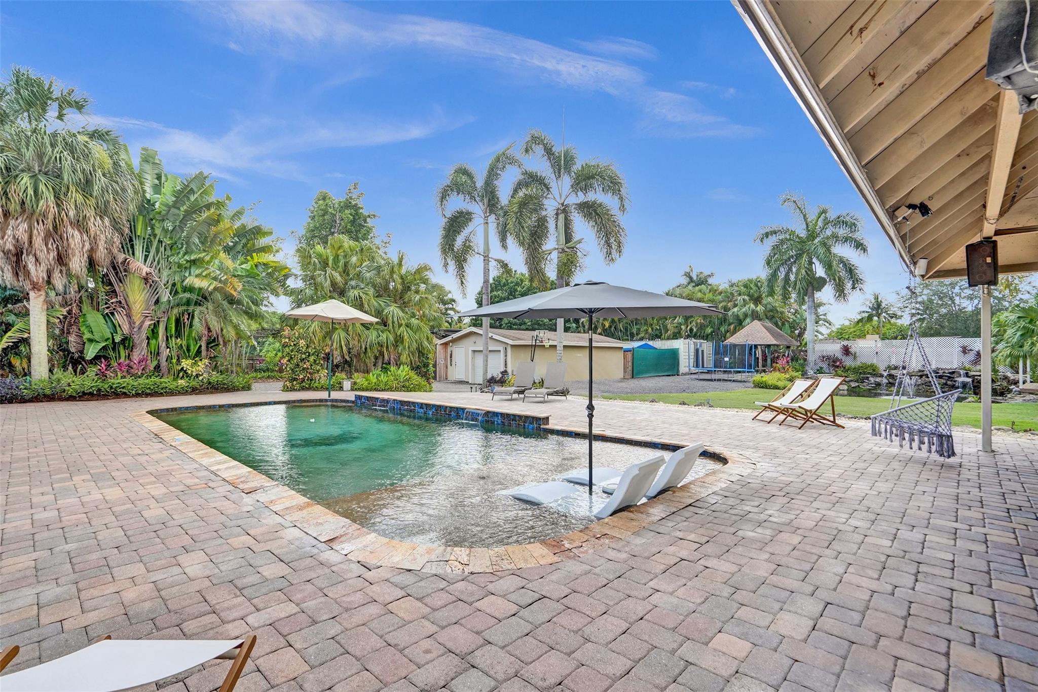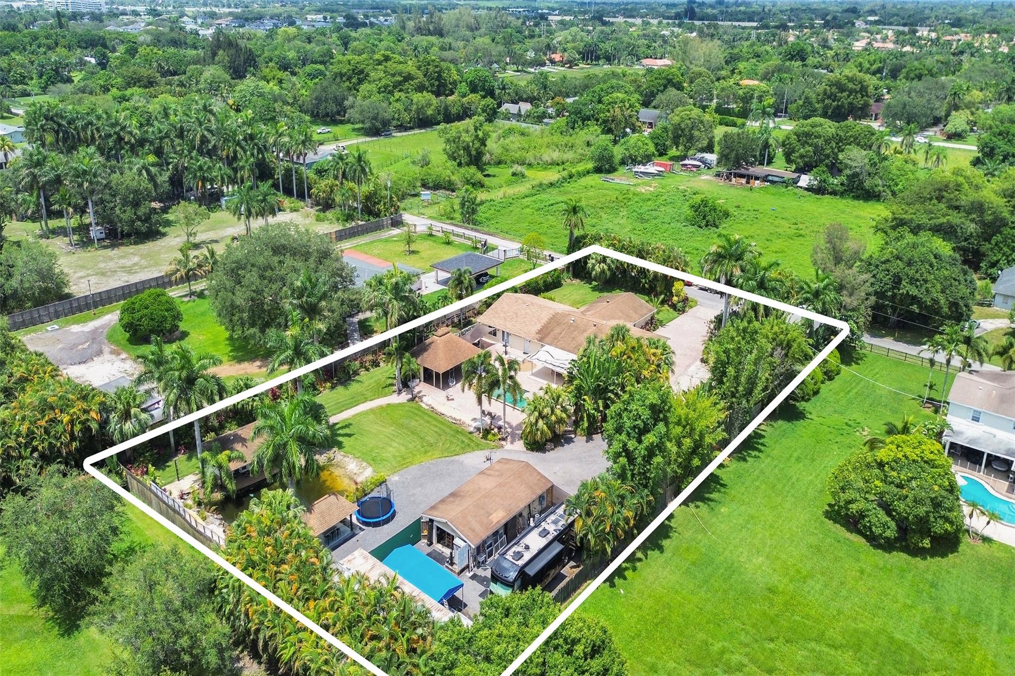 This lushly landscaped 1.13 acre estate is perfect for professional and personal pursuits. This single-story home has the ideal layout for multigenerational living with 2 expansive suites in separate wings of the home. Enjoy gorgeous tropical sunsets from the heated pool or your master suite. This home offers countless options with 2 outbuildings, creating a detached guest bedroom, home office or playroom. There is a 2nd secured driveway and additional 2 car garage workshop, ideal for business owners, contractors, car enthusiasts, or anyone seeking to work from home, however wants to keep the two separate. The primary house features 5 large bedrooms, 5 full baths. The entirety of the estate is securely fenced and offers ample parking for trucks, boats, RVs, equipment, etc. Minutes to I-75