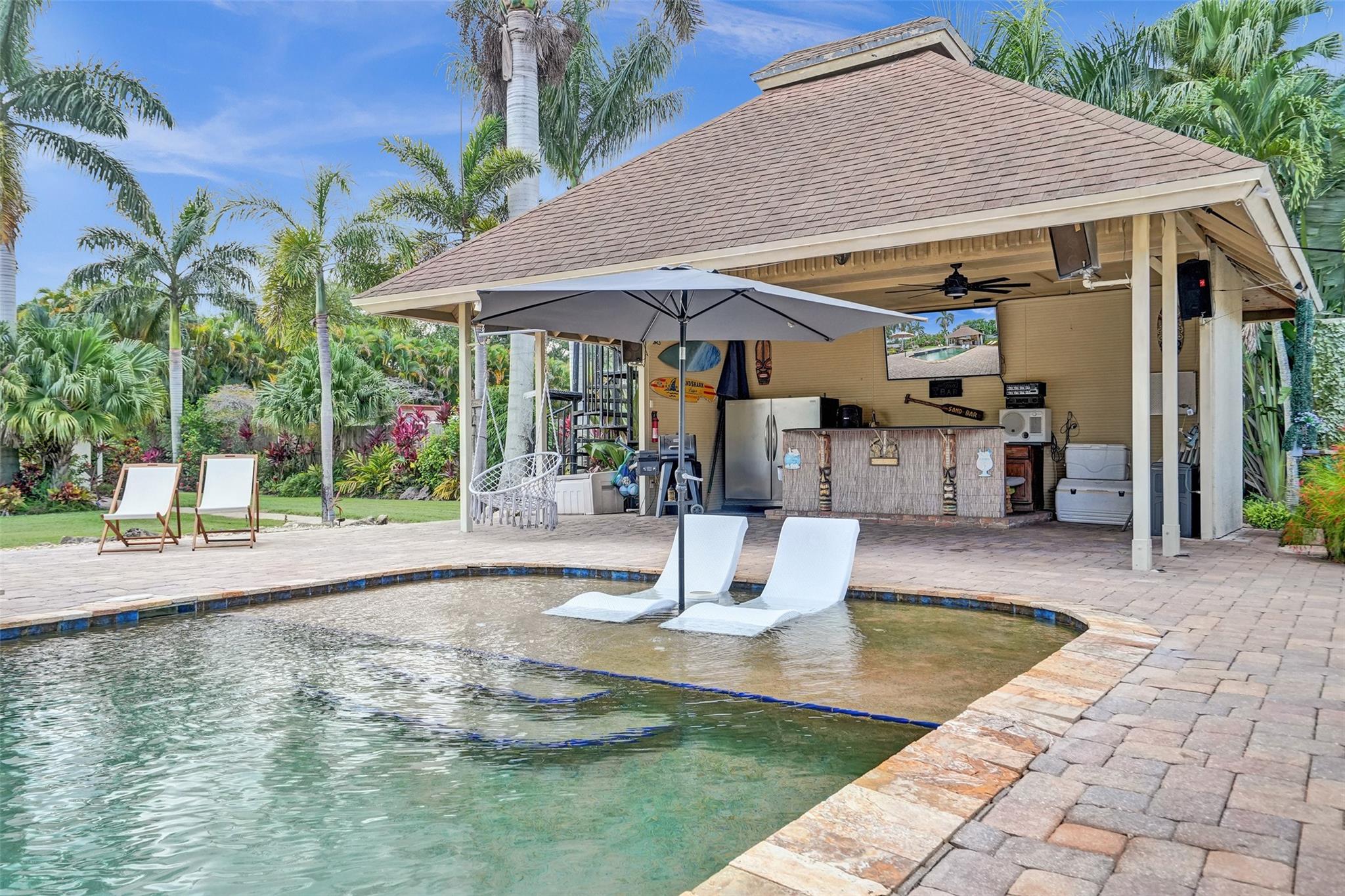 Rare opportunity in prestigious Southwest Ranches. Every inch of this lushly landscaped 1.13 acre estate is utilized, with still endless potential for personal and professional pursuits. This is an outstanding option for contractors, creatives or anyone seeking that work from home lifestyle or expansive multigenerational living. The main house features 5 large bedrooms, 5 full baths. Countless options abound with 2 additional buildings, creating guest room, office or workshop. Enjoy a heated pool and gorgeous tropical sunsets steps from 1 of 2 primary suites. Stroll further west to feed the fish in the “Koi pond” outside the casita. The entirety of the estate is securely fenced. A 2nd hard surface driveway leads to a 20x40 workshop with ample parking for cars, trucks, boats, RVs, etc.