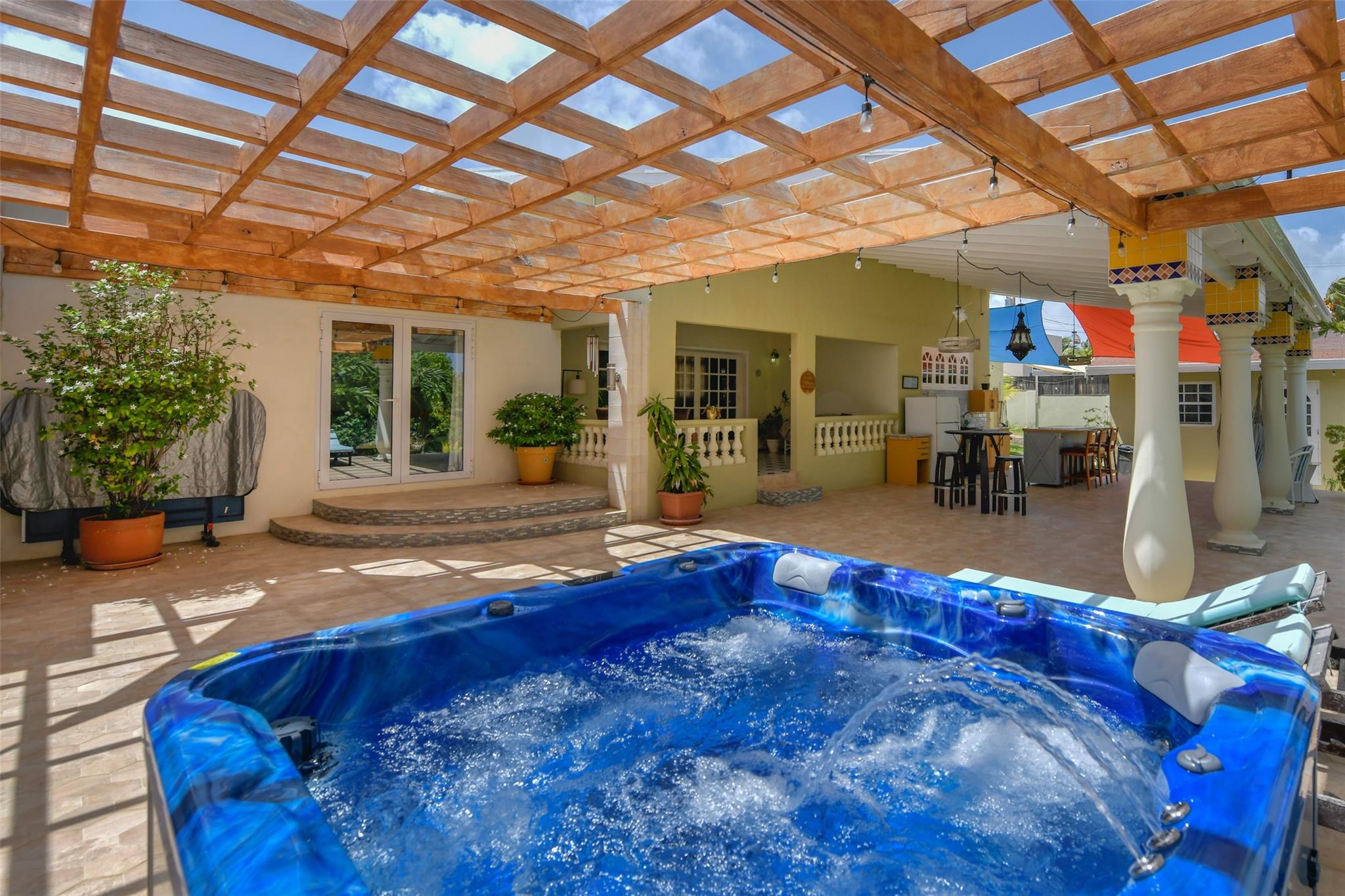 Welcome to Bringamosa 7-B, a charming family home nestled in Aruba’s peaceful countryside, just 20 minutes from the beaches of Eagle and Palm Beach. This well-maintained property offers 3 bedrooms, 2 bathrooms, an open-concept living area, and a spacious kitchen. A big plus is the fact that this property has SOLAR PANELS thus significantly lowering the energy bill. Enjoy the island breeze from your patio, surrounded by mature tropical landscaping. There is also a freestanding 1-bedroom apartment—perfect for visiting guests or generating income through Airbnb. The large lot provides space for expansion or a future pool. Located in a quiet residential area with easy access to main roads, shops, and schools, this property is ideal as a family home, vacation getaway, or investment opportunity.