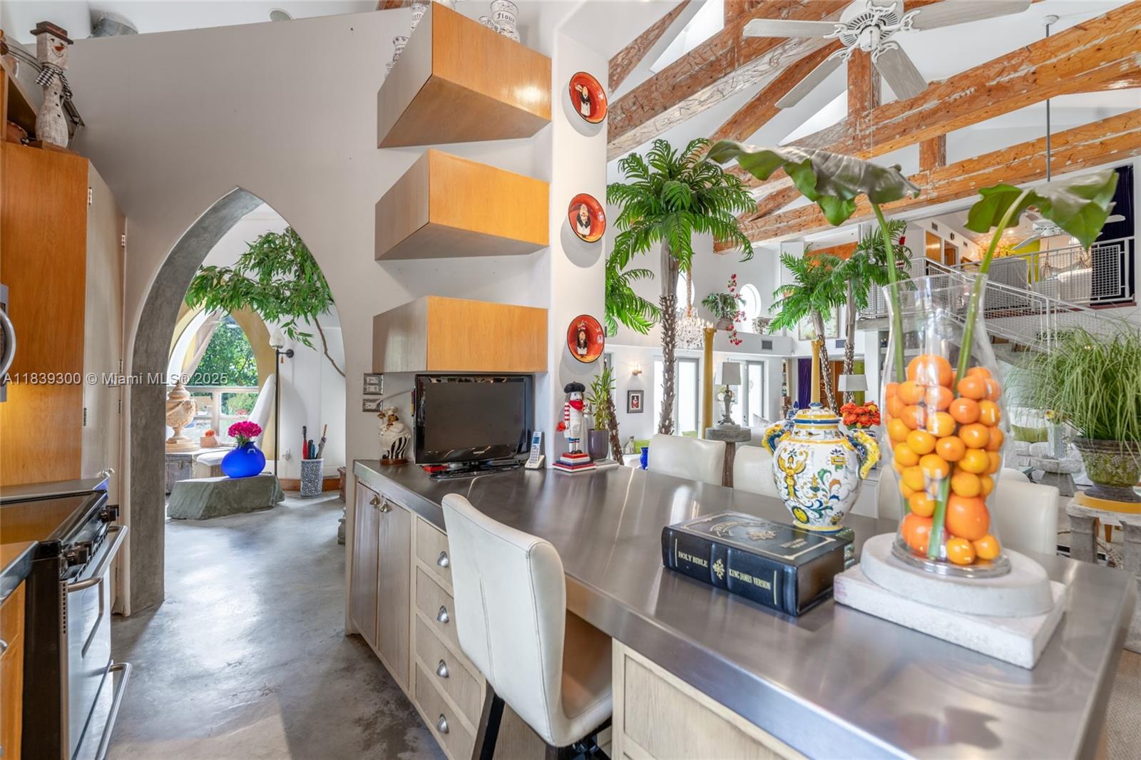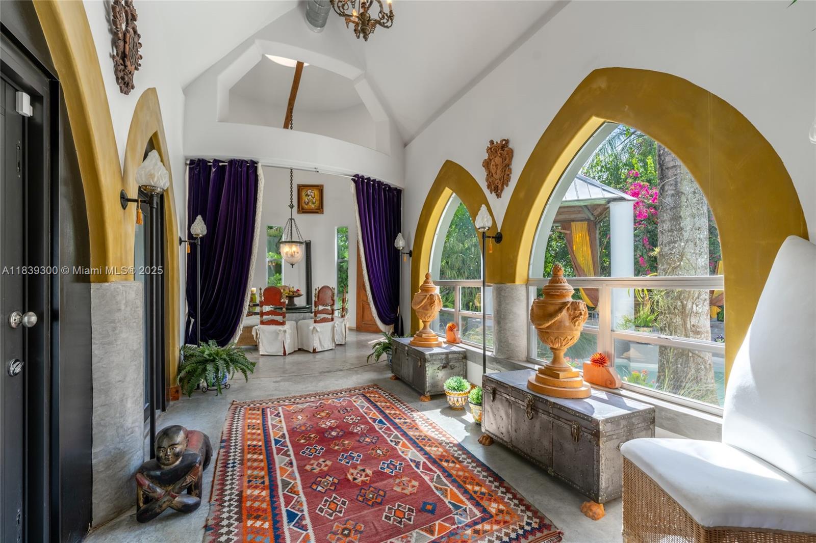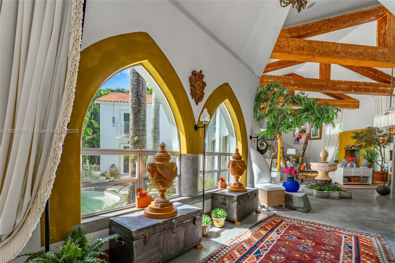 Nestled in the heart of South Miami, this Mediterranean gem is a true architectural masterpiece designed by architect Jose Anthony Enriquez. This one-of-a-kind home stands out in the community with its unique design and exquisite craftsmanship. Every door is handmade from wood, adding a touch of artisanal elegance. The grand vaulted ceilings are adorned with hand-stamped wood beam accents, evoking the grandeur of a majestic palace. The polished cement flooring throughout enhances the home's modern yet timeless appeal. This home is not just a place to live, but a work of art that exudes luxury and sophistication. The newly updated white exterior enhances curb appeal and highlights the home’s distinctive lines. Ideal as a private residence or a high-performing short-term rental investment.