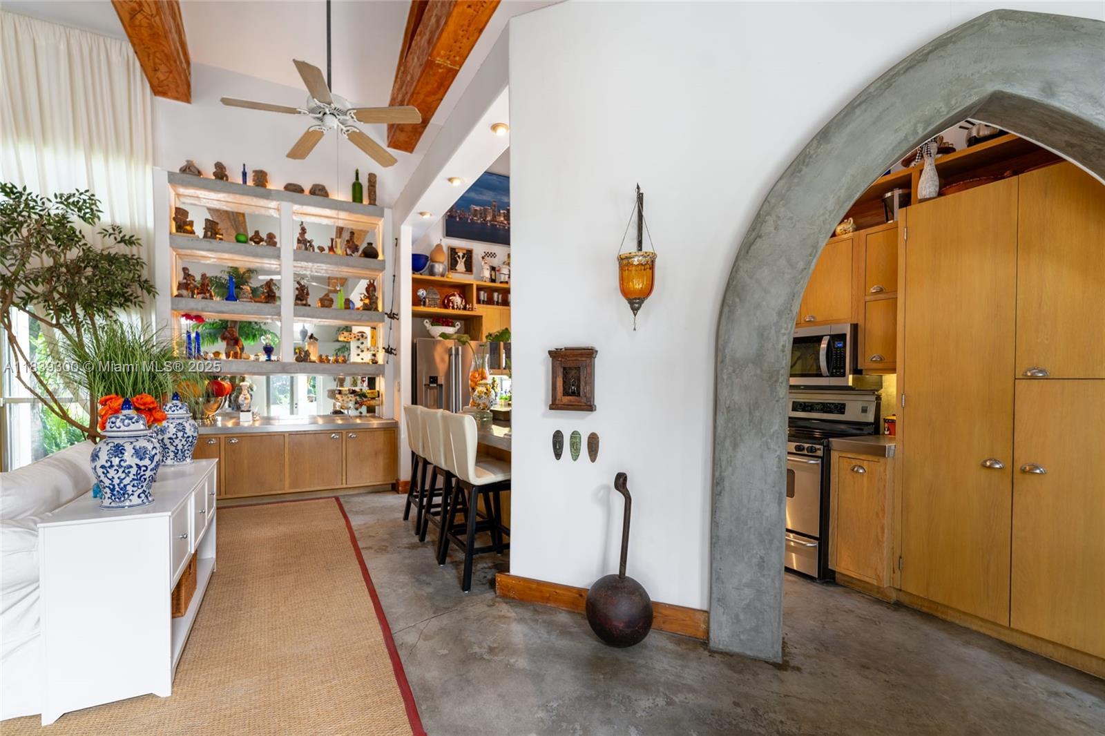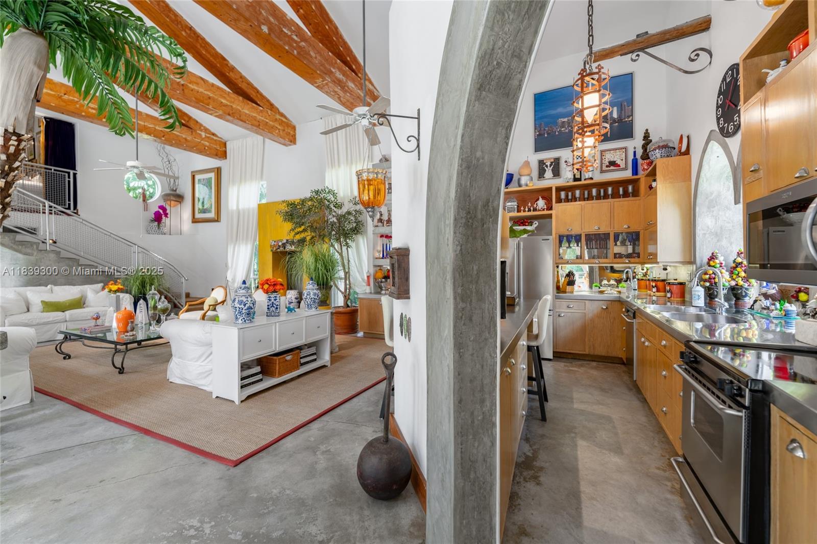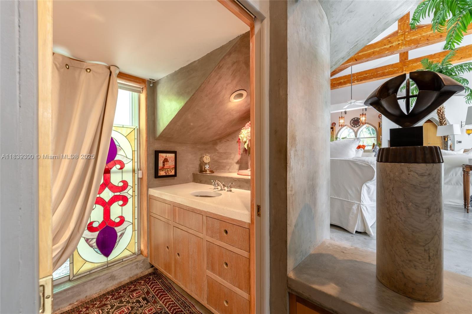 Nestled in the heart of South Miami, this Mediterranean gem is a true architectural masterpiece designed by architect Jose Anthony Enriquez. This one-of-a-kind home stands out in the community with its unique design and exquisite craftsmanship. Every door is handmade from wood, adding a touch of artisanal elegance. The grand vaulted ceilings are adorned with hand-stamped wood beam accents, evoking the grandeur of a majestic palace. The polished cement flooring throughout enhances the home's modern yet timeless appeal. This home is not just a place to live, but a work of art that exudes luxury and sophistication. The newly updated white exterior enhances curb appeal and highlights the home’s distinctive lines. Ideal as a private residence or a high-performing short-term rental investment.