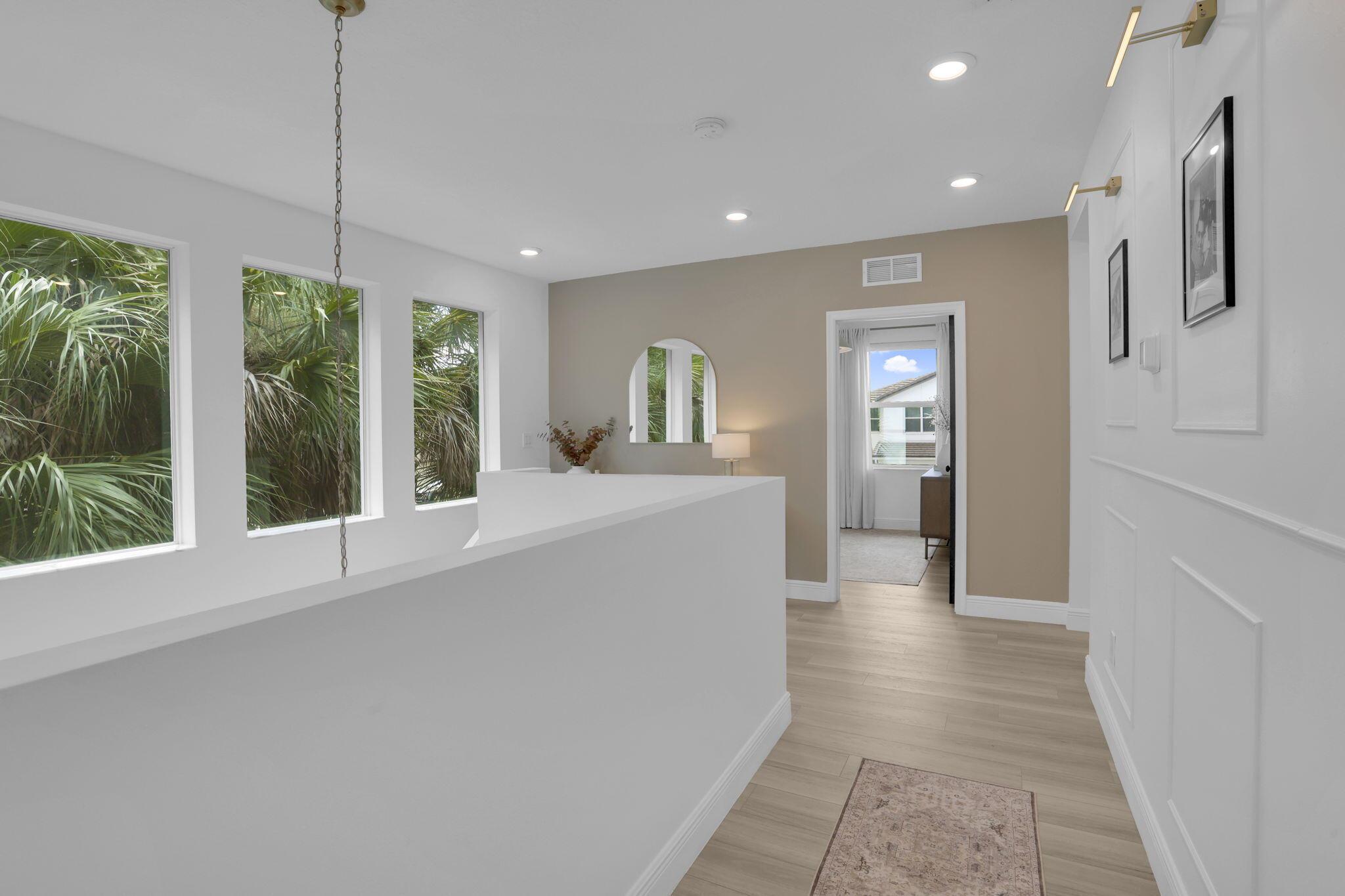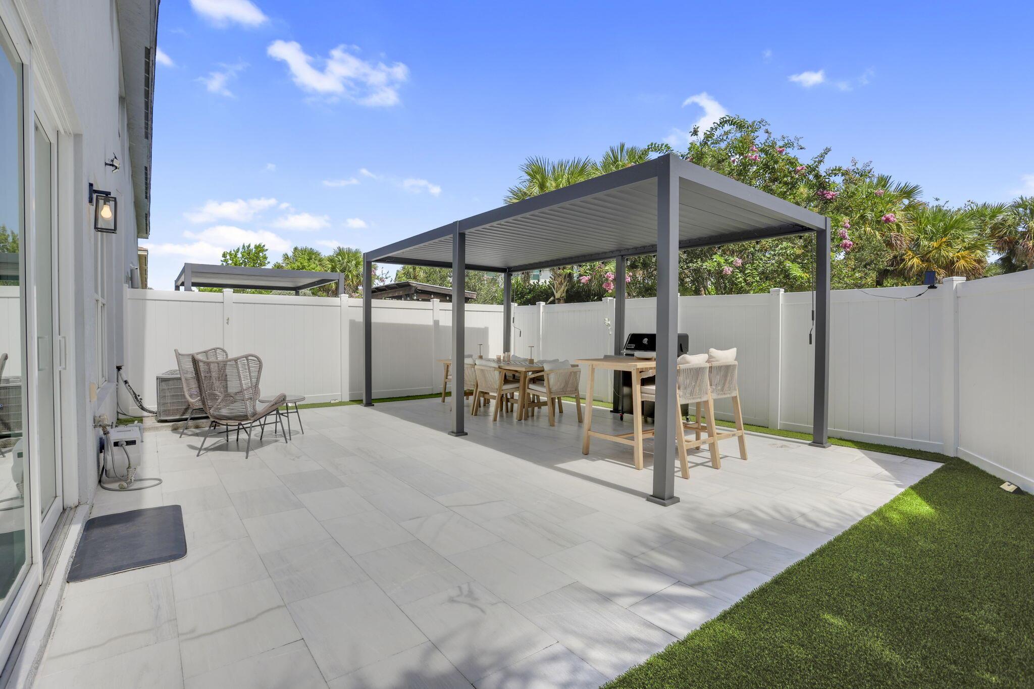 Step into refined living in this elegantly upgraded 3BR, 2.5BA corner townhome in the exclusive gated community of Veleiros. Abundant natural light enhances $50K+ in designer upgrades, including new appliances, a magnificent walk-in pantry, quartz countertops, wood cabinetry, electric blinds, luxury vinyl flooring, and bespoke accent walls. The primary suite features custom built-ins and a spa-inspired bath. A versatile bedroom offers a sleek integrated workspace without sacrificing comfort. Enjoy a reimagined laundry room, epoxy garage floor, hurricane protection. Entertain in your fenced-in backyard oasis with marble pavers, turf, and a solar-lit gazebo. Resort style amenities, low HOA, fitness center, pool, on-site management. BUYER'S AGENTS WELCOME!