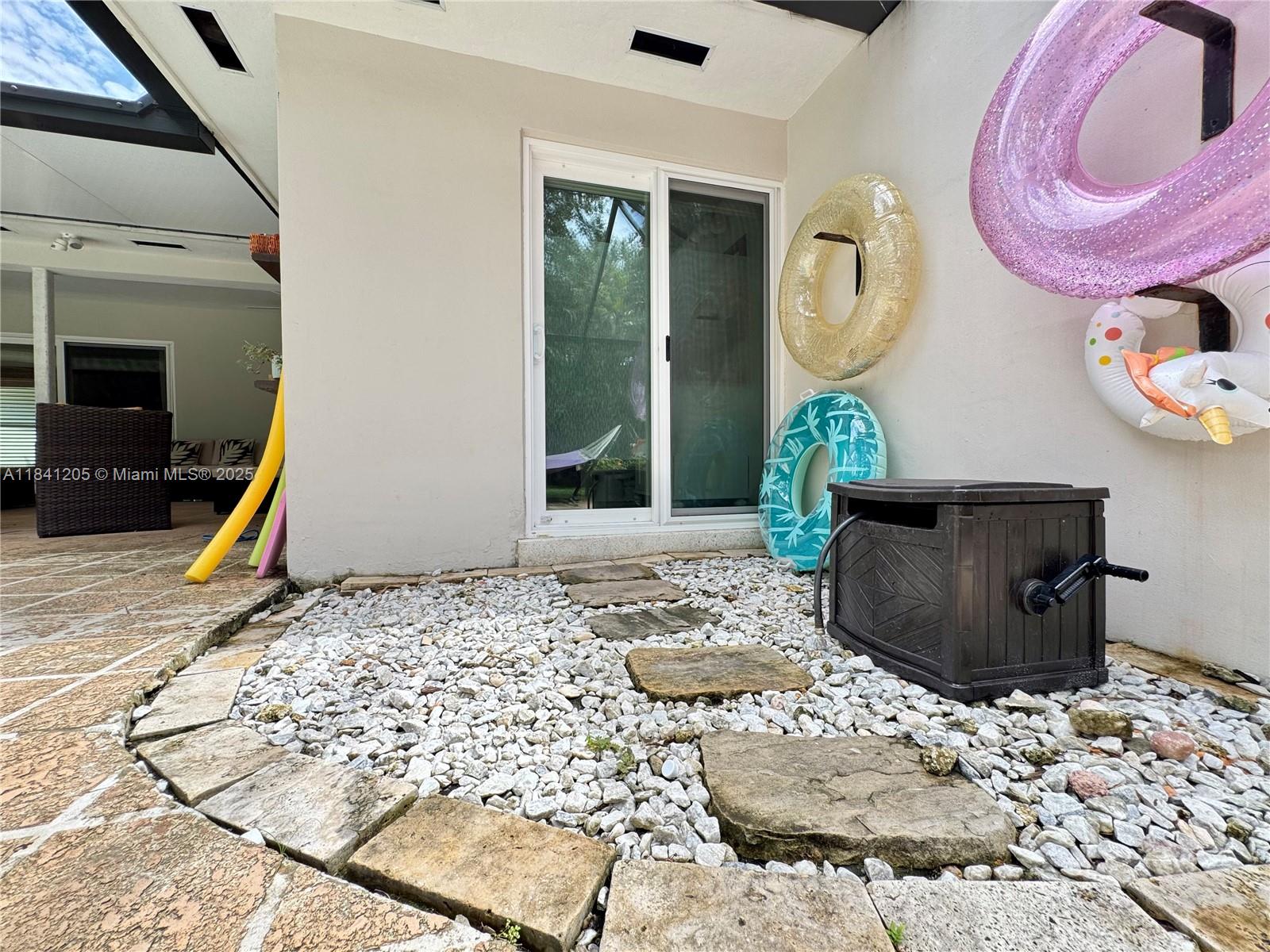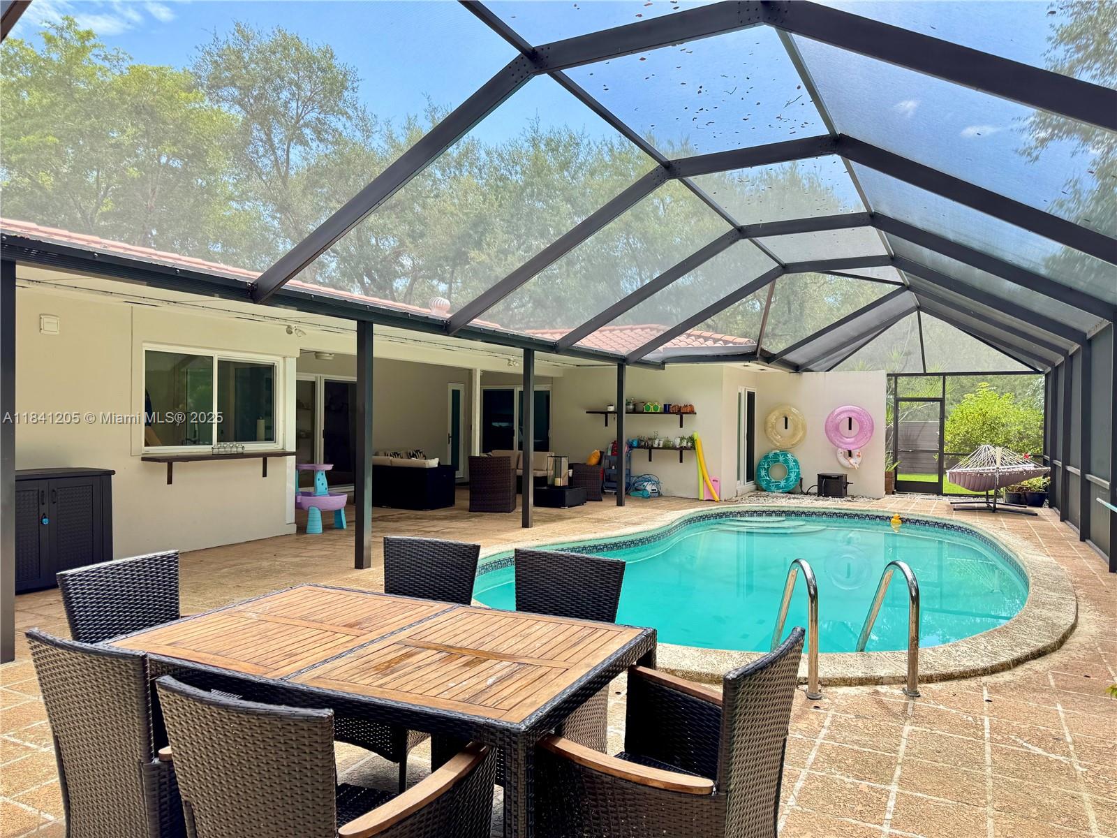 Beautiful home in Palmetto Bay by Old Cutler Road, can walk to the bay, Deering Estate, and restaurants. Active neighborhood (no mandatory HOA) has block parties and holiday events. Well-maintained house has new AC unit, updated electrical panel, custom front doors, plantation shutters, hurricane impact windows/doors, crown molding, ceramic floors, granite countertops, wood cabinets, stainless-steel appliances, and cabana bathrooms. Corner lot has new patio roof, pool with new screen enclosure, removable pool safety fence, sprinkler system, several mature oak trees, mango tree, and enclosed backyard. Brand-new EV charger. Layout has guestroom (with bathroom and walk-in closet) on one wing and three bedrooms (including master walk-in closet) and two bathrooms on the other.