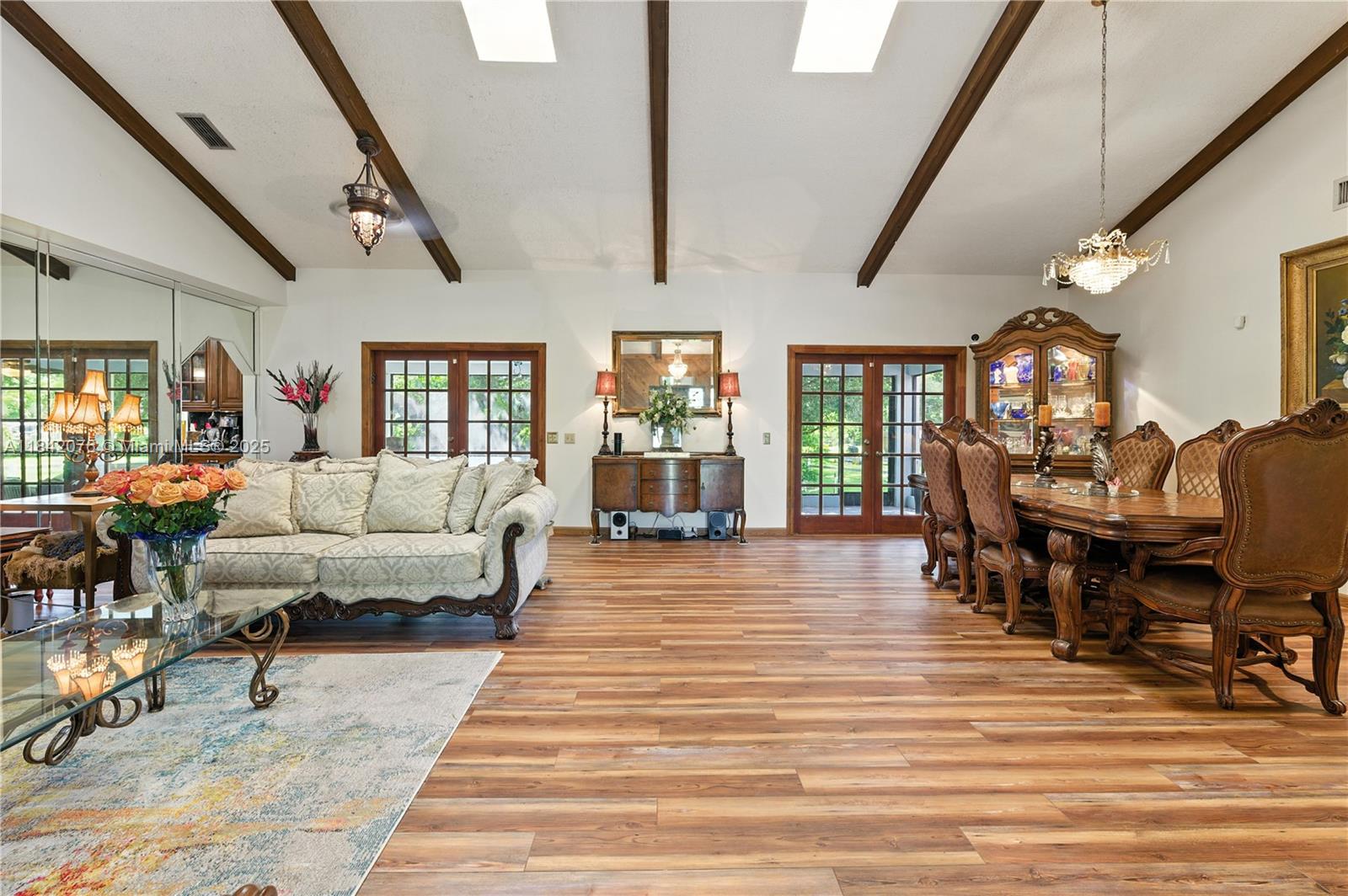 Welcome to this beautifully maintained 3-bedroom, 2-bathroom home offering the perfect blend of rustic charm and modern upgrades. Situated on a spacious lot in one of South Florida’s most desirable equestrian communities, this residence boasts vaulted, beamed ceilings and a classic brick wood-burning fireplace that creates an inviting, cottage style ambiance. Enjoy peace of mind with a new metal roof, impact windows and doors, and a tankless water heater for maximum efficiency. The primary suite features a fully renovated spa-inspired bathroom. With no HOA restrictions, you have the freedom to personalize your lifestyle. This .94-acre lot backs up to a natural preserve ensuring no rear neighbors! All major systems have been updated, leaving you free to move in and enjoy.