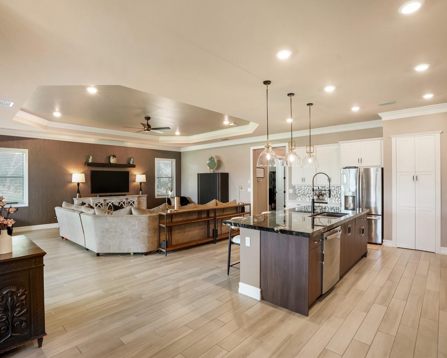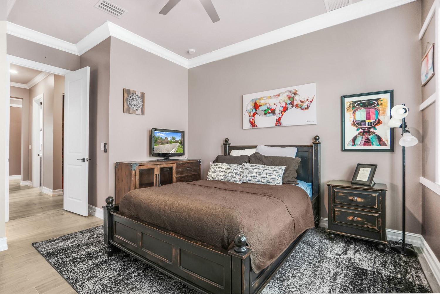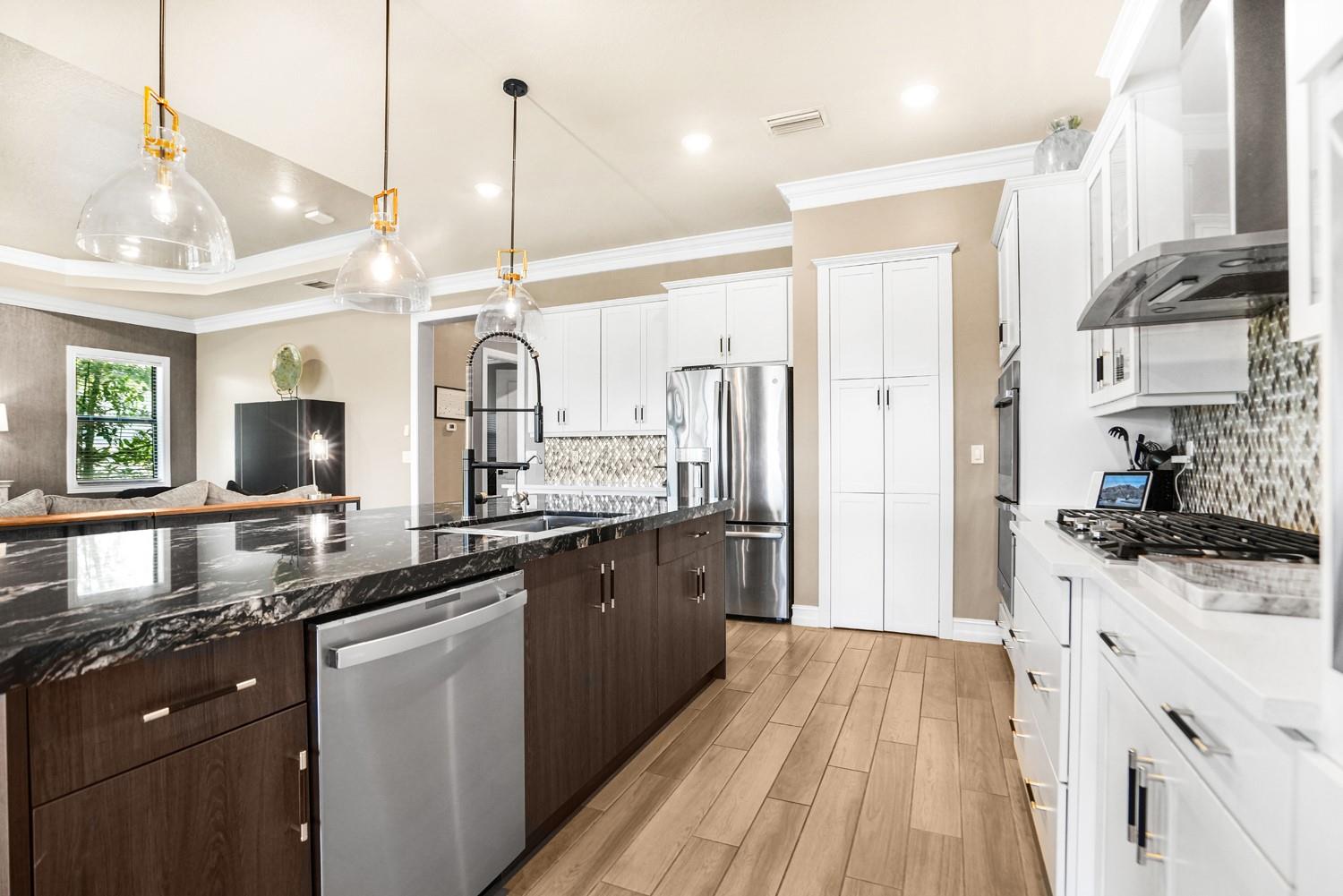 Beautifully UPGRADED home in desirable Palm Meadows! This meticulously maintained residence features a whole-house generator, gas stove, custom barn doors and cubbies in the laundry room, and a new kitchen island with granite, sink, faucet, and backsplash. All closets and pantry were redesigned by The Closet Factory. Interior has fresh paint, upgraded door and cabinet hardware, stylish wallpaper, and a rock accent wall in the bedroom. Bathrooms include new shower heads, barn-style glass doors, updated faucets, and a renovated guest bath. Enjoy a screened-in porch, new island lighting, ceiling fans, new washer/dryer, new AC unit, EV outlet in garage, and termite warranty. Move-in ready with thoughtful upgrades throughout!