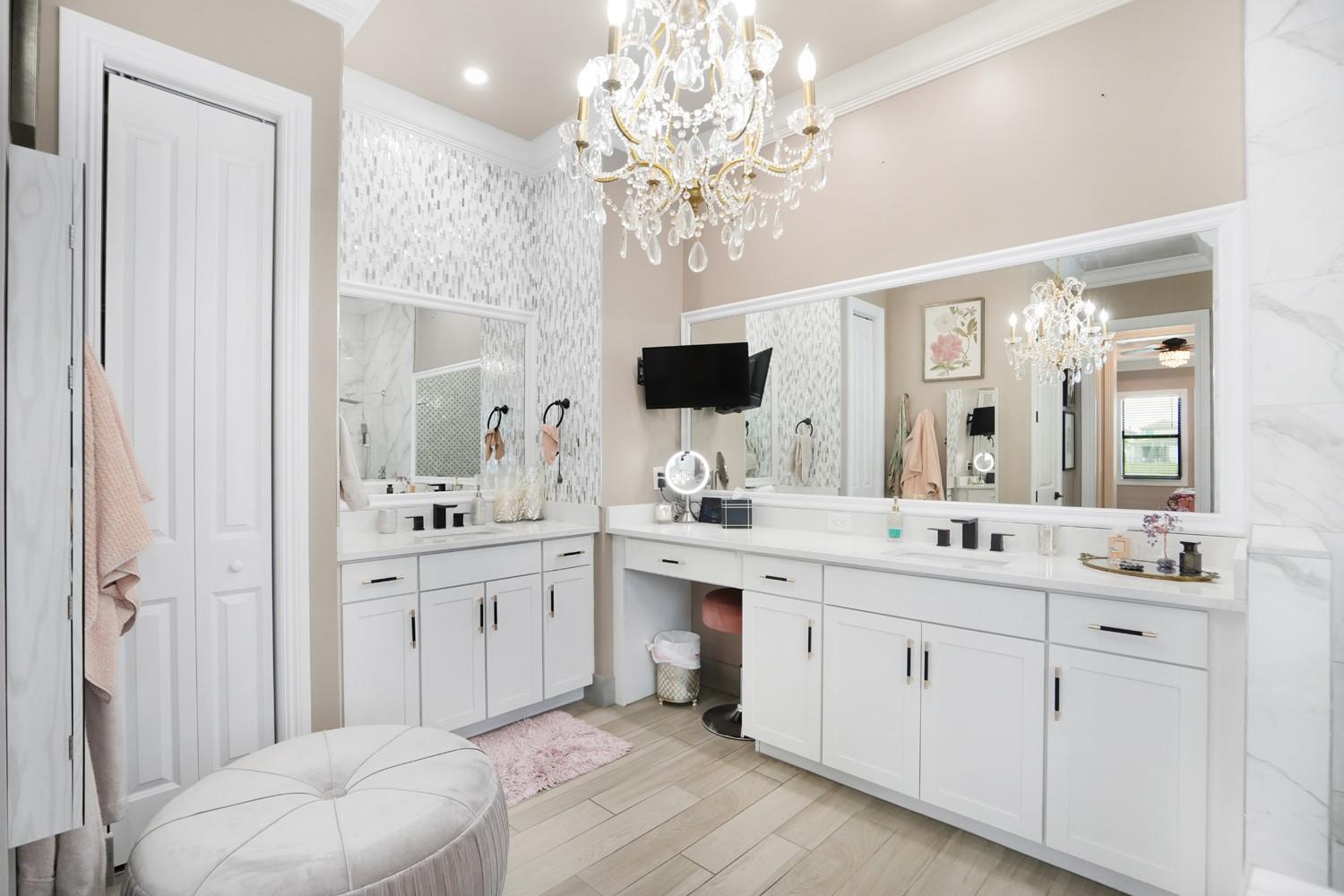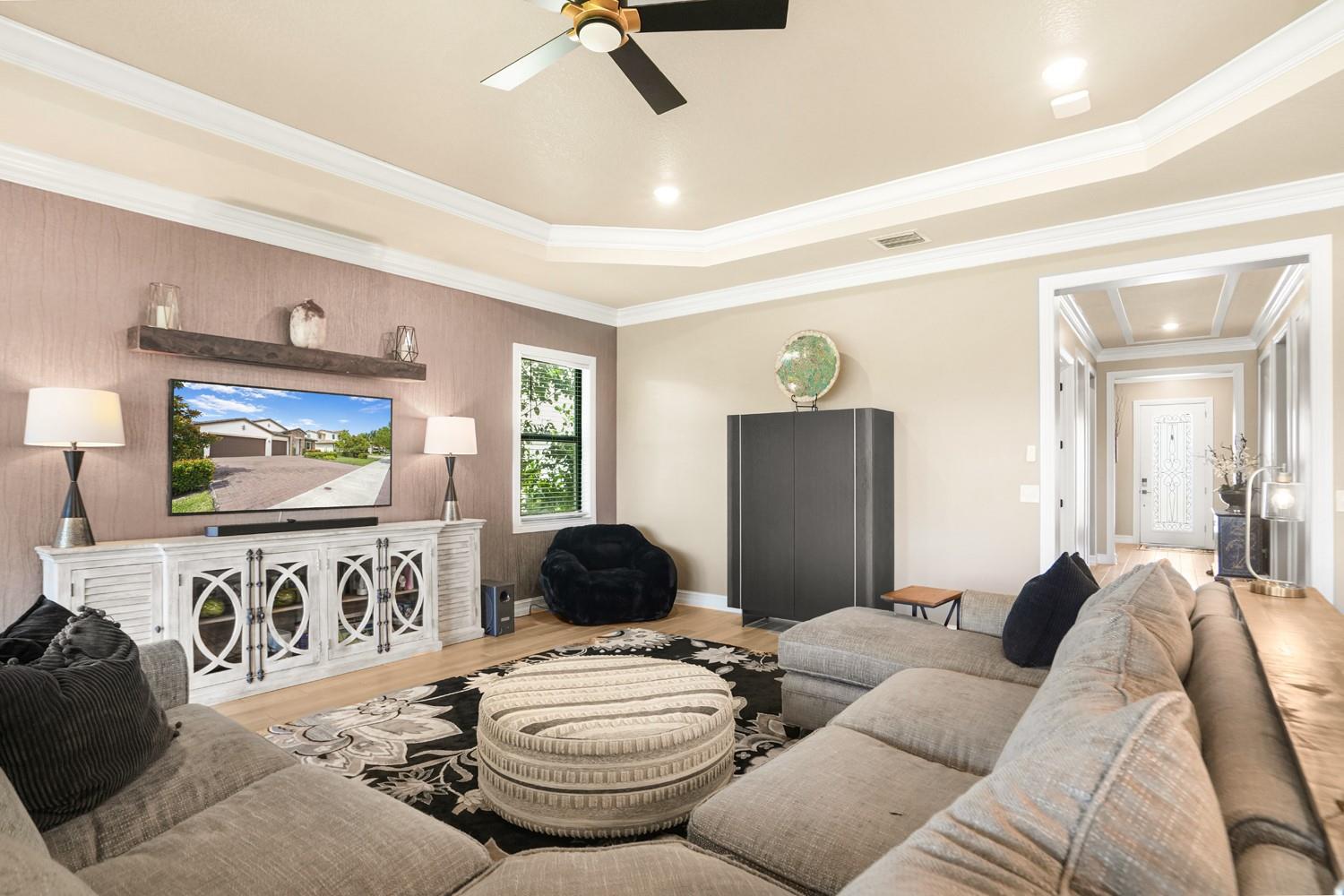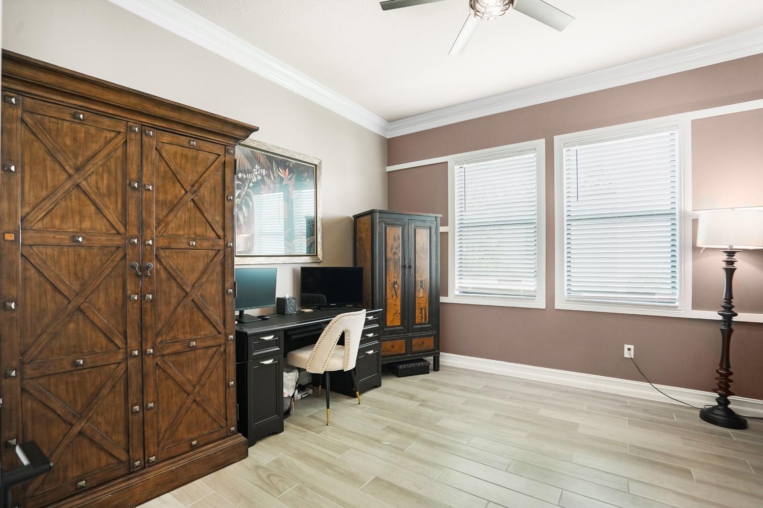 Beautifully UPGRADED home in desirable Palm Meadows! This meticulously maintained residence features a whole-house generator, gas stove, custom barn doors and cubbies in the laundry room, and a new kitchen island with granite, sink, faucet, and backsplash. All closets and pantry were redesigned by The Closet Factory. Interior has fresh paint, upgraded door and cabinet hardware, stylish wallpaper, and a rock accent wall in the bedroom. Bathrooms include new shower heads, barn-style glass doors, updated faucets, and a renovated guest bath. Enjoy a screened-in porch, new island lighting, ceiling fans, new washer/dryer, new AC unit, EV outlet in garage, and termite warranty. Move-in ready with thoughtful upgrades throughout!
