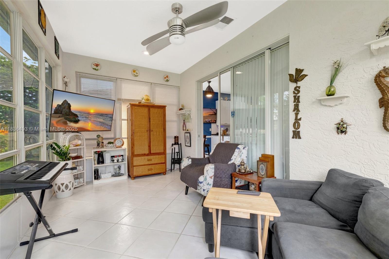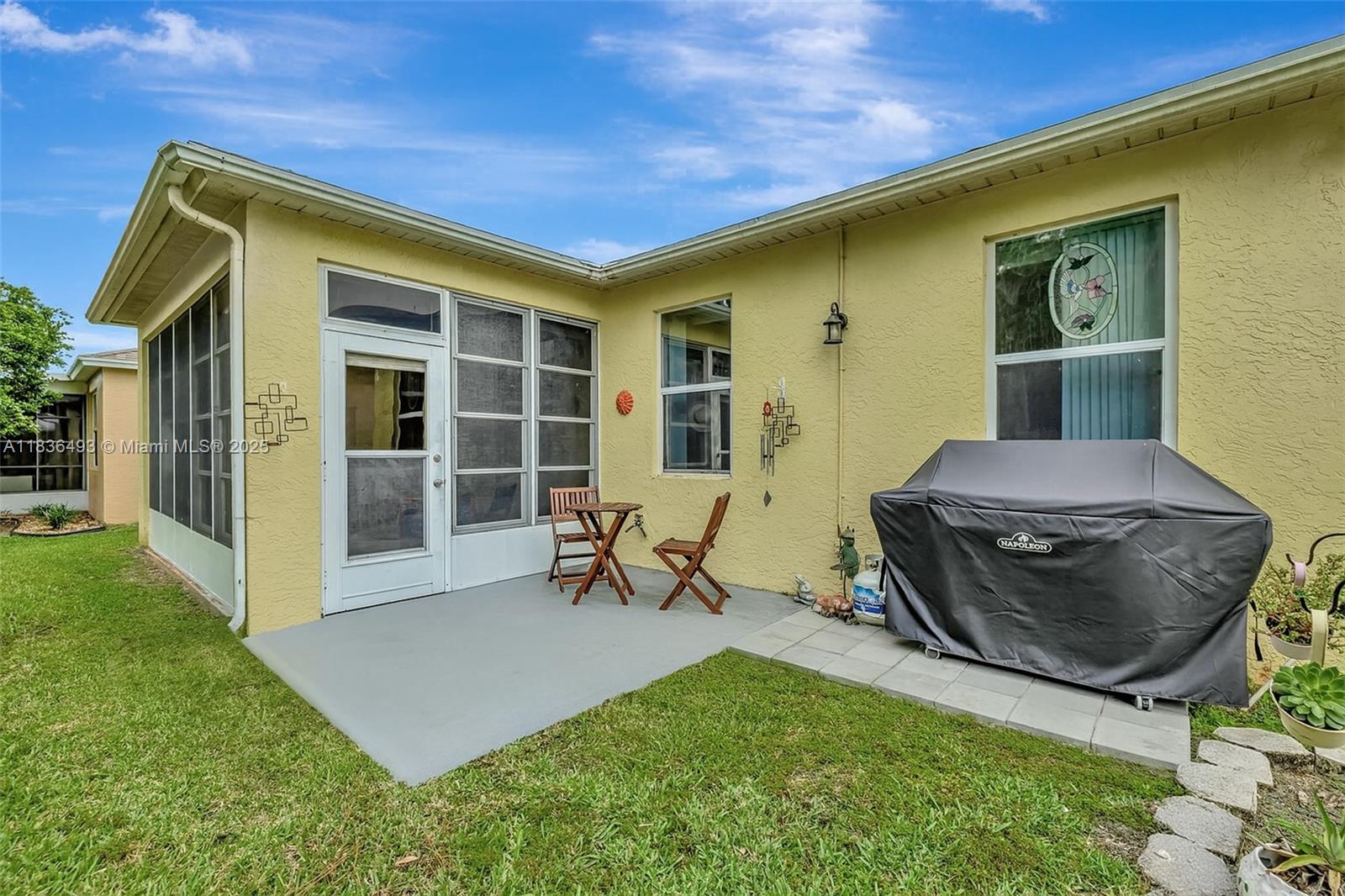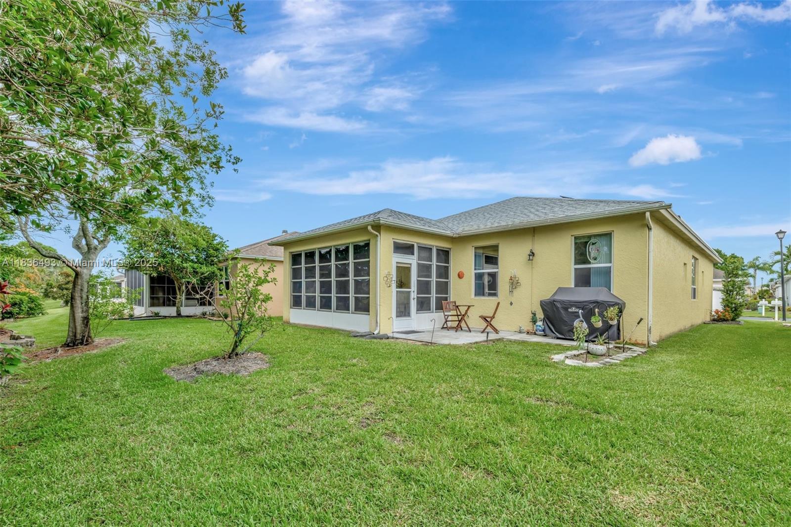 Welcome to this beautifully maintained 2-bed, 2-bath home in the sought-after Isle of San Marino, a vibrant 55+ community in Kings Isle! Over 1,500 sq ft with a split-bedroom plan, versatile den, updated kitchen with newer appliances, touchless faucets, and plenty of cabinet space. Enjoy updated baths, Plantation shutters, newer roof, ceiling fans, and elegant finishes throughout. Relax in the spacious air-conditioned Florida Room, cozy front tiled patio, or private backyard with open grilling area and lush landscaping. Curbing around garden beds adds curb appeal. Residents enjoy resort-style amenities including clubhouse, pool, pickleball, tennis, fitness center, and social activities. Prime St. Lucie West location near shopping, dining, medical facilities, golf, I-95, and the Turnpike!