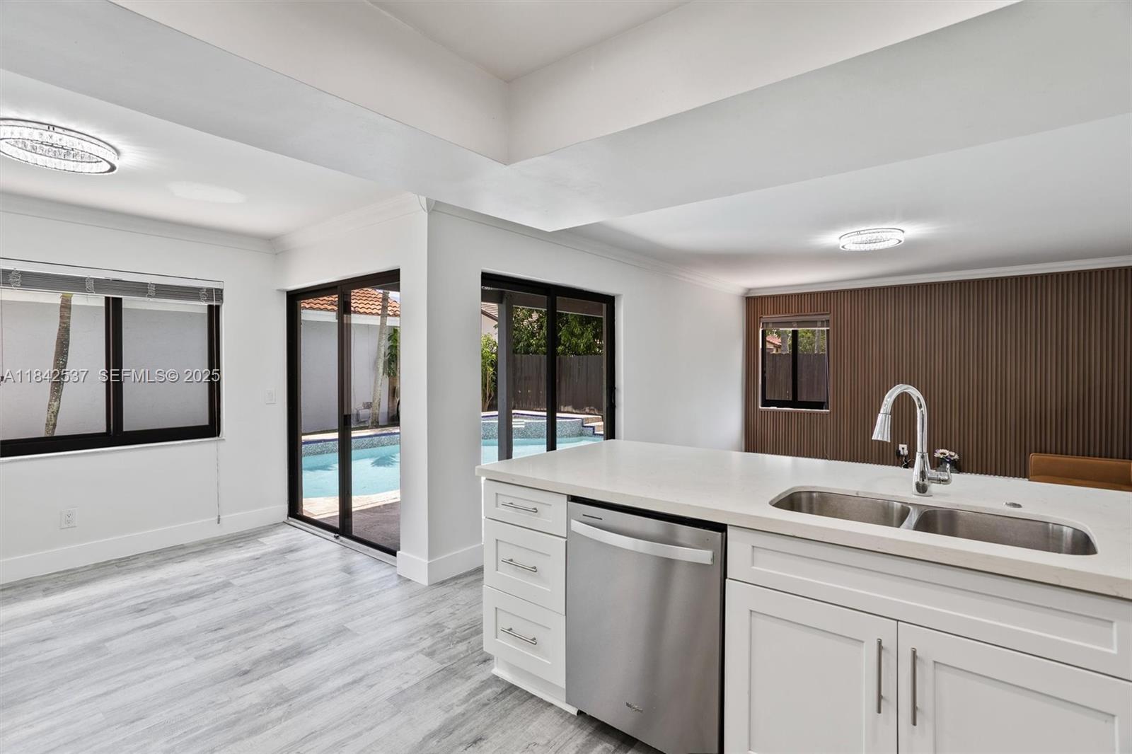 Welcome to The Moors – Fully renovated 2-story dream home in gated community! Located near the Palmetto Expressway, this 4BD/3BA home features a spacious loft, new roof (10-year warranty), impact windows, waterproof laminate flooring, renovated bathrooms, The updated kitchen has quartz counters, wood cabinets, stainless steel appliances, and a pass-through to the living area. One bedroom and full bath are on the first floor; remaining bedrooms and loft upstairs. Oversized master with walk-in closet and luxurious bath with tub and shower. Enjoy 24/7 security, low HOA, and resort-style amenities: clubhouse, gym, guesthouse, and lake great for fishing. Covered patio and pool-sized yard. Firm price – non-negotiable.