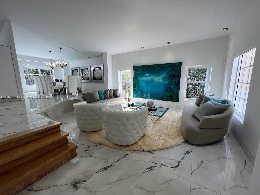 Modern open floor concept, completely remodeled. Glass and Brazilian wood staircase give this 5 bedrooms, 3 bath home an instant wow factor. Italian porcelain floors throughout, Italian marble floors in all bathrooms. LED lights in all kitchen cabinets. Master bedroom and bath created for comfort and relaxation on it's separate wing. Video surveillance cameras controlled directly from your phone. Patio with marble floors. 6 FT deep pool with safety gate in the must desired communit of Doral.