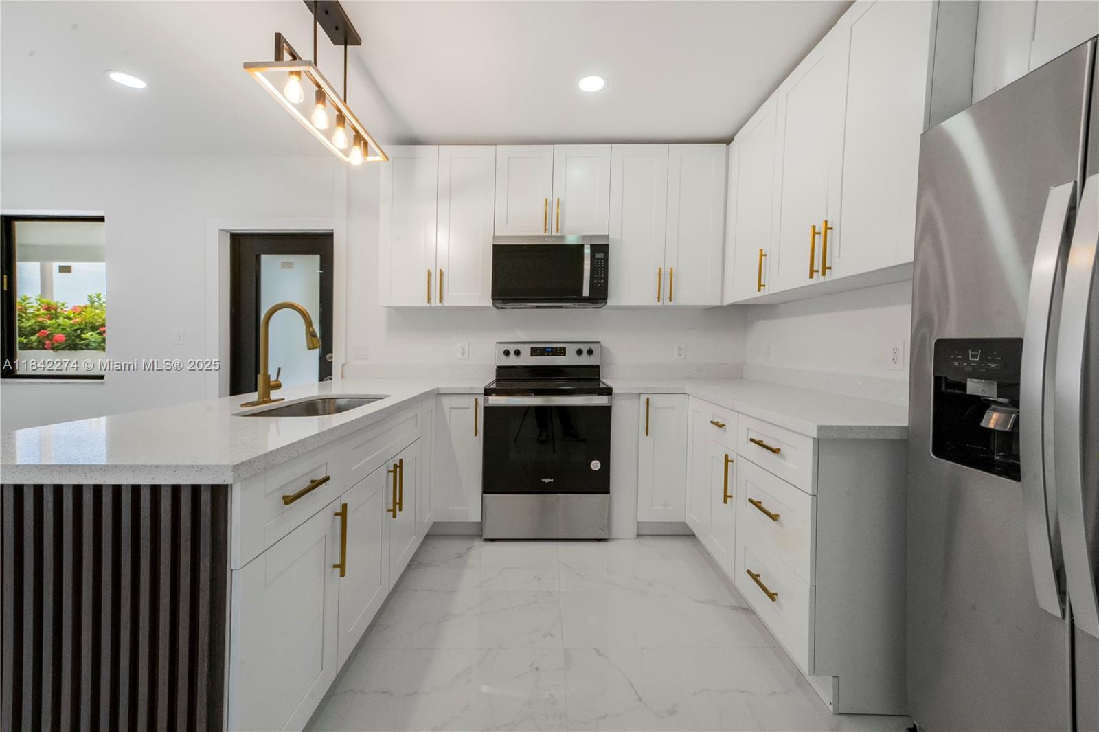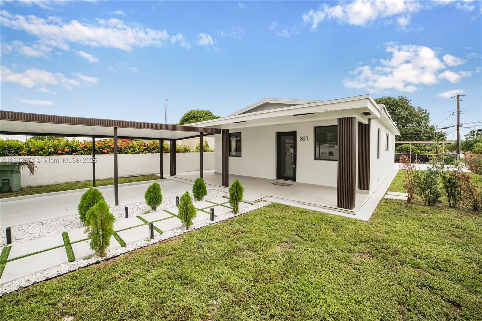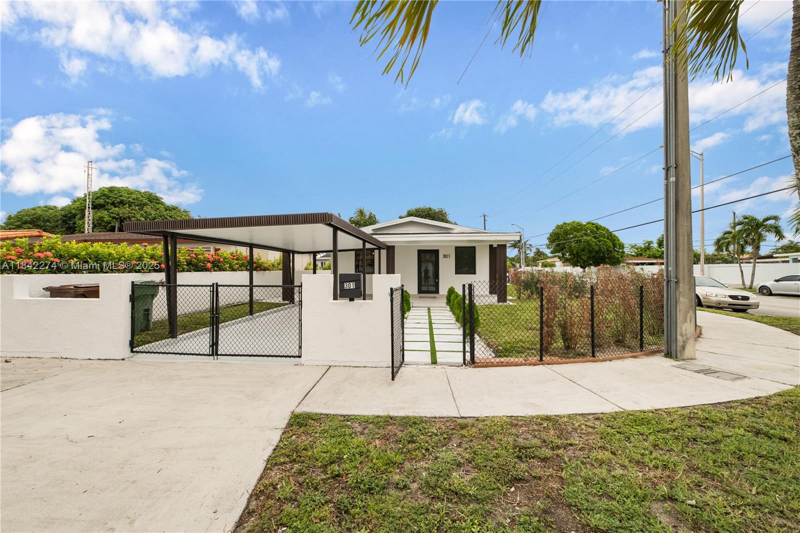 Beautifully Renovated Corner Home! This 3-bedroom, 1-bath home was completely remodeled in 2025 and showcases modern finishes throughout. Features include a brand-new kitchen with sleek countertops and stainless steel appliances, stylish ceramic tile flooring, and a laundry room with washer and dryer. Recent upgrades include a new roof, impact windows and doors, brand-new A/C, and a new water heater. This move-in ready home offers the perfect blend of style, comfort, and peace of mind. Easy to show through ShowingTime. Lockbox on site—schedule your private showing today!